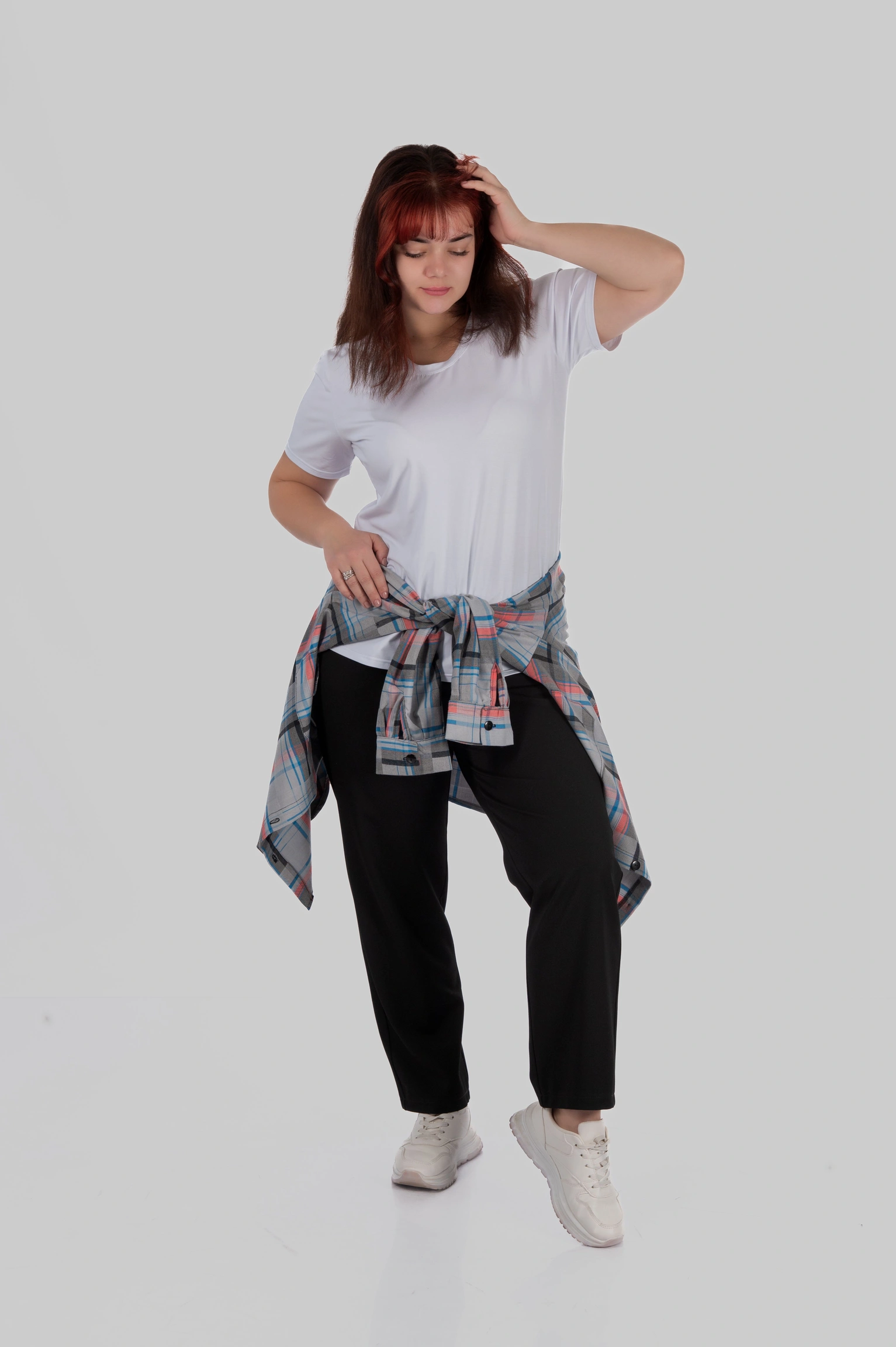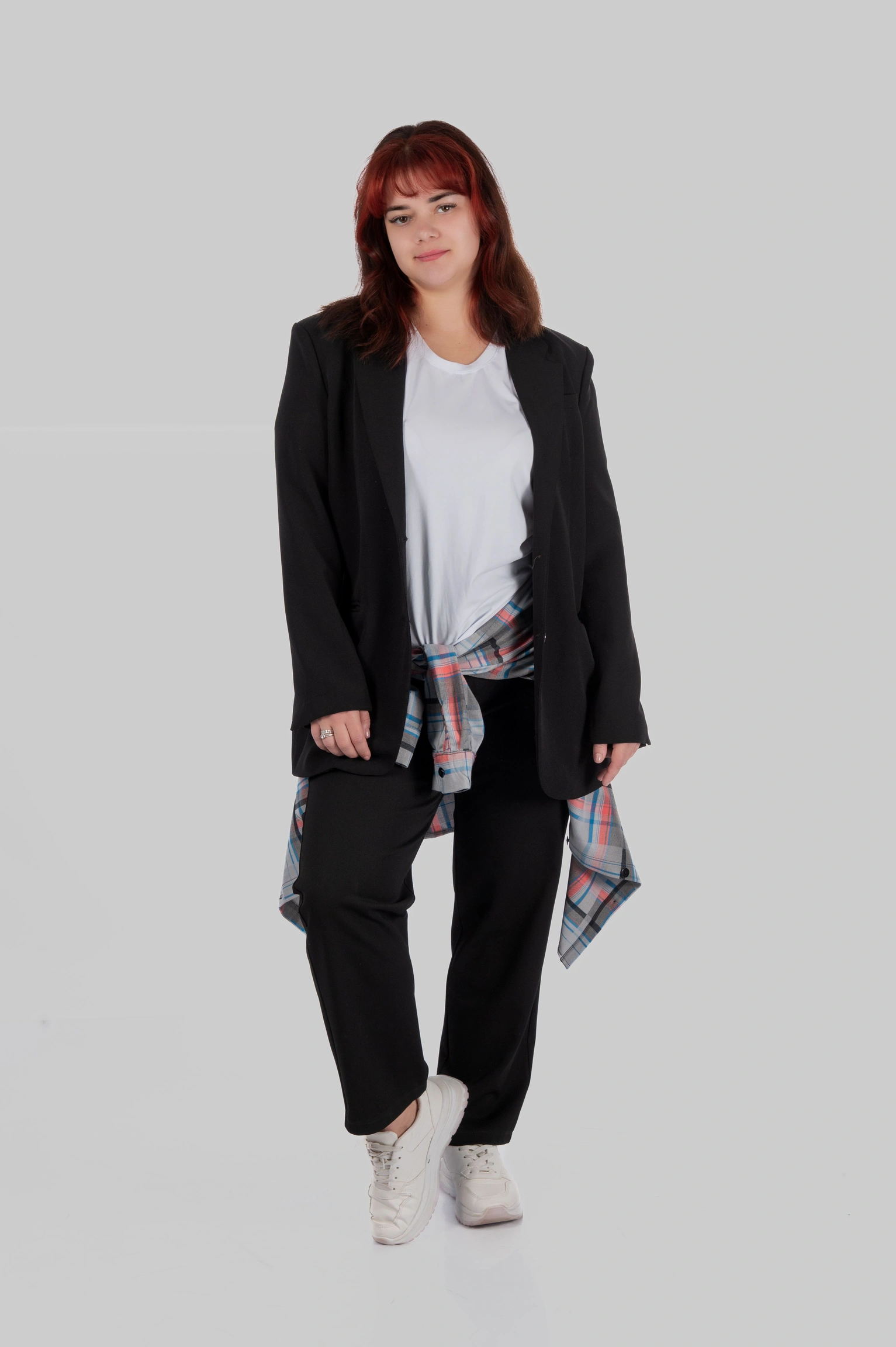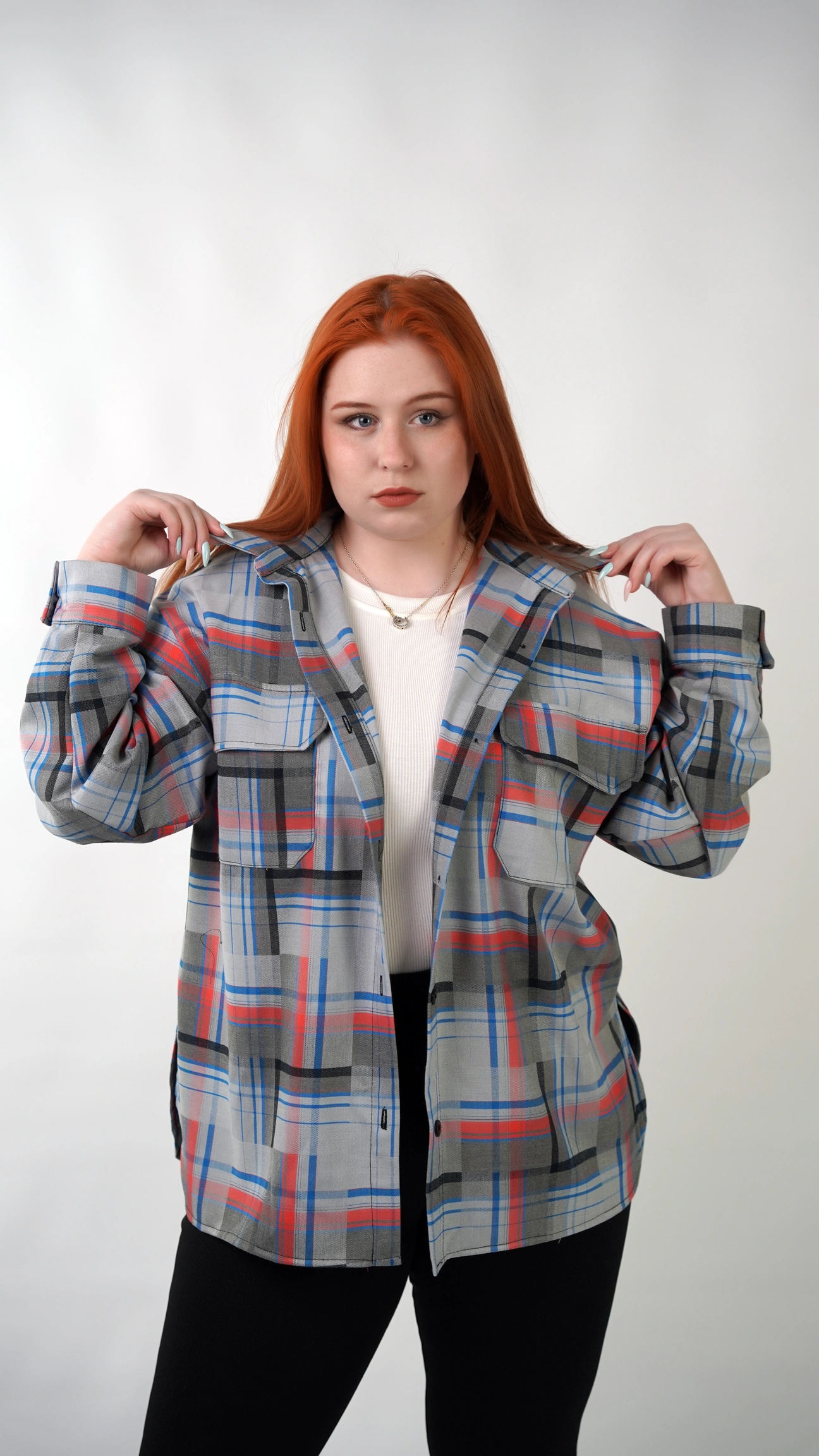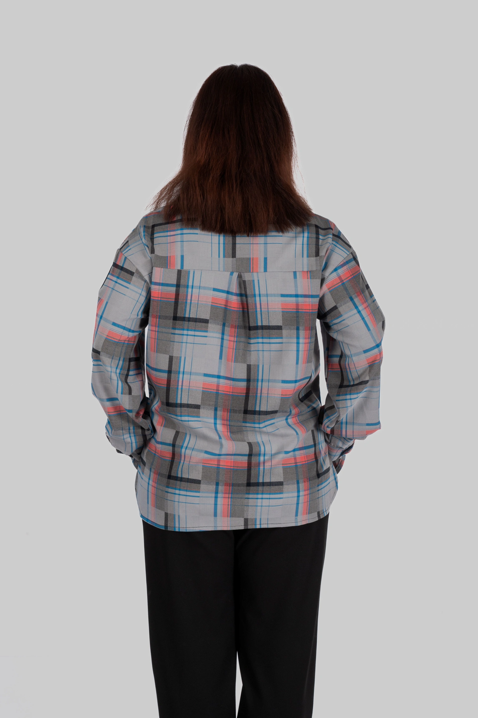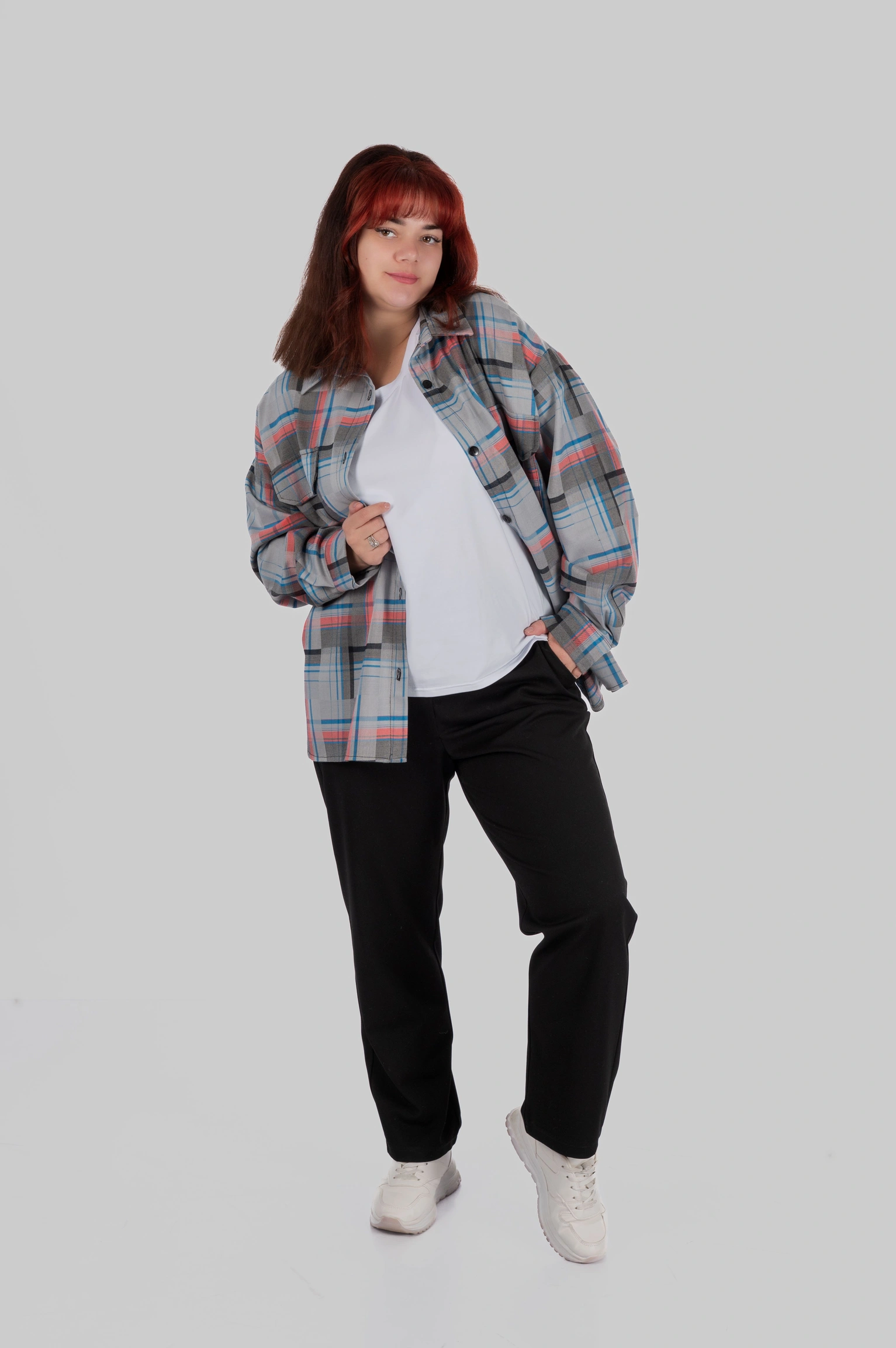 CasualGrid — подовжена сорочка в клітинку, яка працює як готовий інструмент стилю.У неї прямий крій і вільна посадка: тканина лежить рівно, не “липне” до тіла й тримає форму, тому образ виглядає зібрано навіть тоді, коли ти в базі — топ/майка + легінси або джинси.