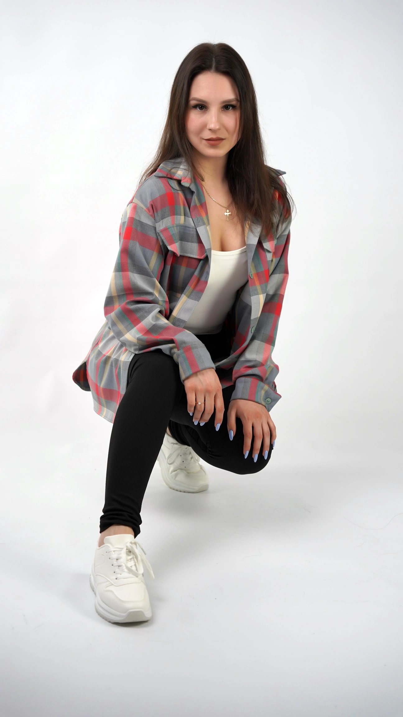 CasualGrid — подовжена сорочка в клітинку, яка працює як готовий інструмент стилю.У неї прямий крій і вільна посадка: тканина лежить рівно, не “липне” до тіла й тримає форму, тому образ виглядає зібрано навіть тоді, коли ти в базі — топ/майка + легінси або джинси.