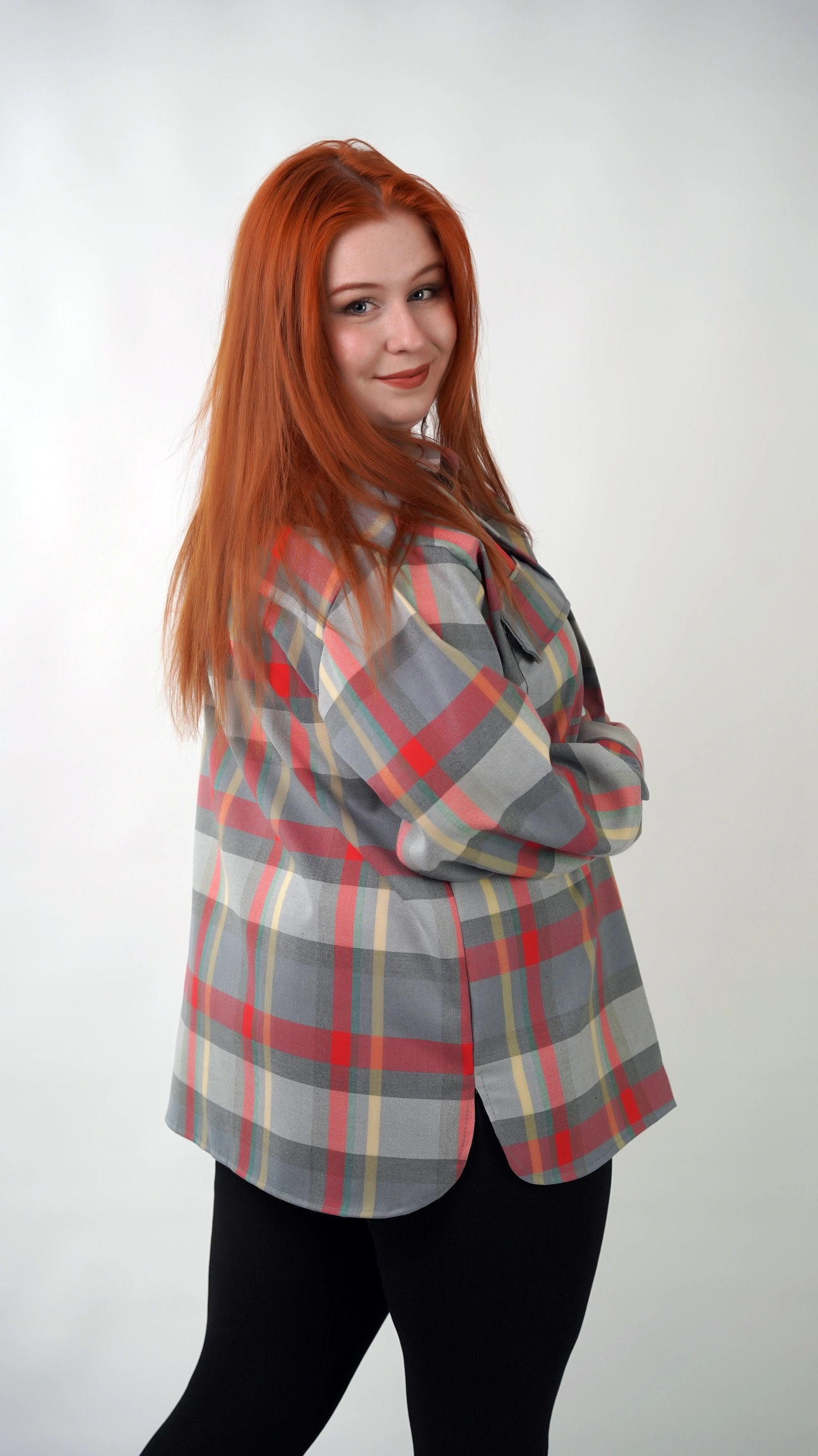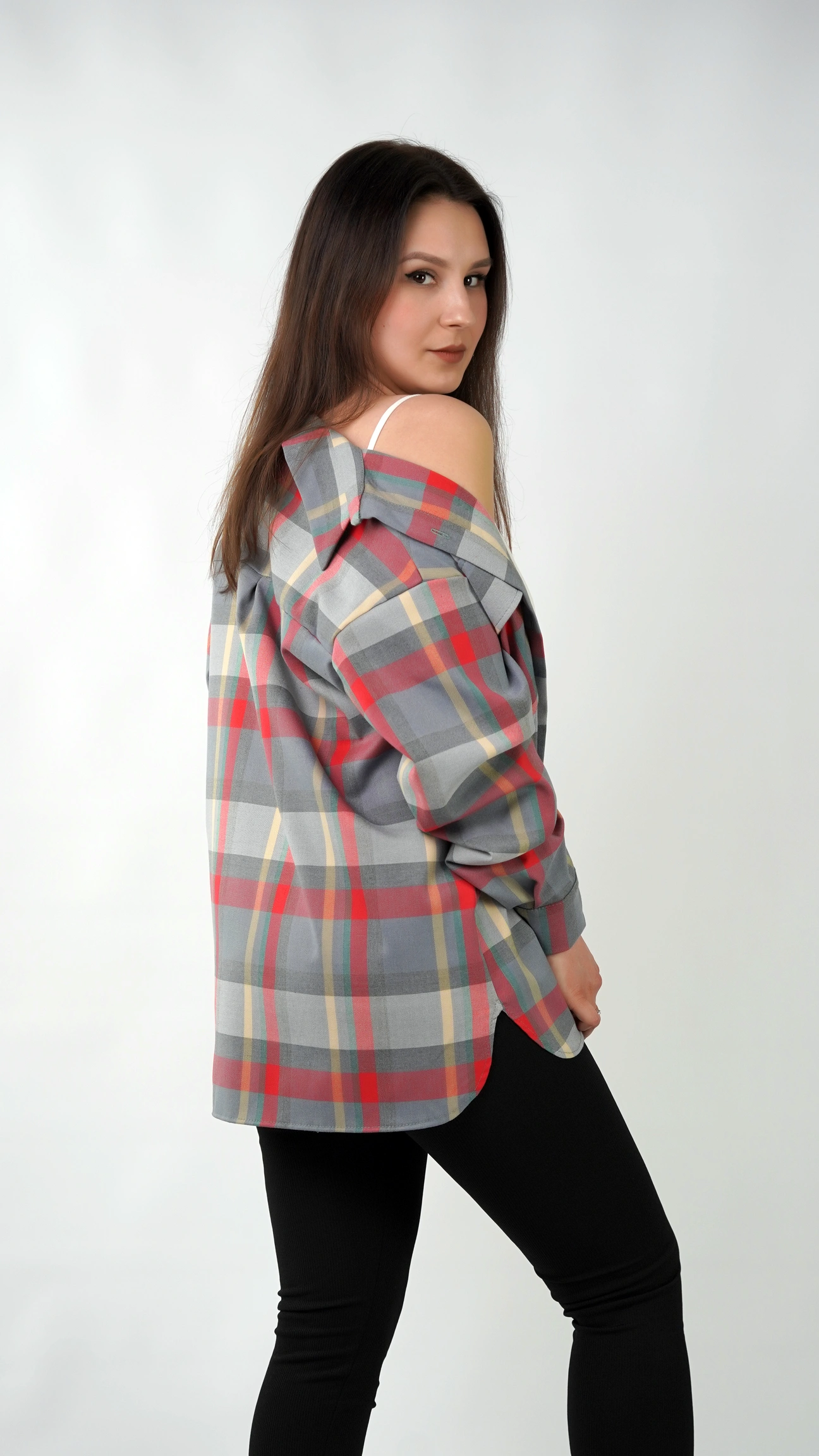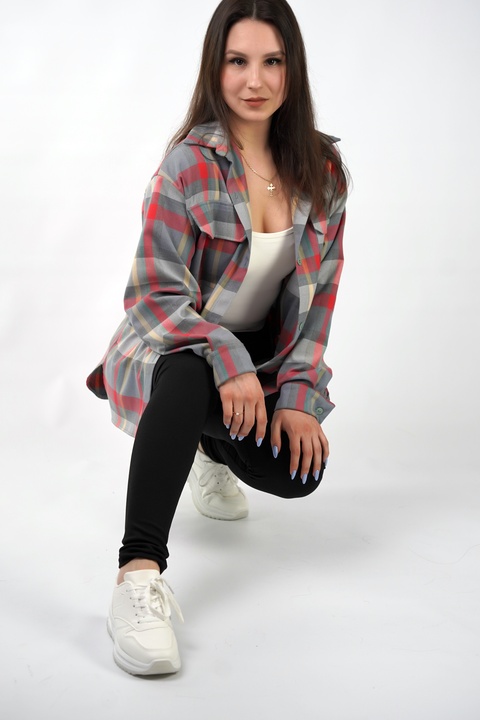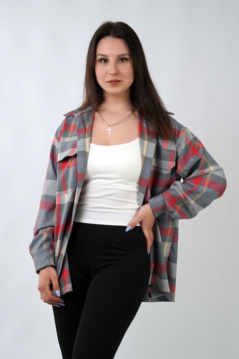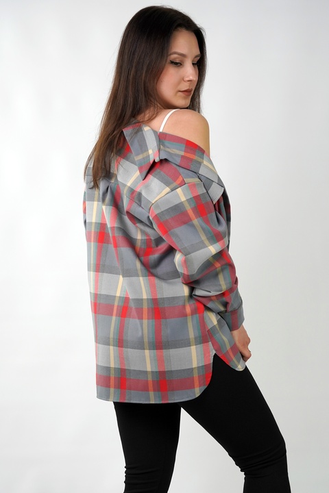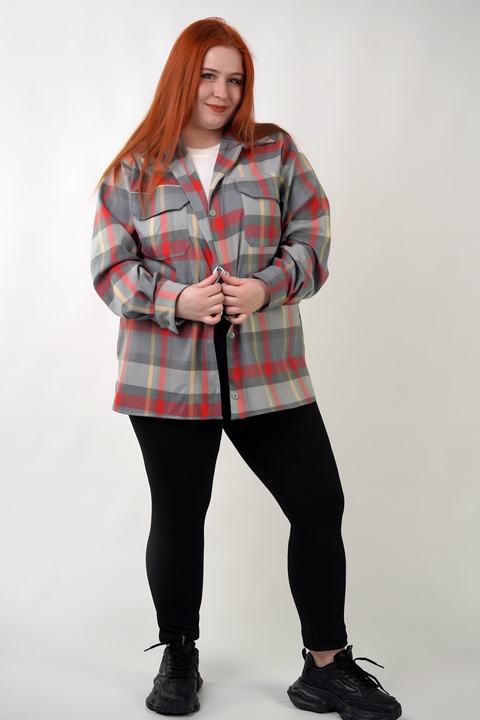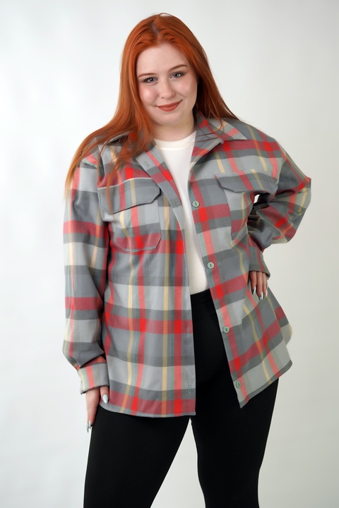 Жіноча сорочка CasualGrid (Сіро-червоний)