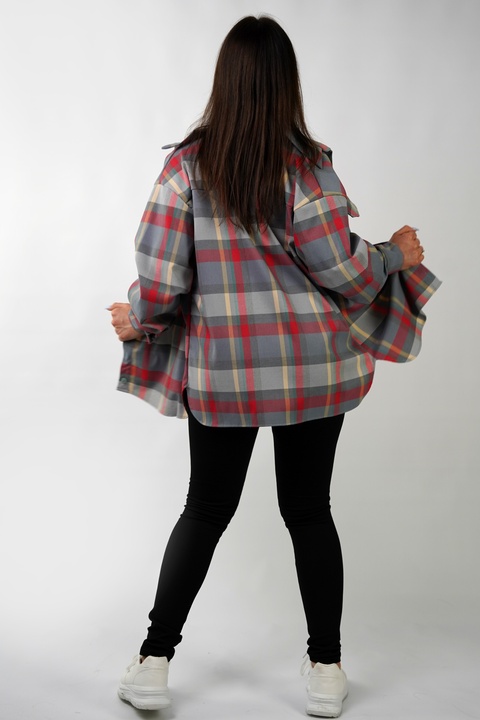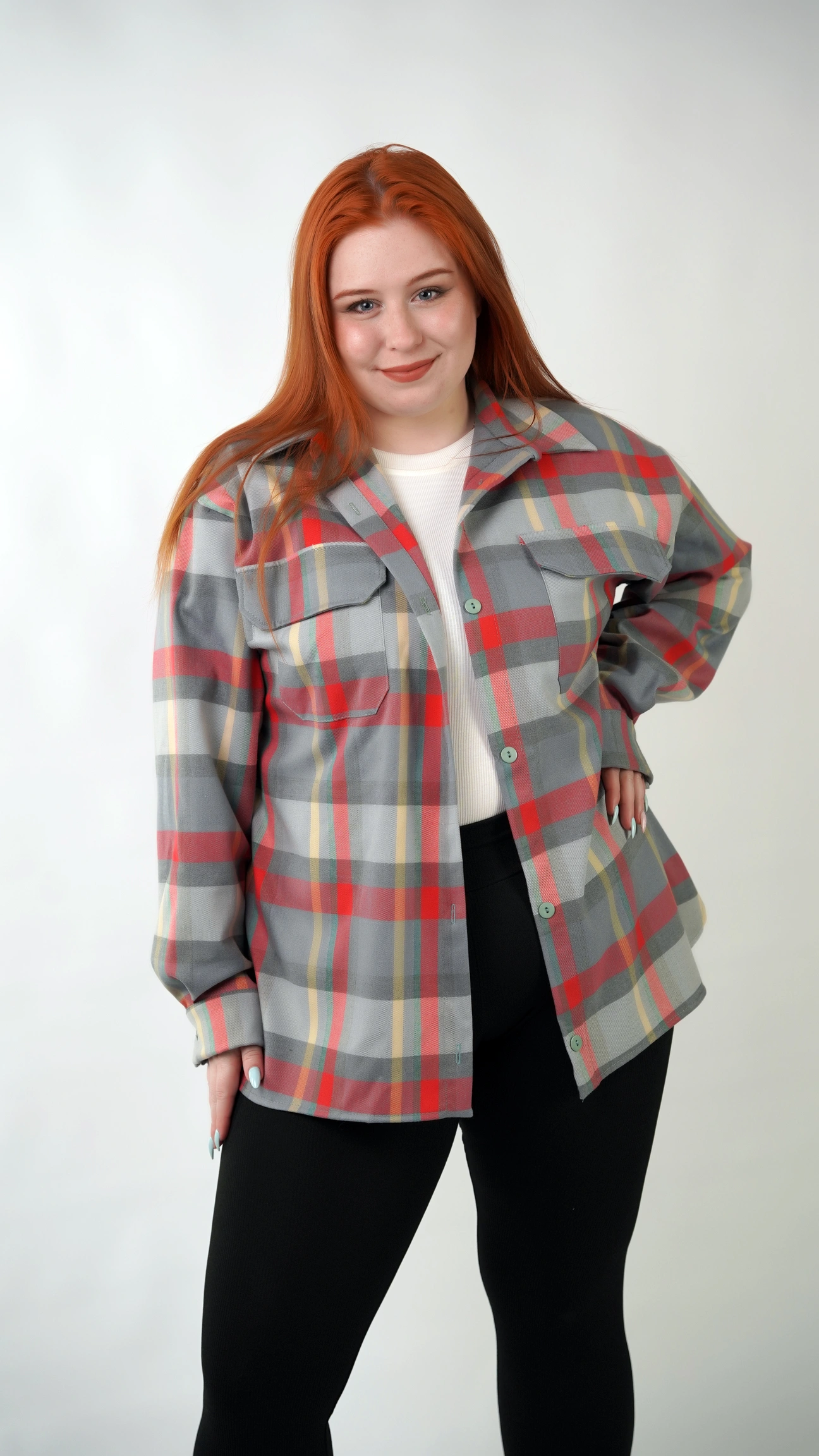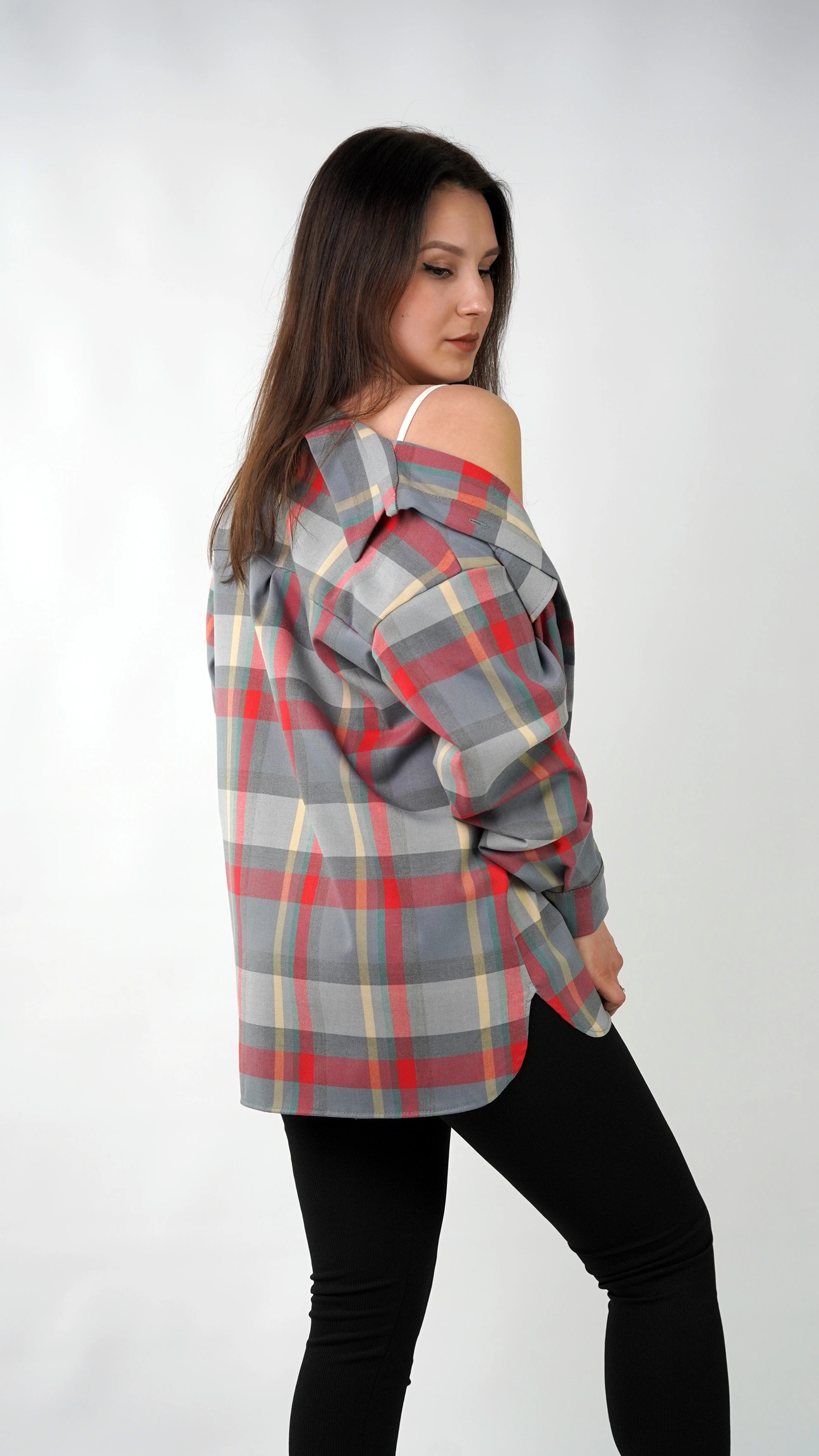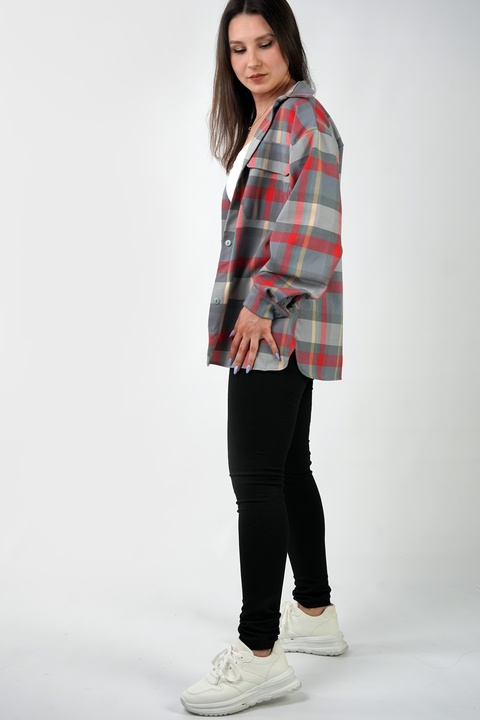 Жіноча сорочка CasualGrid (Сіро-червоний)