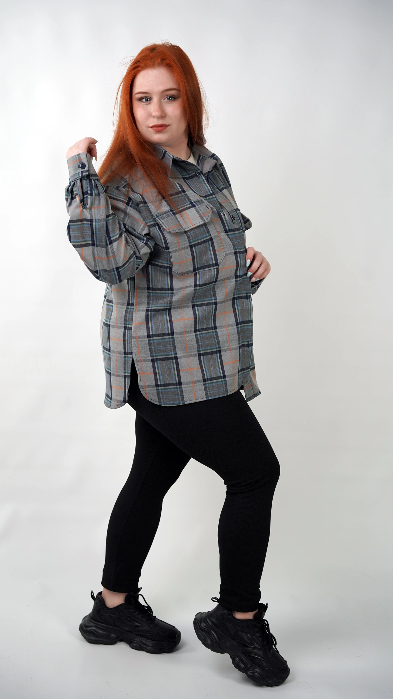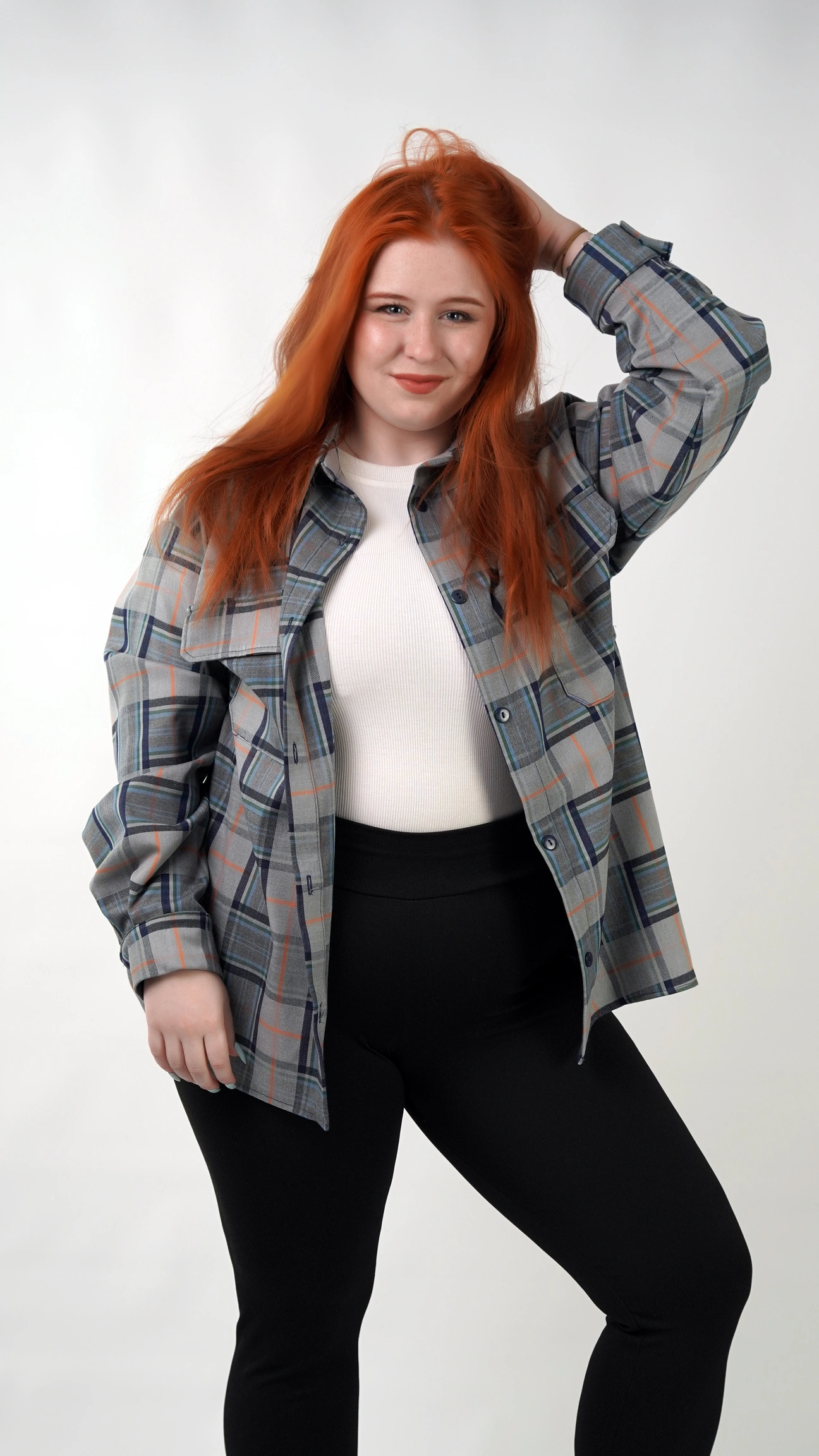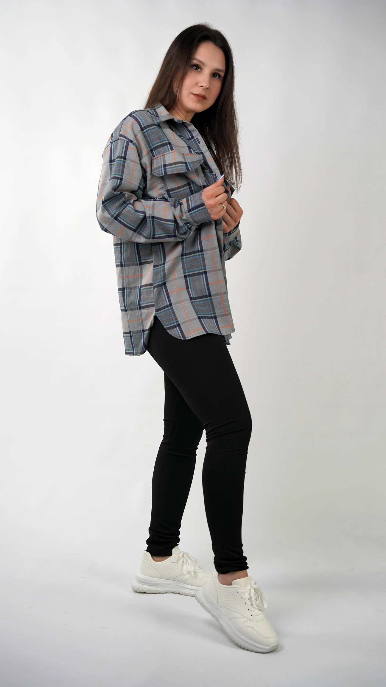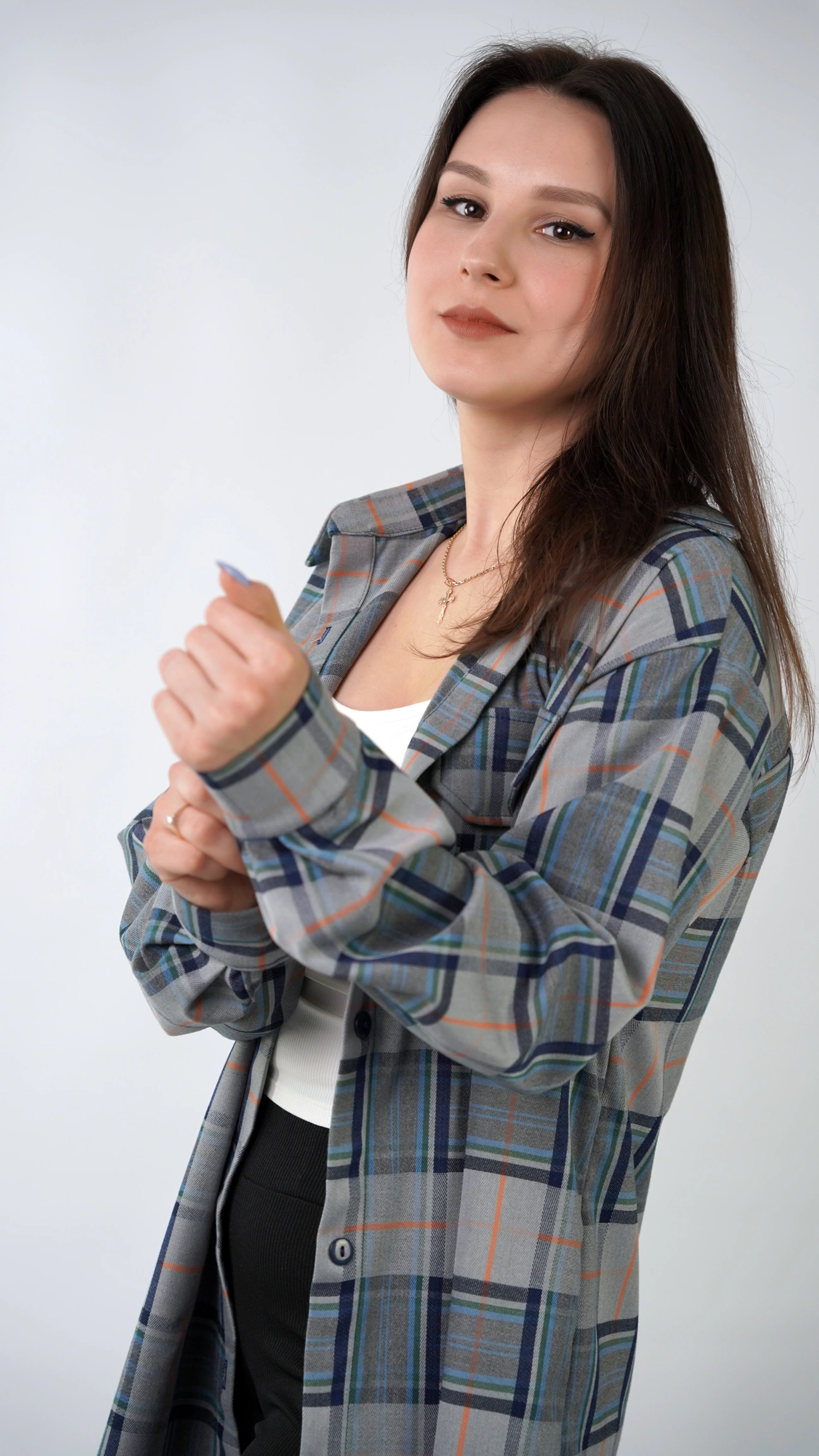 CasualGrid — подовжена сорочка в клітинку, яка працює як готовий інструмент стилю.У неї прямий крій і вільна посадка: тканина лежить рівно, не “липне” до тіла й тримає форму, тому образ виглядає зібрано навіть тоді, коли ти в базі — топ/майка + легінси або джинси.