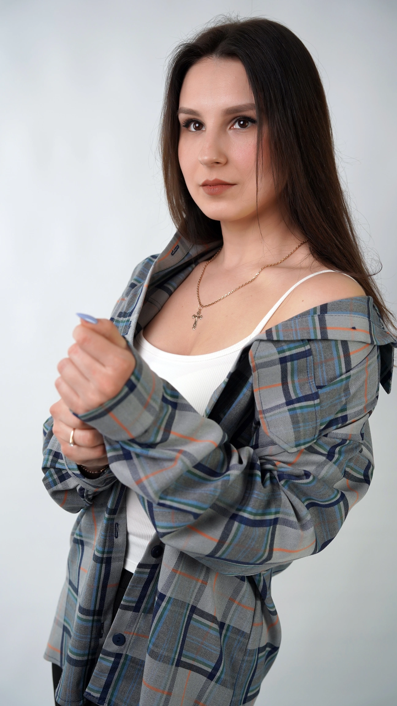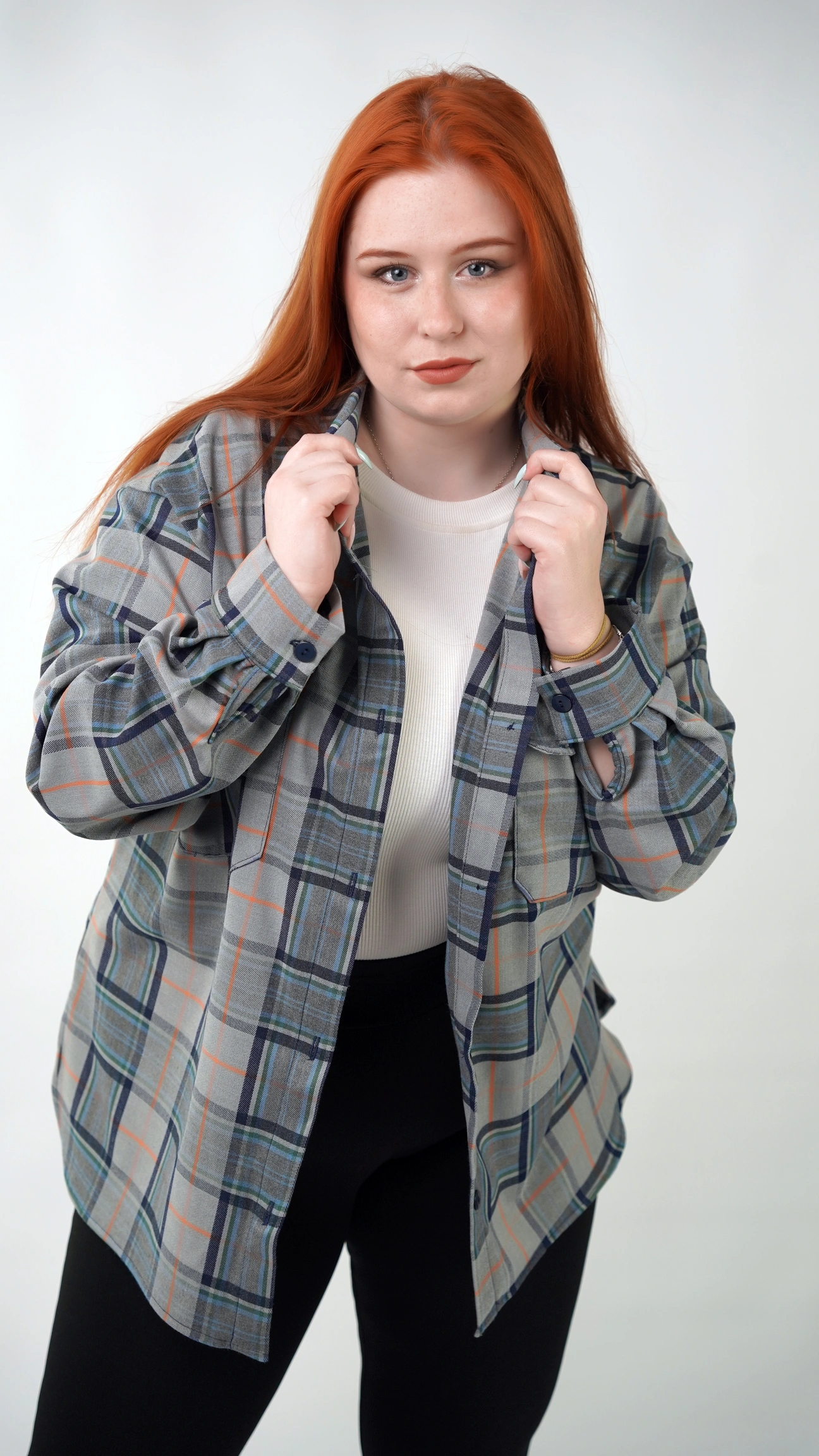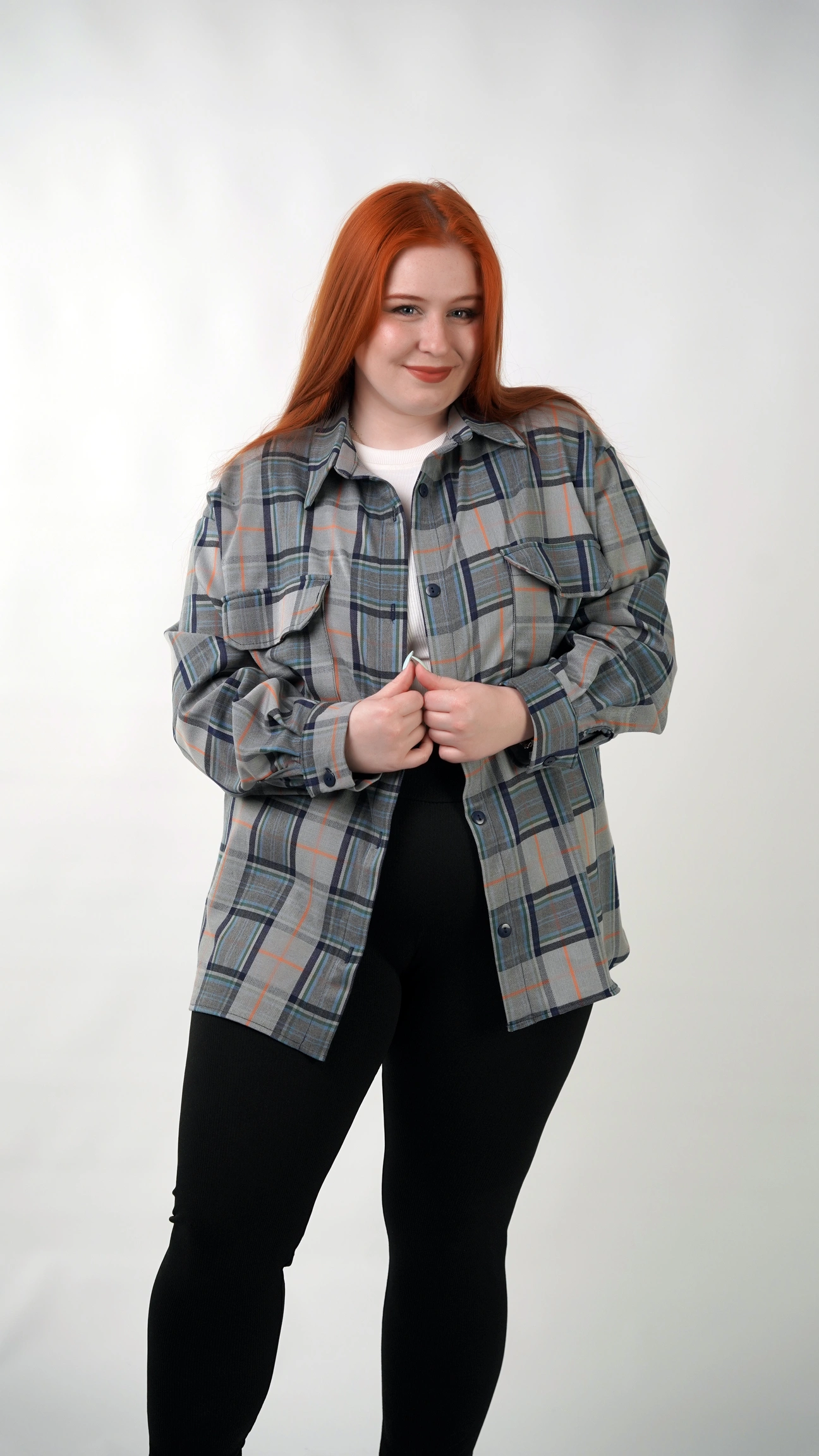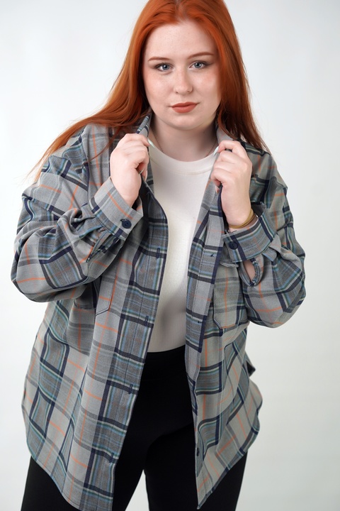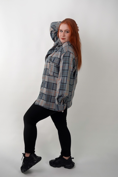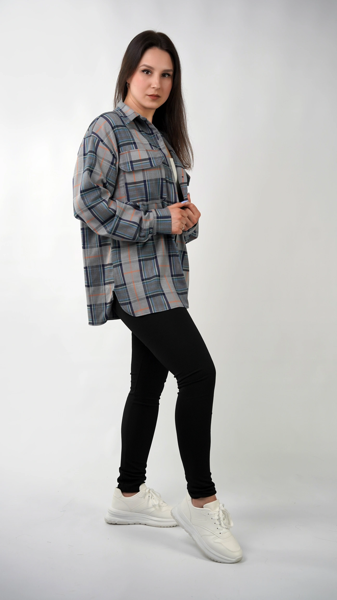 CasualGrid — подовжена сорочка в клітинку, яка працює як готовий інструмент стилю.У неї прямий крій і вільна посадка: тканина лежить рівно, не “липне” до тіла й тримає форму, тому образ виглядає зібрано навіть тоді, коли ти в базі — топ/майка + легінси або джинси.