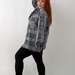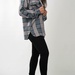 Костюмна тканина з віскозою дає приємну пластику й комфорт у русі, поліестер додає зносостійкості, а спандекс — легку еластичність. Клітинка тут графічна та сучасна: на спокійній сірій базі — кольорові лінії, які освіжають образ і дають “родзинку”, але не роблять річ складною в поєднаннях.