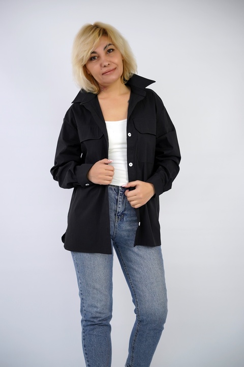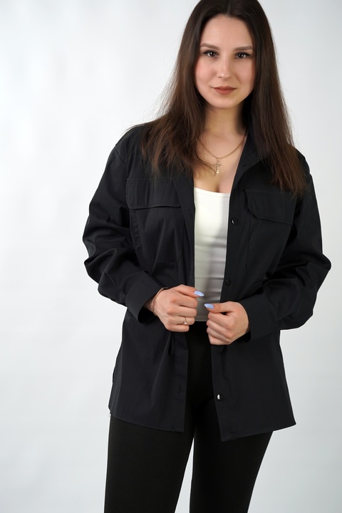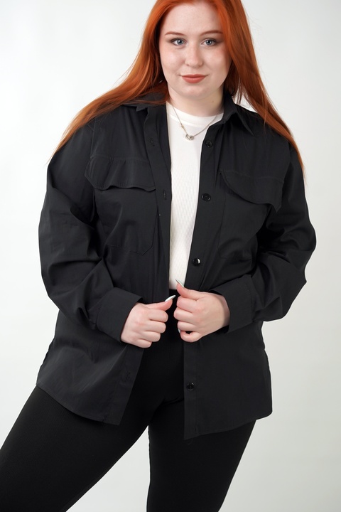 Поплін із 100% бавовни дає той самий “дорогий” вигляд: тканина дихає, приємна до тіла й тримає форму, тому сорочка виглядає акуратно в русі та не втрачає структуру. Нагрудні кишені додають легкий акцент і баланс — образ читається цілісно навіть у мінімалістичній стилізації.