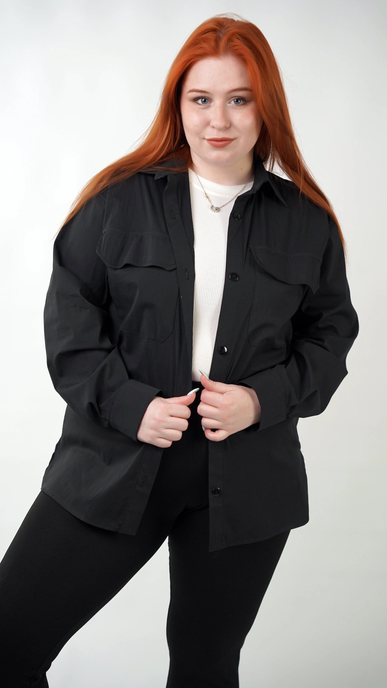 Verge можна носити по-різному: як сорочку-блузку (ближче до фігури) або як виражений оверсайз (ефект “сорочка-накидка”, багато повітря і стильний об’єм).