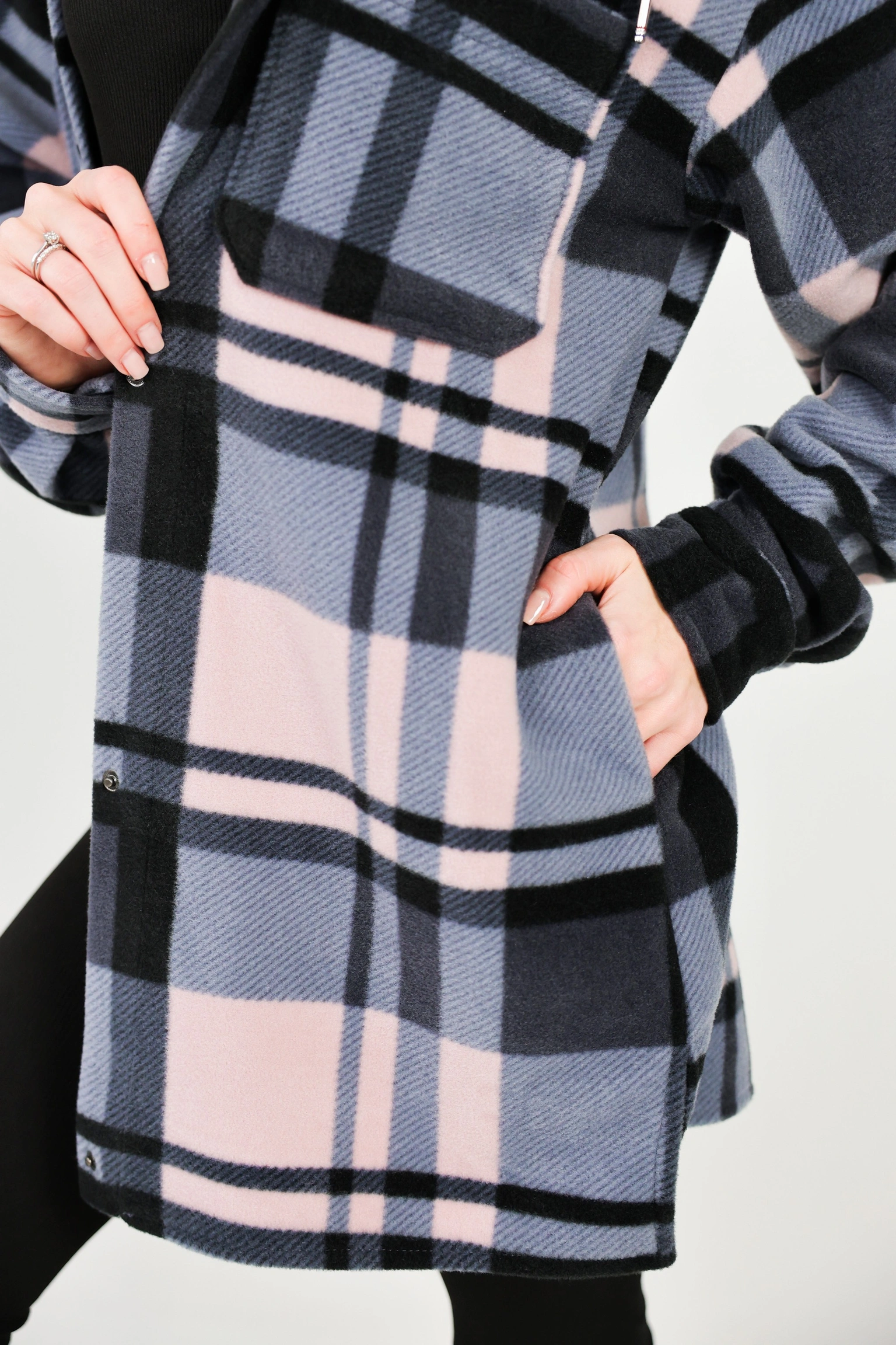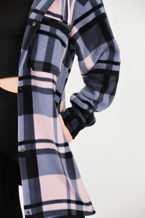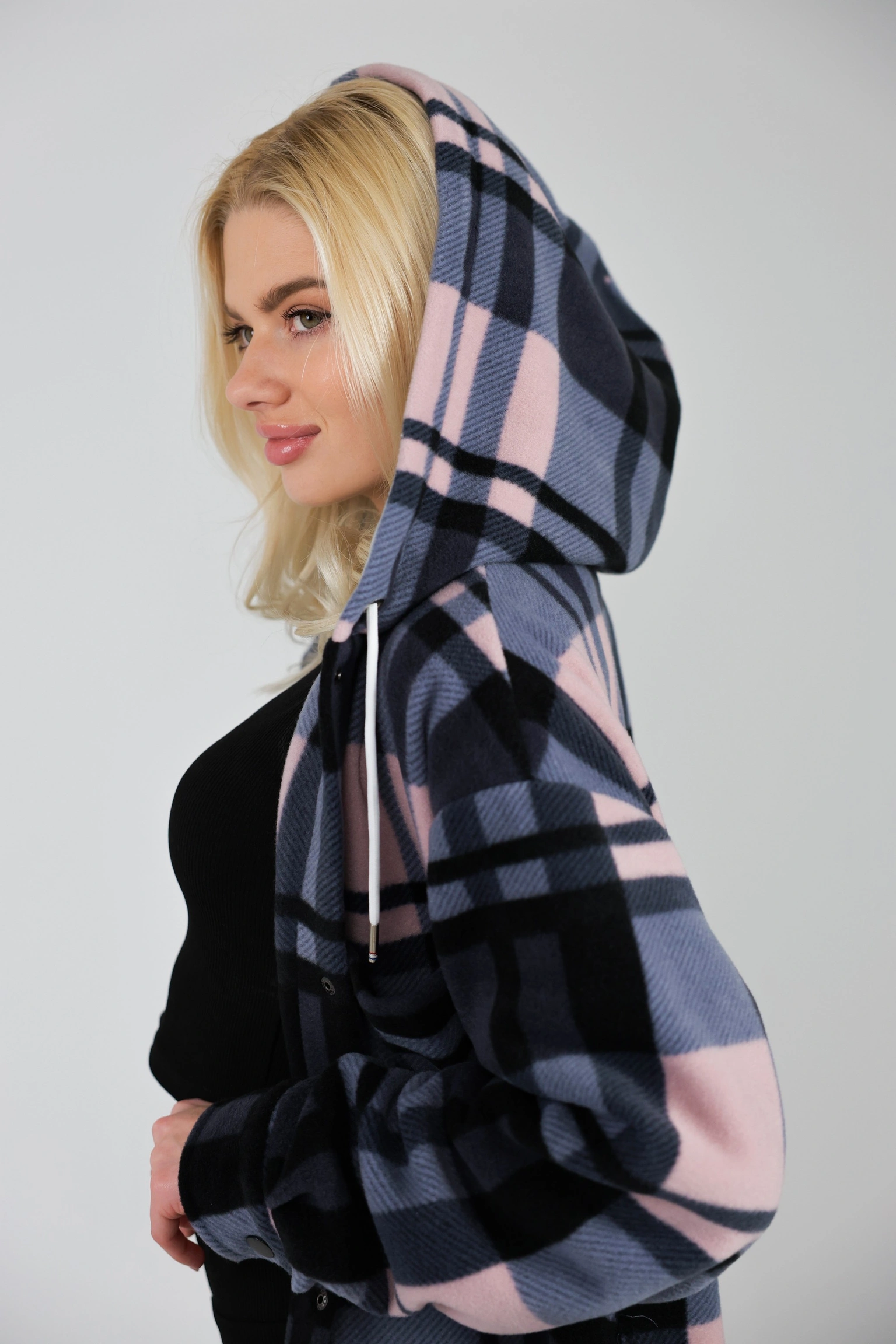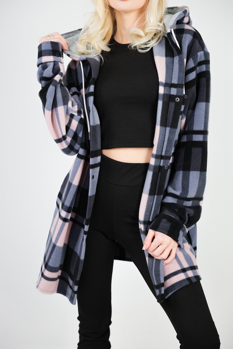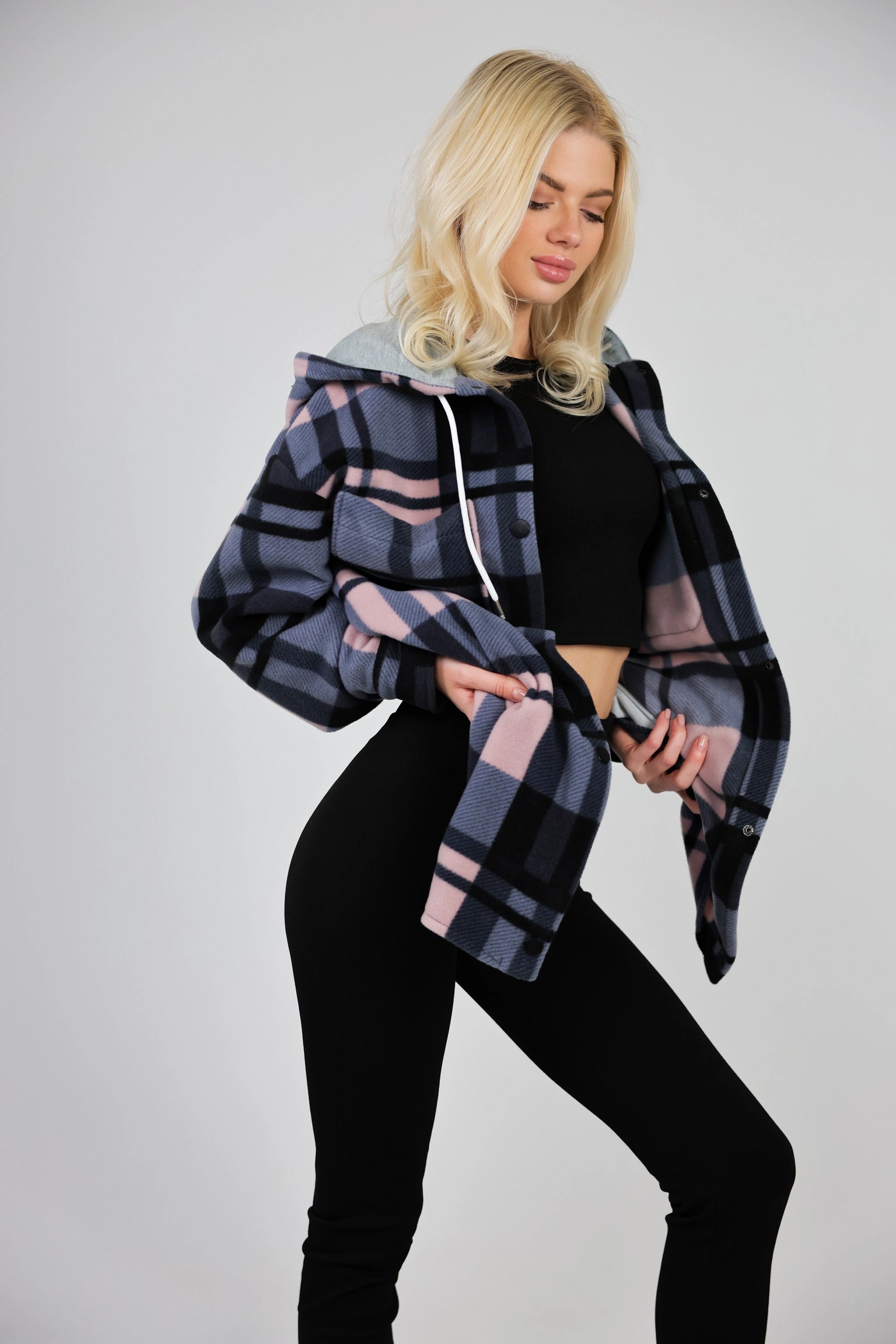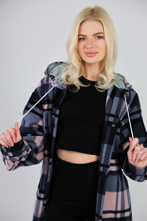 Жіноча сорочка з подвійним капюшоном та кишенями TwinHood Plaid Пудра