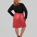 Силует — прямий, злегка завужений донизу. Міні довжина відкриває ноги та робить силует більш легким і пропорційним. У гардеробі plus size така довжина часто працює дуже вдало, тому що додає образу енергії та допомагає створити більш збалансовані пропорції.
