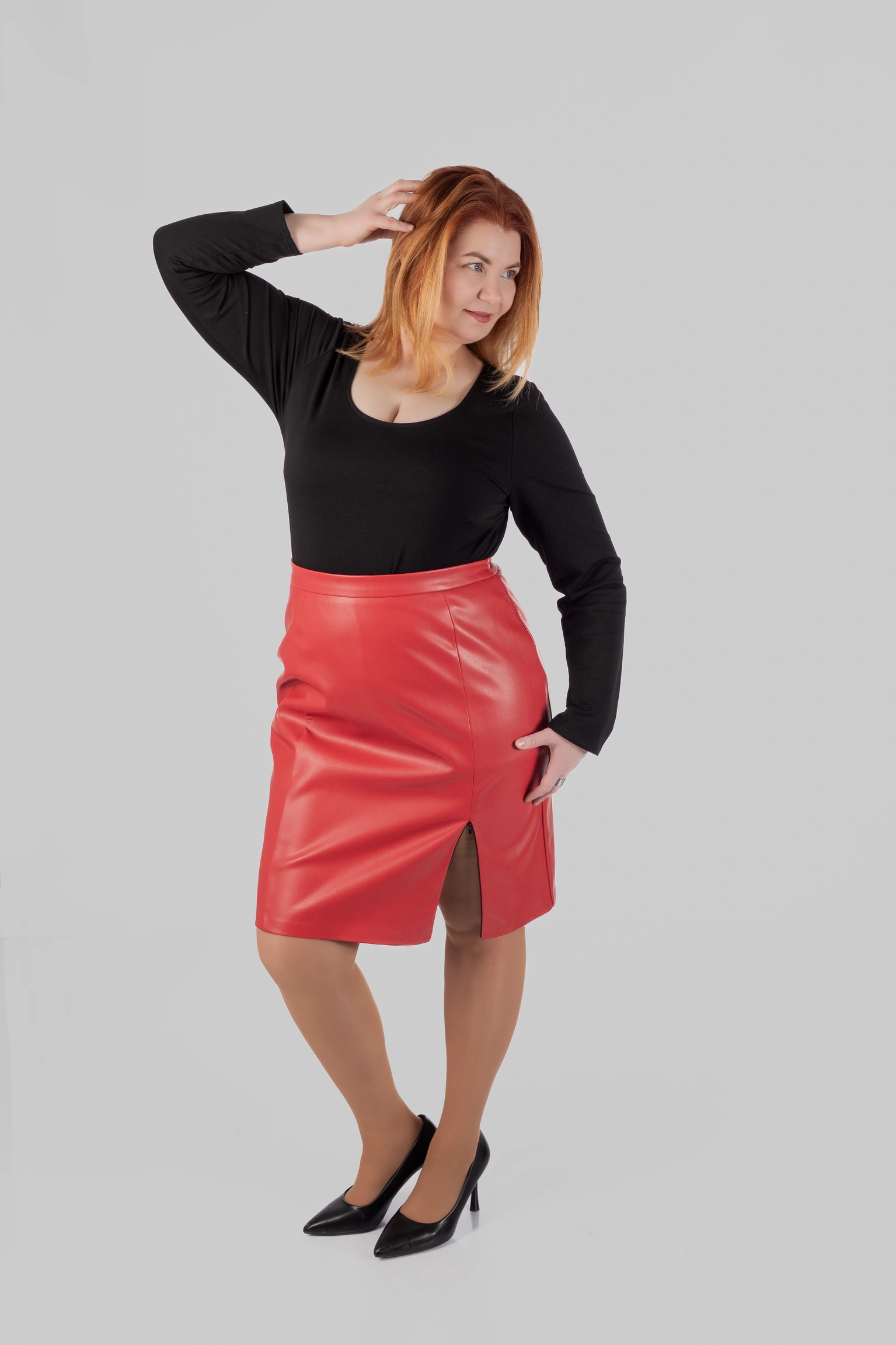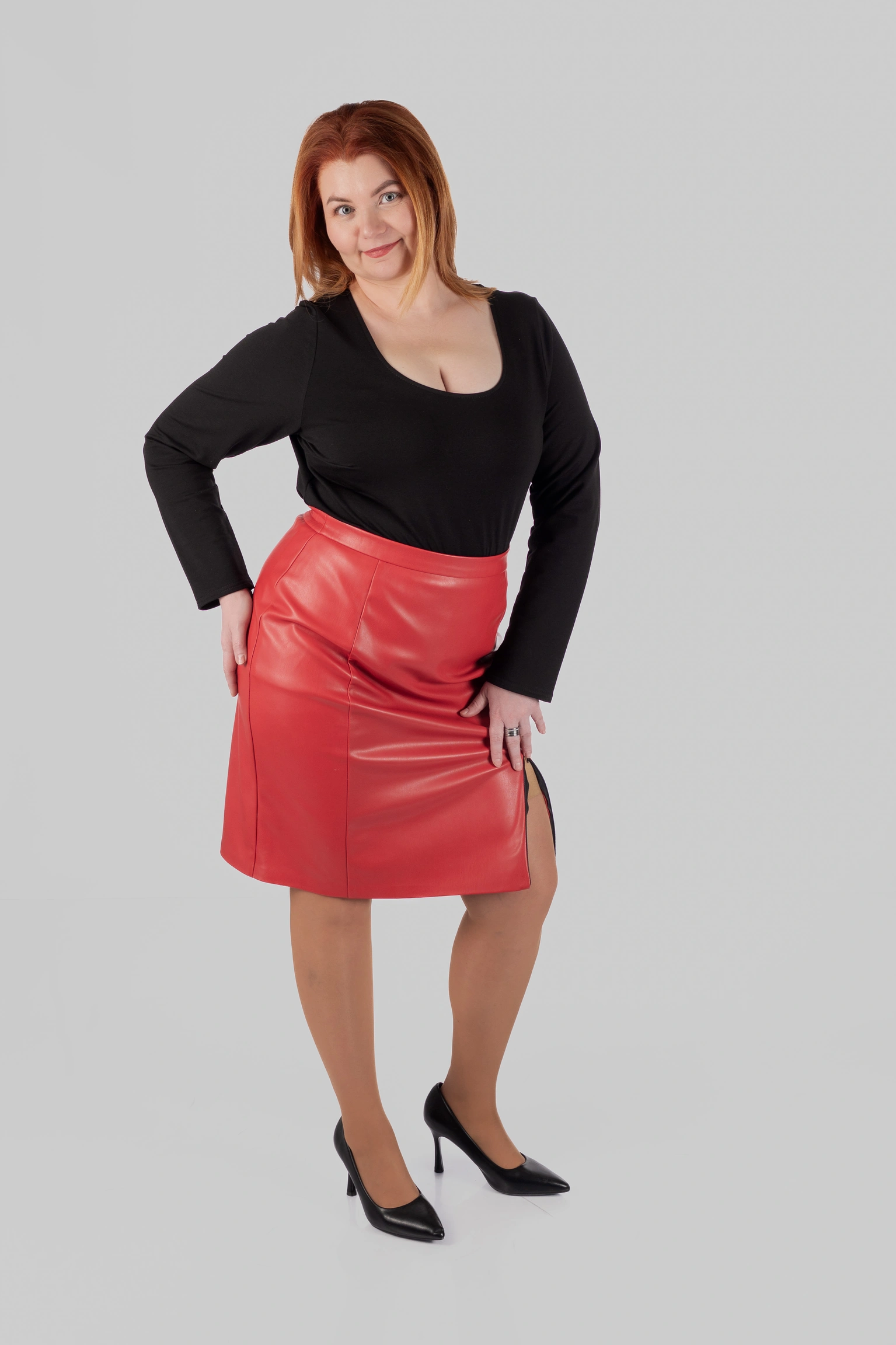 Спідниця MAYA — це мініспідниця великих розмірів, у якій поєднуються чітка форма, виразний матеріал і комфортна посадка. Модель створена для жінок, які хочуть виглядати зібрано та впевнено, але без відчуття скутості. Це акцентна спідниця plus size, яка легко інтегрується у сучасний міський гардероб.