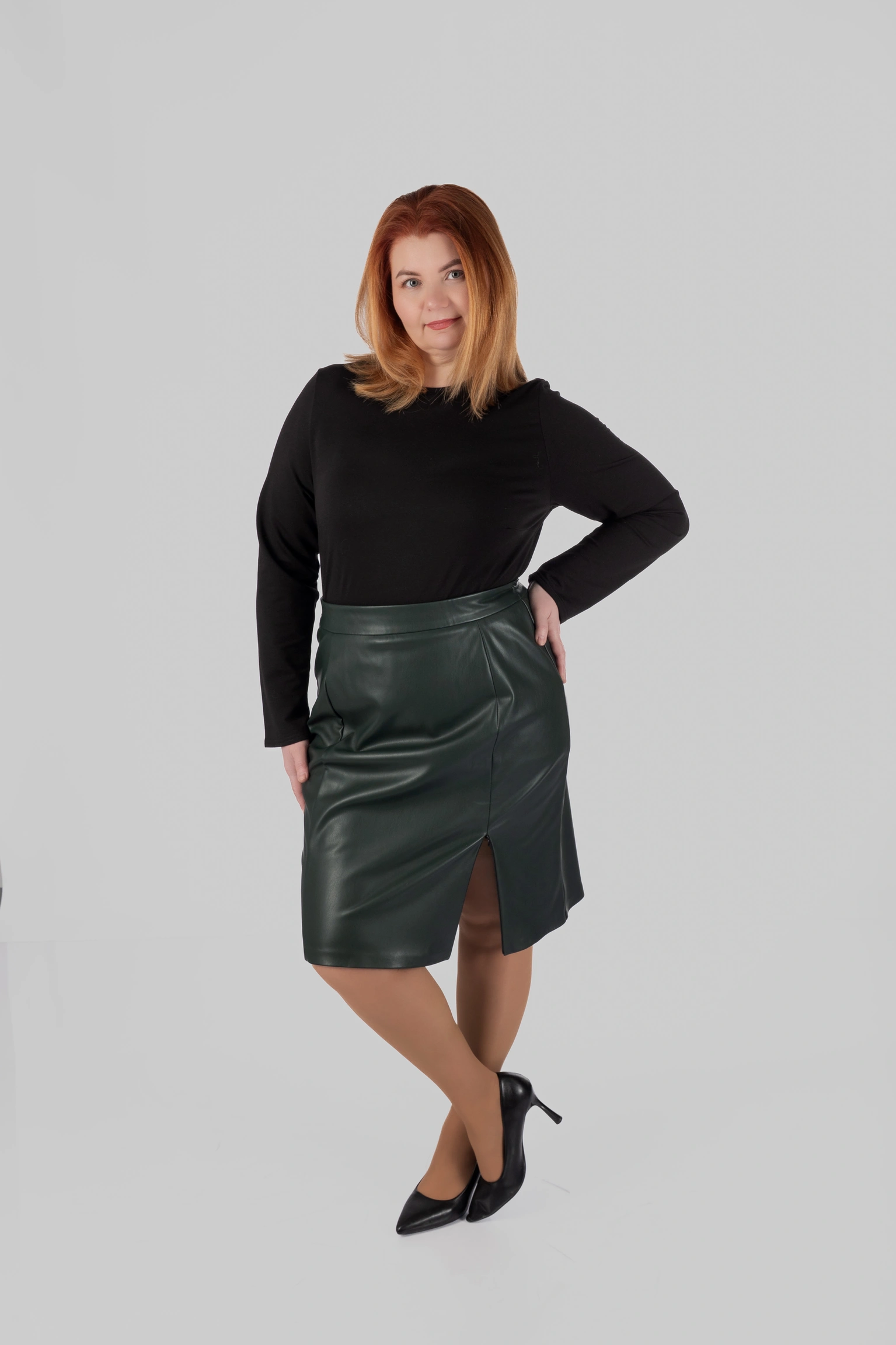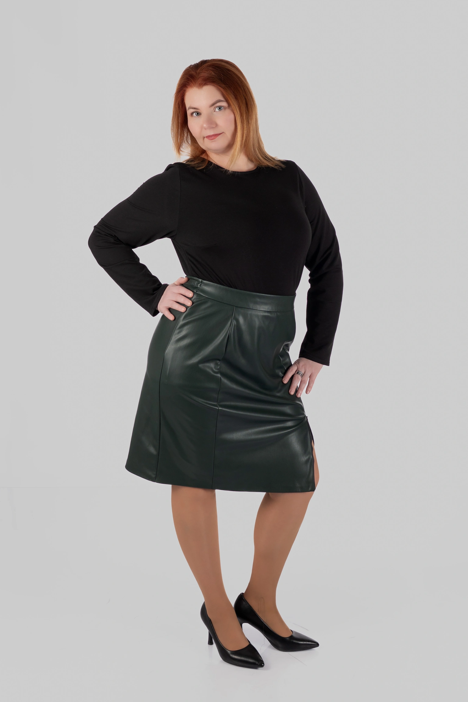 Спідниця MAYA — це мініспідниця великих розмірів, у якій поєднуються чітка форма, виразний матеріал і комфортна посадка. Модель створена для жінок, які хочуть виглядати зібрано та впевнено, але без відчуття скутості. Це акцентна спідниця plus size, яка легко інтегрується у сучасний міський гардероб.