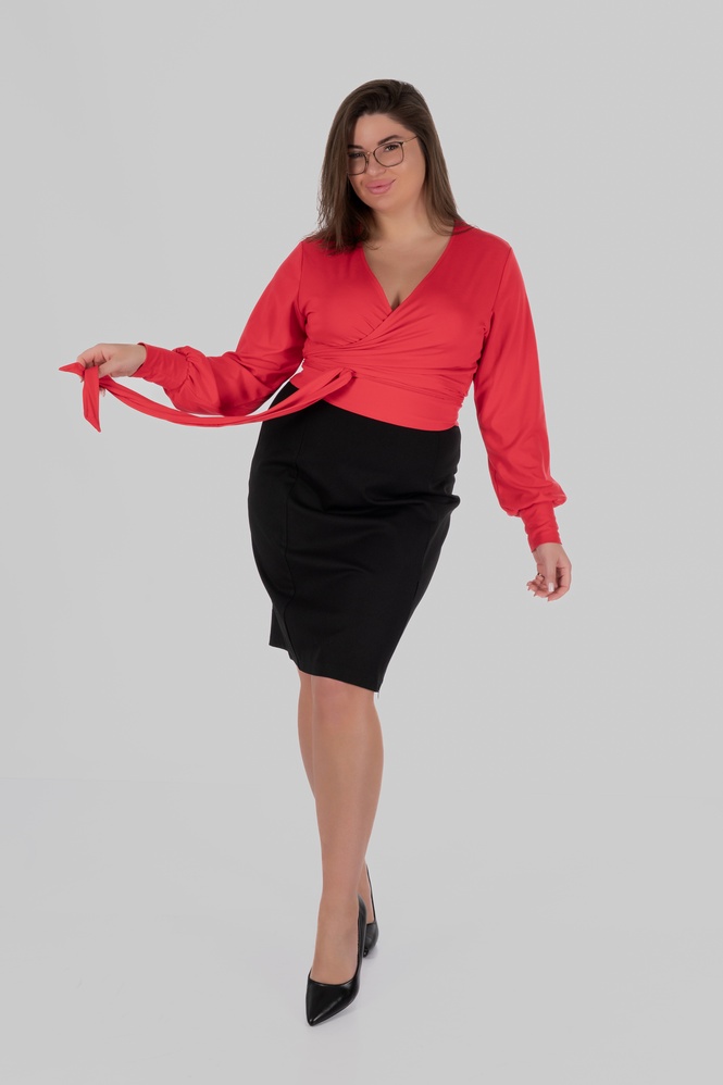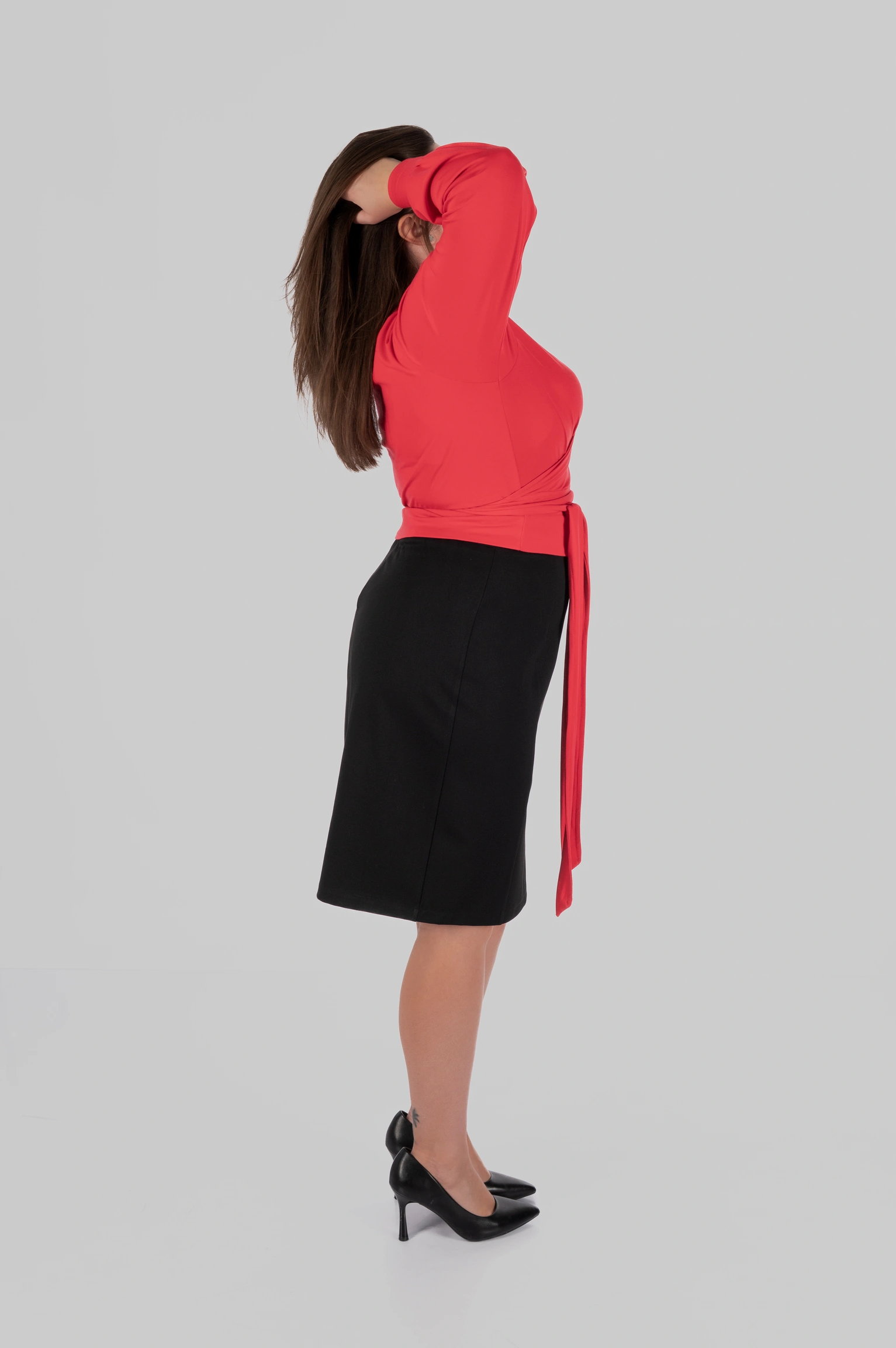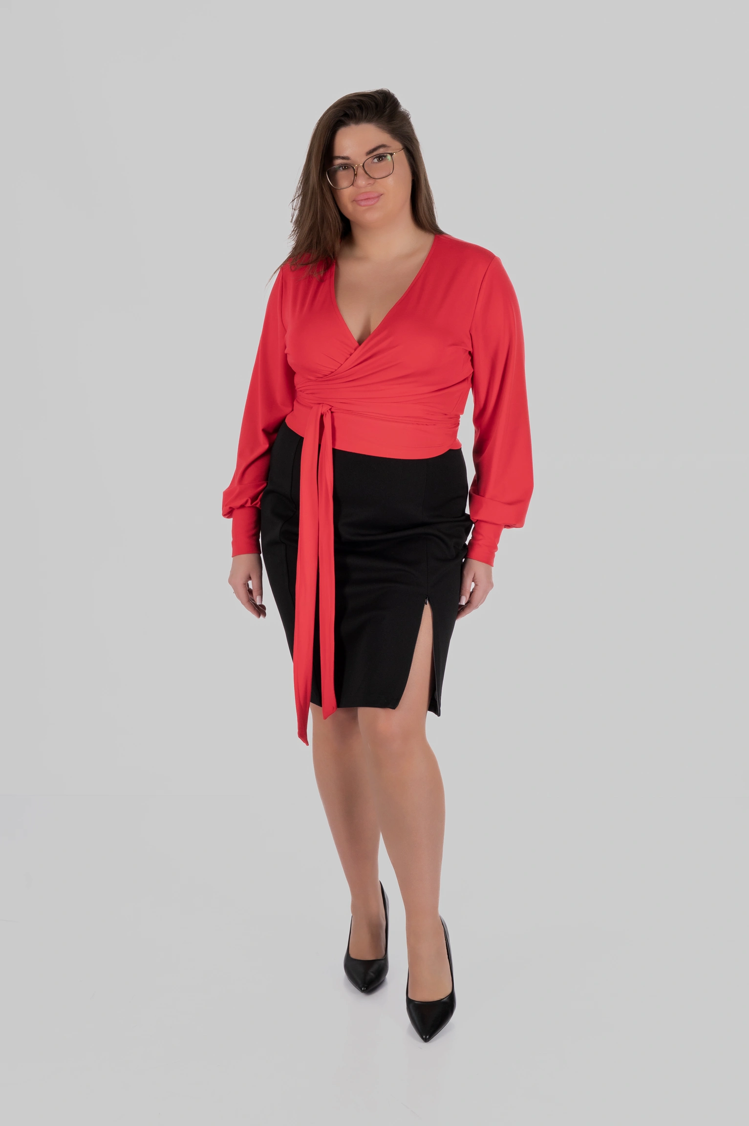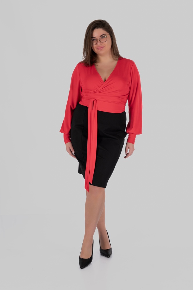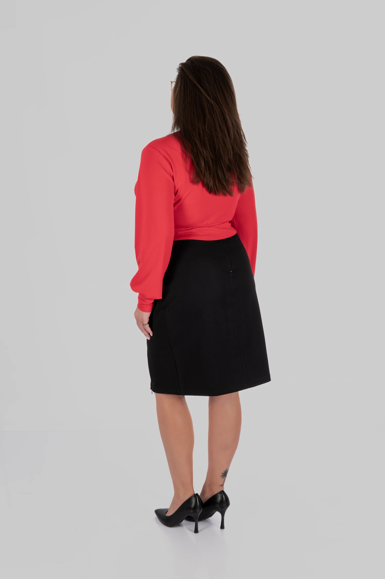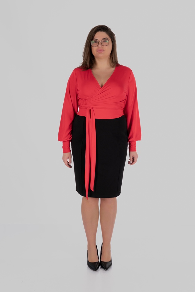Висока талія допомагає візуально структурувати силует і зробити пропорції більш гармонійними. Лінія талії виглядає більш виразною, а силует — зібраним. Для одягу plus-size це особливо важливо: модель не лише виглядає естетично, але й працює на фігуру, формуючи більш врівноважені пропорції.