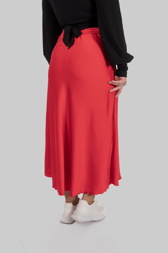 Тканина приємна до тіла, красиво драпірується і формує плавний рух у виробі. Саме завдяки цьому спідниця виглядає елегантно і дорого, навіть у простих стилізаціях.