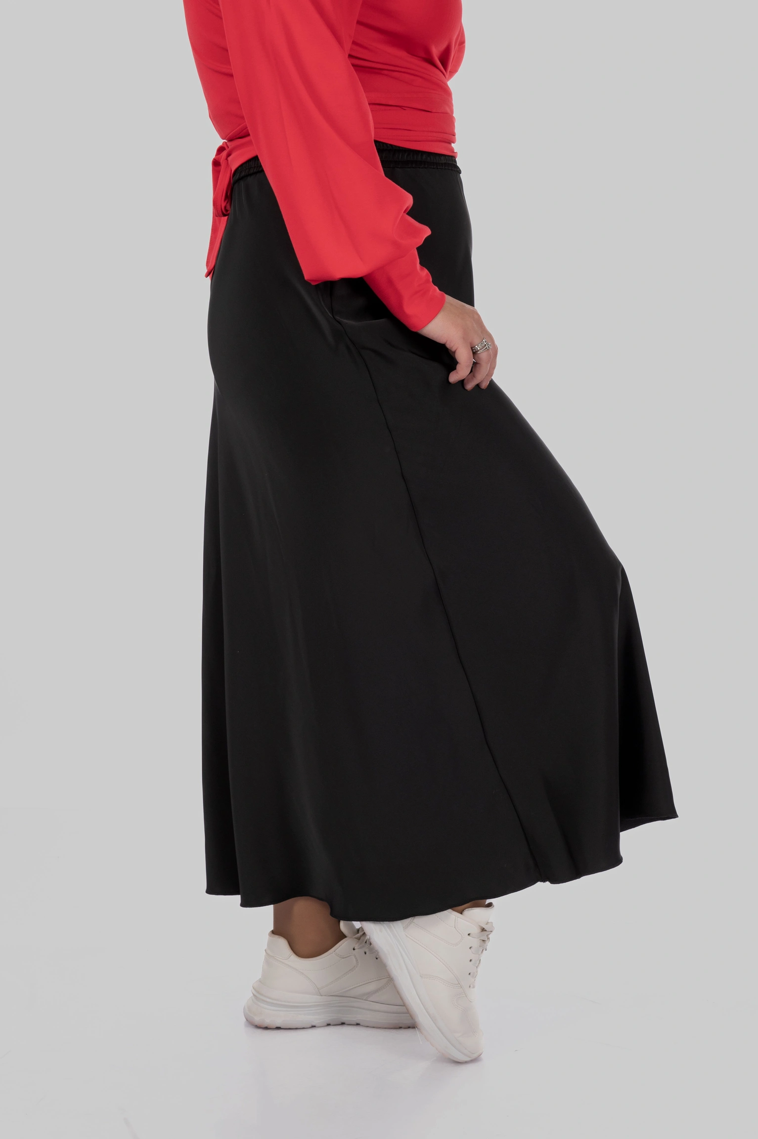 Спідниця SANSA — це шовкова спідниця міді великих розмірів, створена для гардероба, де важлива елегантність, комфорт і універсальність. Це одна з тих моделей, які легко адаптуються під різні образи — від розслаблених повсякденних до більш елегантних.