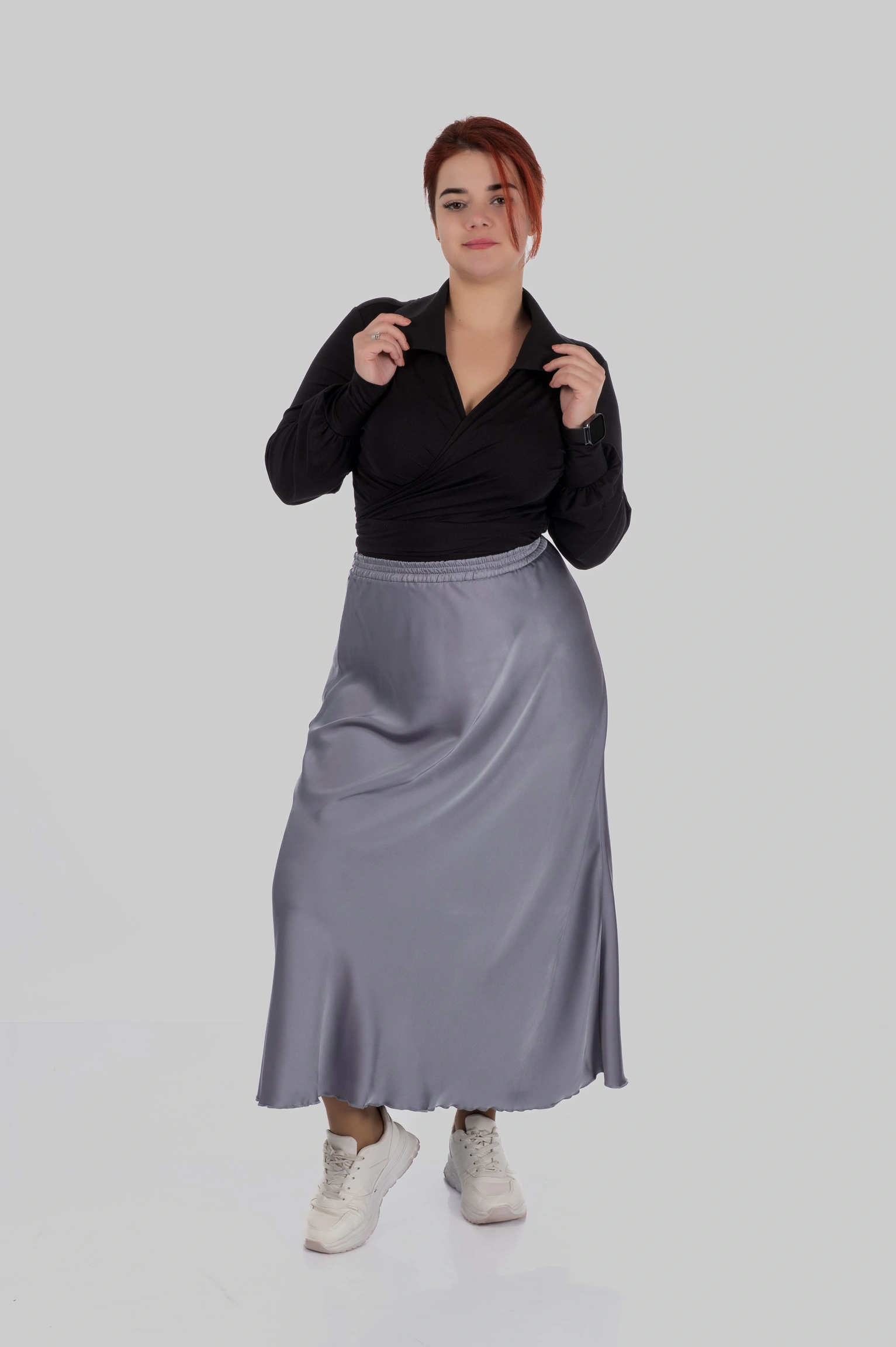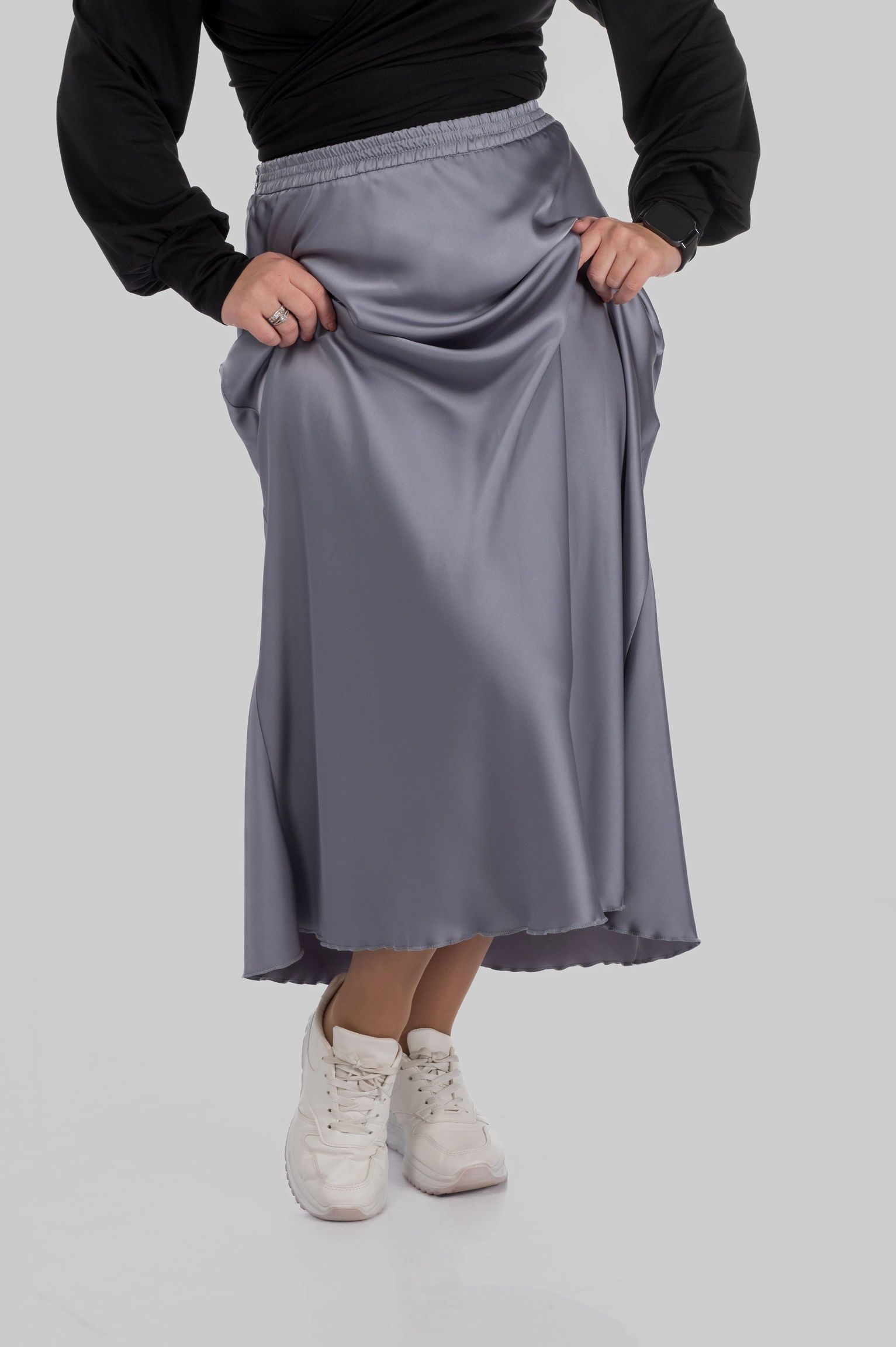 Спідниця SANSA — це шовкова спідниця міді великих розмірів, створена для гардероба, де важлива елегантність, комфорт і універсальність. Це одна з тих моделей, які легко адаптуються під різні образи — від розслаблених повсякденних до більш елегантних.