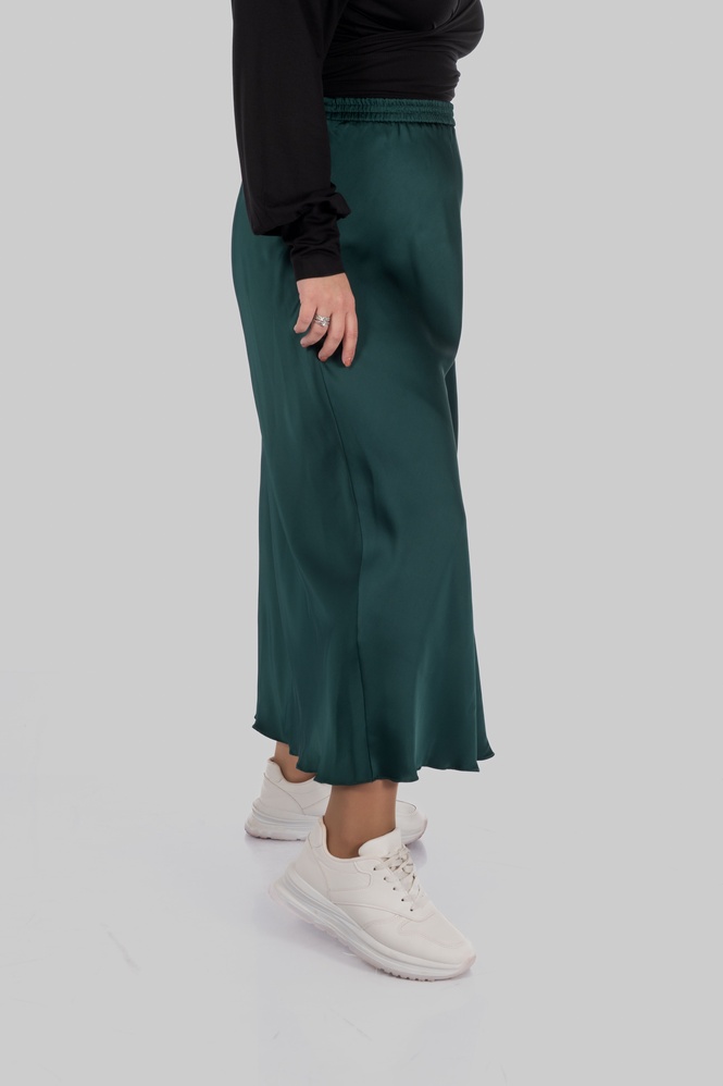 Саме тому шовкові спідниці, скроєні по косій, вважаються одними з найелегантніших моделей у жіночому гардеробі. Такий крій дозволяє тканині природно спадати, формуючи струмливий силует і плавні лінії. Спідниця міді SANSA поєднує цей ефект із комфортною посадкою і універсальною довжиною, тому легко вписується як у повсякденні, так і у більш елегантні образи.