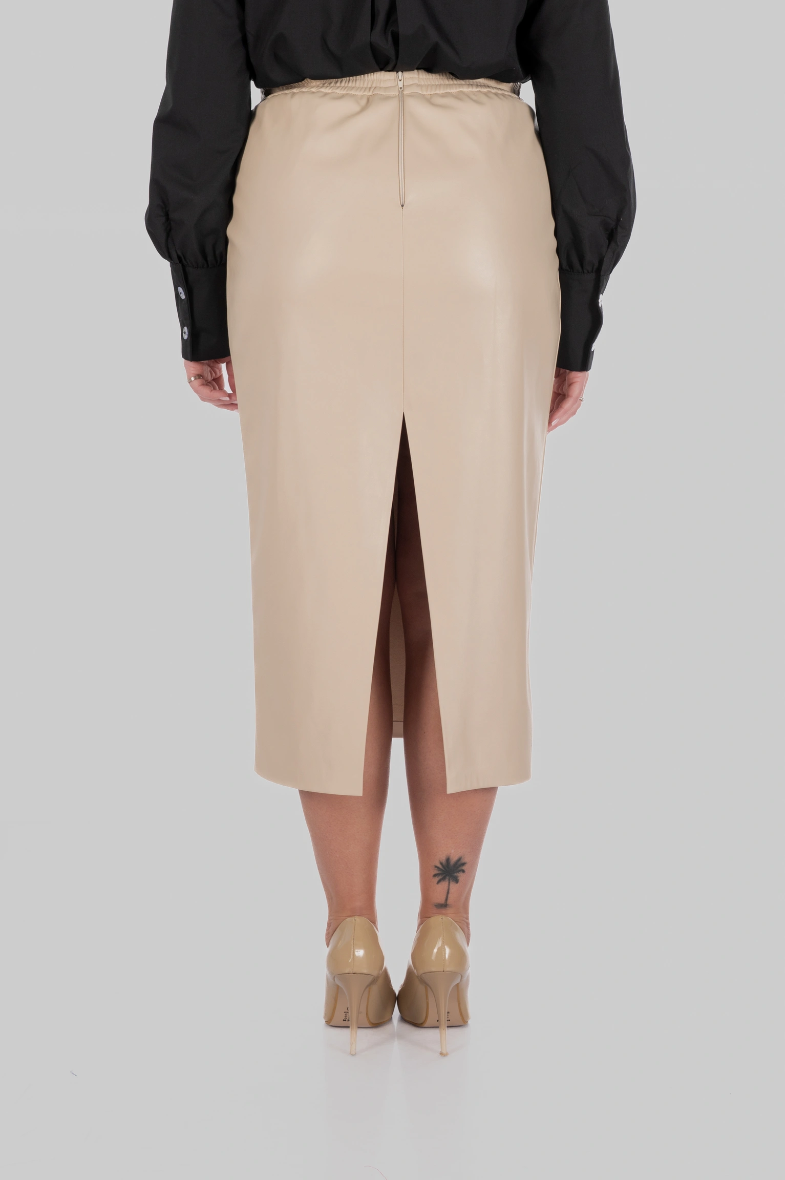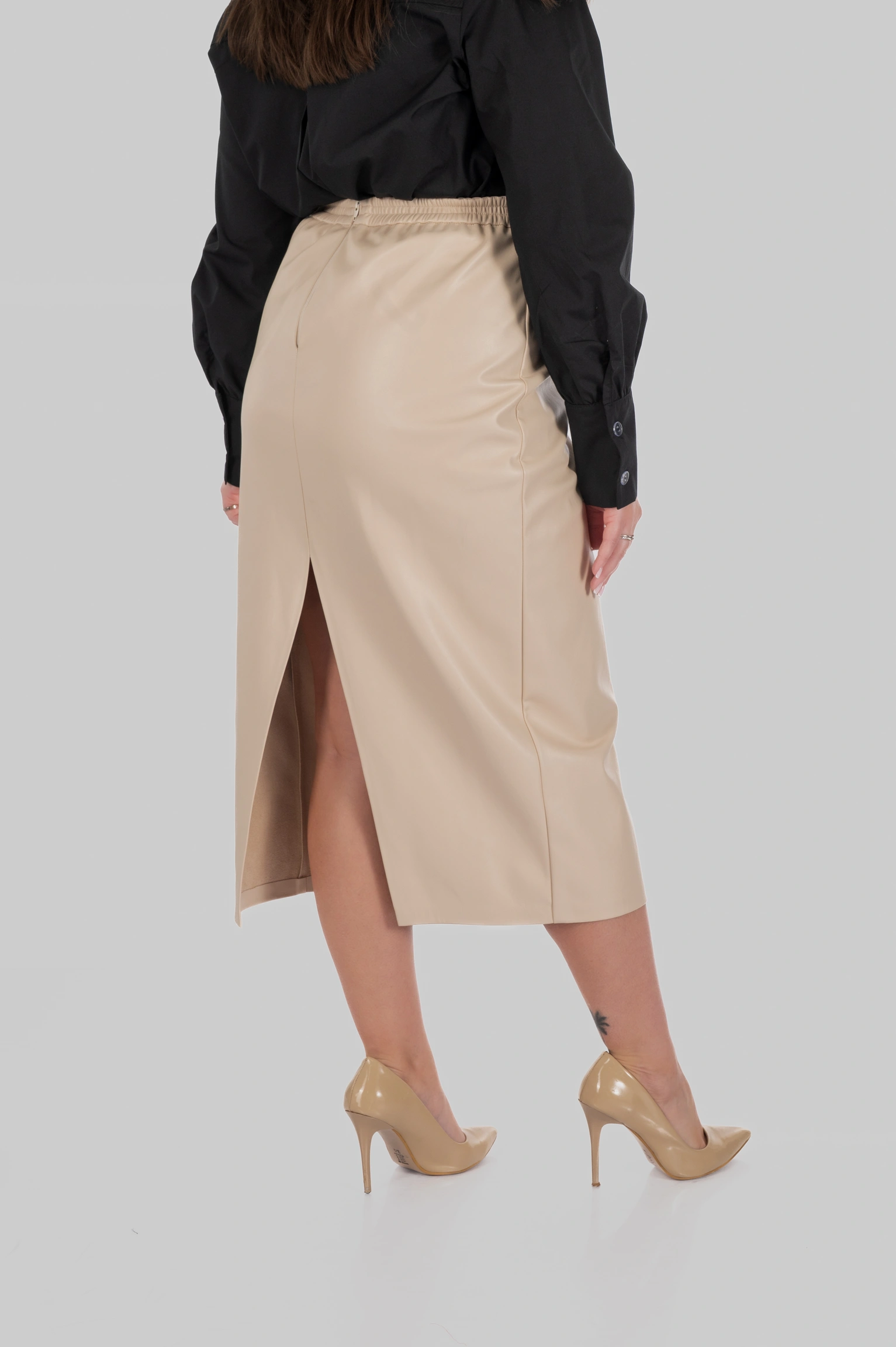Спідниця з еко-шкіри міді з розрізом ззаду RUMI