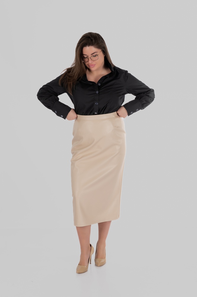 Саме тому спідниця міді великих розмірів з еко-шкіри — це не річ “на один вихід”, а сильна інвестиція в гардероб. Вона здатна закривати одразу кілька сценаріїв: міські образи, офісний гардероб, зустрічі, вечірні виходи, демісезонні комплекти. Це одна з тих моделей, які не губляться в шафі, а регулярно працюють у стилізаціях, бо мають характер, але не втрачають універсальності.
