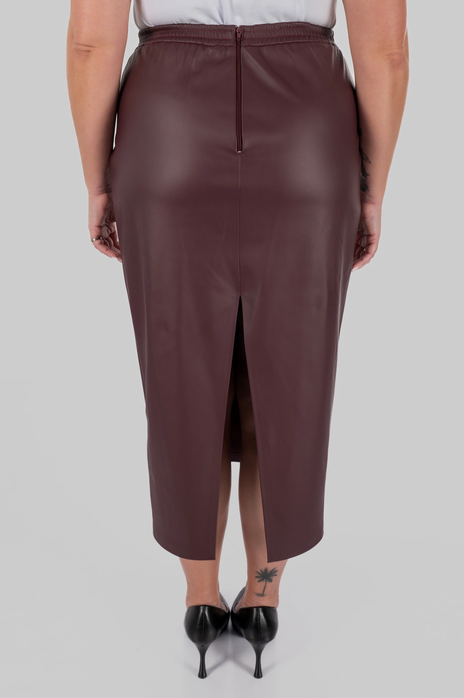 Спідниця з еко-шкіри міді з розрізом ззаду RUMI