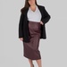 Силует моделі побудований так, щоб підкреслити фігуру без жорсткості й перевантаження. Висока посадка візуально структурує пропорції, допомагає зробити лінію талії більш виразною, а образ — більш зібраним. Прямий крій м’яко проходить по стегнах, не створюючи зайвого об’єму, і саме тому ця жіноча спідниця великих розмірів виглядає акуратно, впевнено й дуже сучасно.