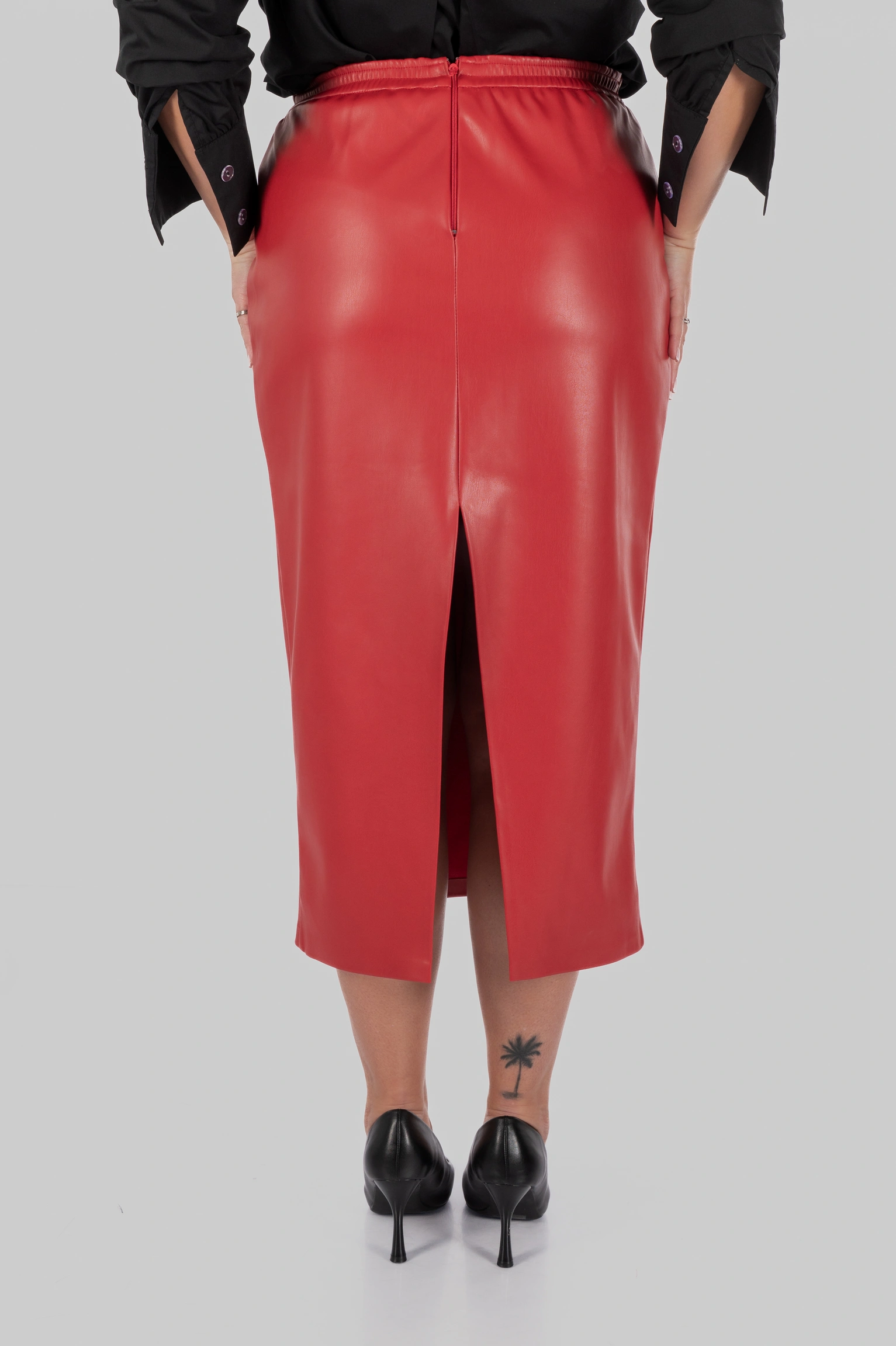 Спідниця з еко-шкіри міді з розрізом ззаду RUMI