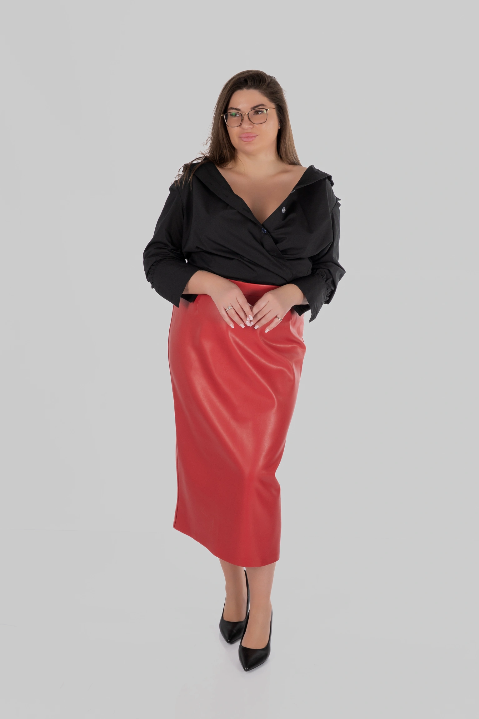 Саме тому спідниця міді великих розмірів з еко-шкіри — це не річ “на один вихід”, а сильна інвестиція в гардероб. Вона здатна закривати одразу кілька сценаріїв: міські образи, офісний гардероб, зустрічі, вечірні виходи, демісезонні комплекти. Це одна з тих моделей, які не губляться в шафі, а регулярно працюють у стилізаціях, бо мають характер, але не втрачають універсальності.