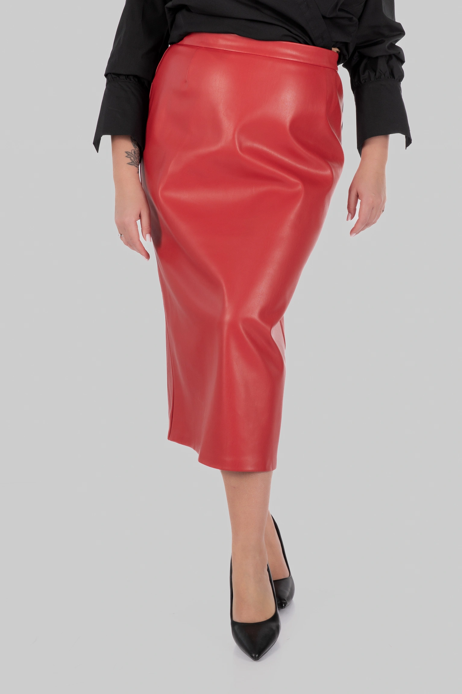 Окрема сила цієї моделі — матеріал. Еко-шкіра на замші дає саме той ефект, який складно отримати від звичайної еко-шкіри: зовні виріб виглядає структурно, гладко й виразно, а зсередини має м’яку замшеву основу, приємну до тіла. Завдяки цьому спідниця з еко-шкіри великих розмірів не сприймається жорсткою або «холодною». Вона комфортна в носінні, красиво тримає форму і водночас не виглядає грубо. Для plus-size сегмента це особливо важливо, тому що матеріал повинен не лише ефектно виглядати, а й правильно працювати на фігурі.