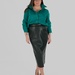 Окрема сила цієї моделі — матеріал. Еко-шкіра на замші дає саме той ефект, який складно отримати від звичайної еко-шкіри: зовні виріб виглядає структурно, гладко й виразно, а зсередини має м’яку замшеву основу, приємну до тіла. Завдяки цьому спідниця з еко-шкіри великих розмірів не сприймається жорсткою або «холодною». Вона комфортна в носінні, красиво тримає форму і водночас не виглядає грубо. Для plus-size сегмента це особливо важливо, тому що матеріал повинен не лише ефектно виглядати, а й правильно працювати на фігурі.