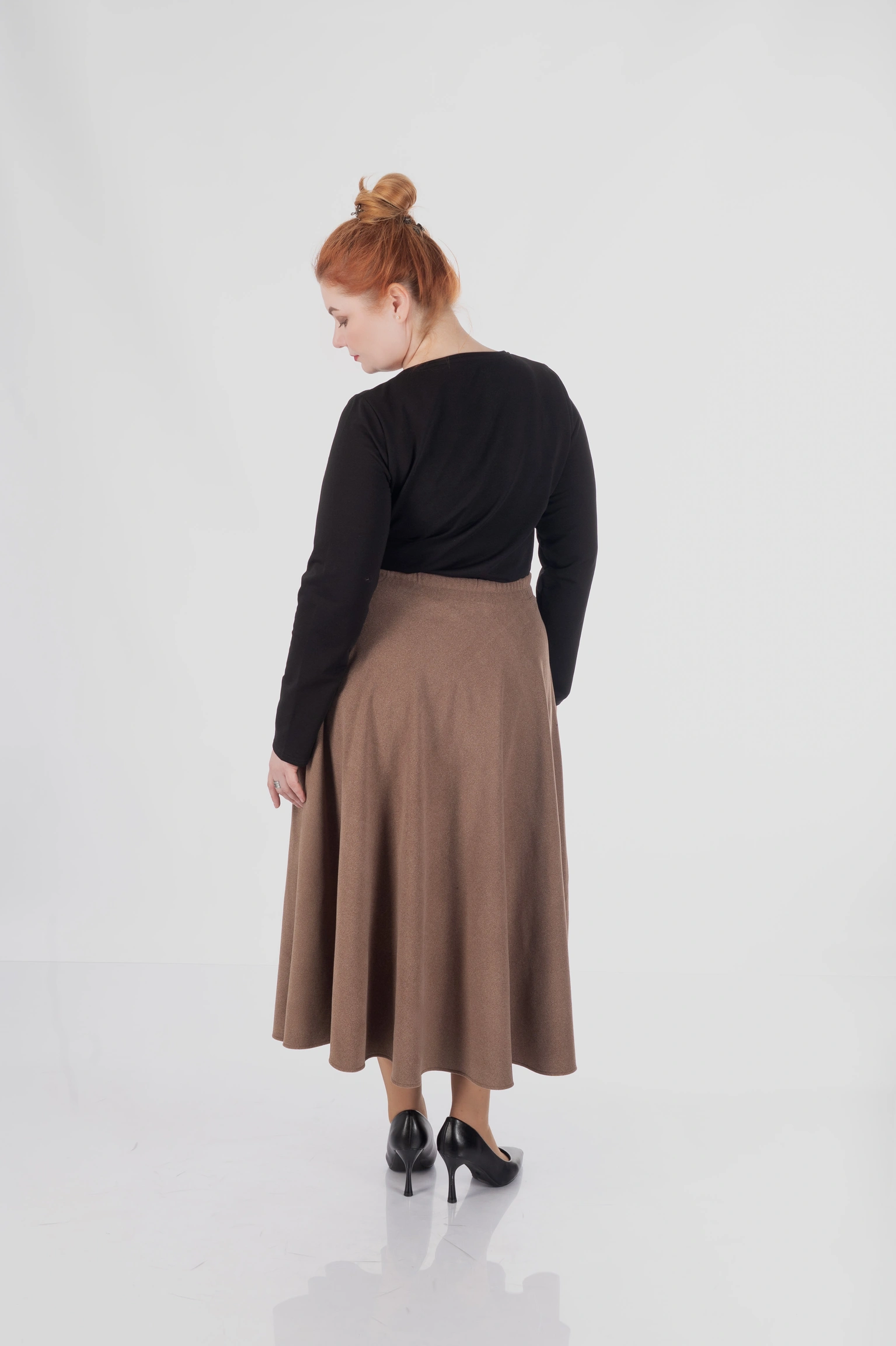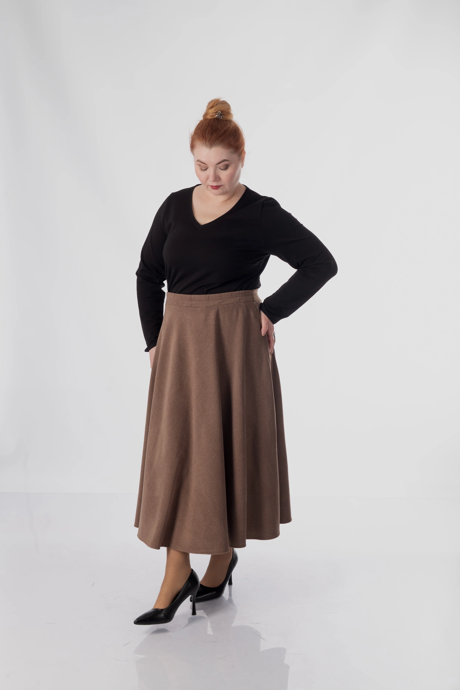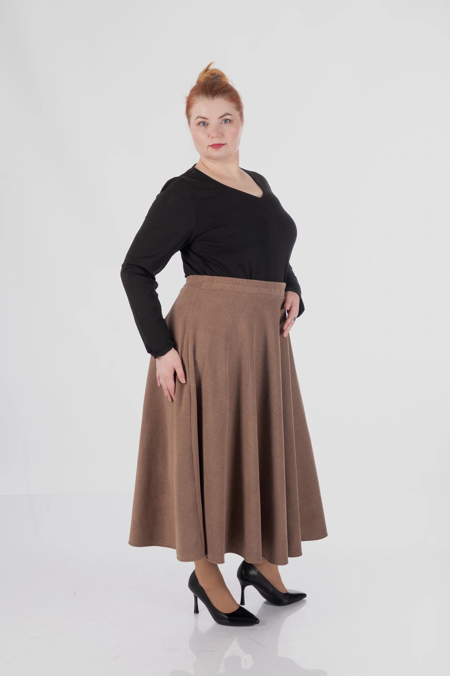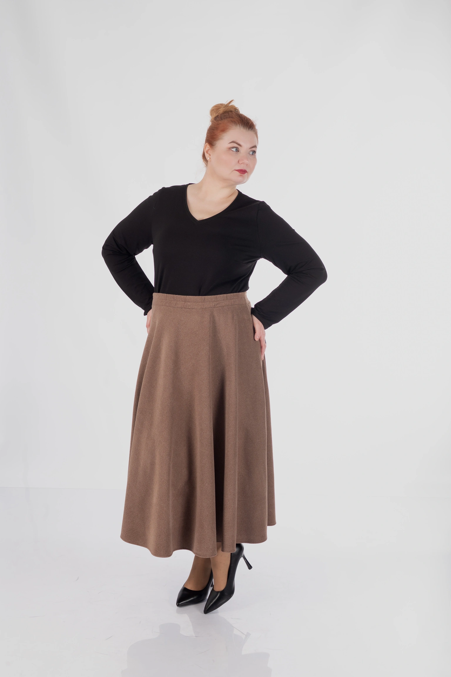 Спідниця MILA — це тепла трикотажна спідниця міді великих розмірів, у якій поєднуються комфорт м’якого матеріалу, виразний силует і красивий рух тканини. Модель створена для прохолодної погоди, коли важливо виглядати зібрано, але водночас відчувати справжній комфорт у носінні.