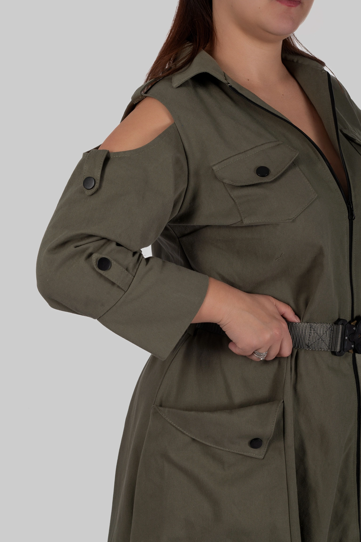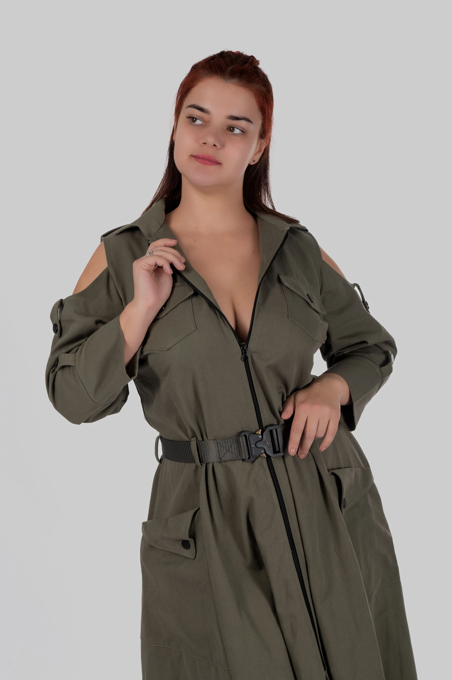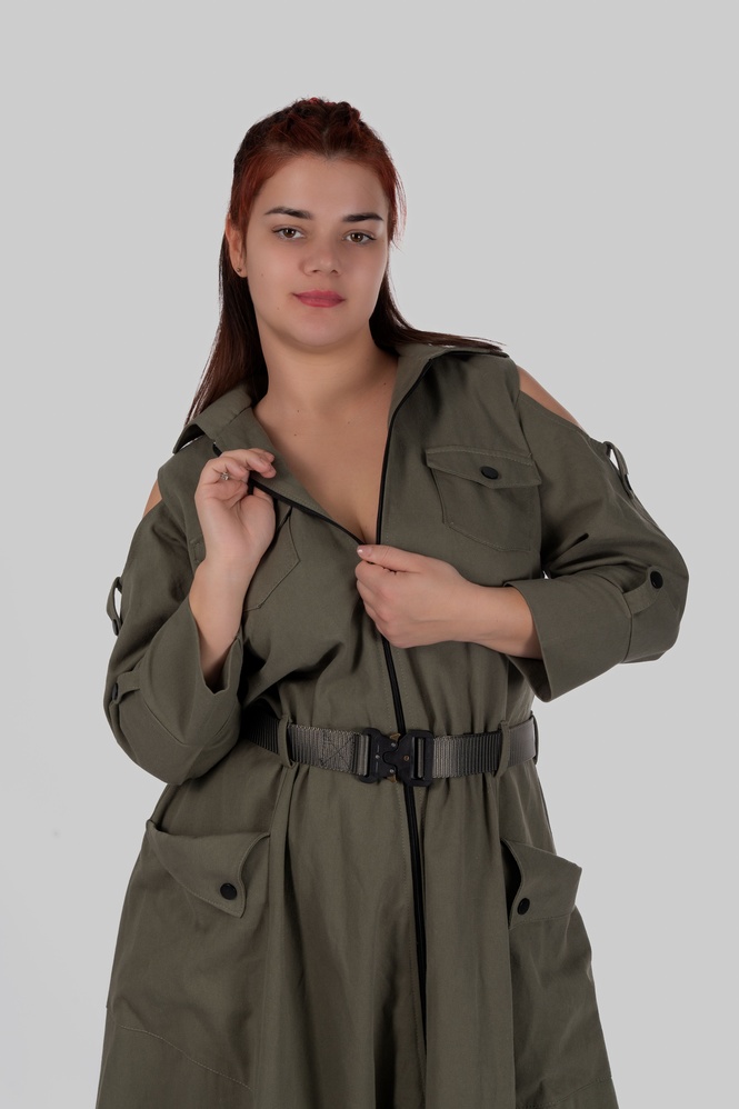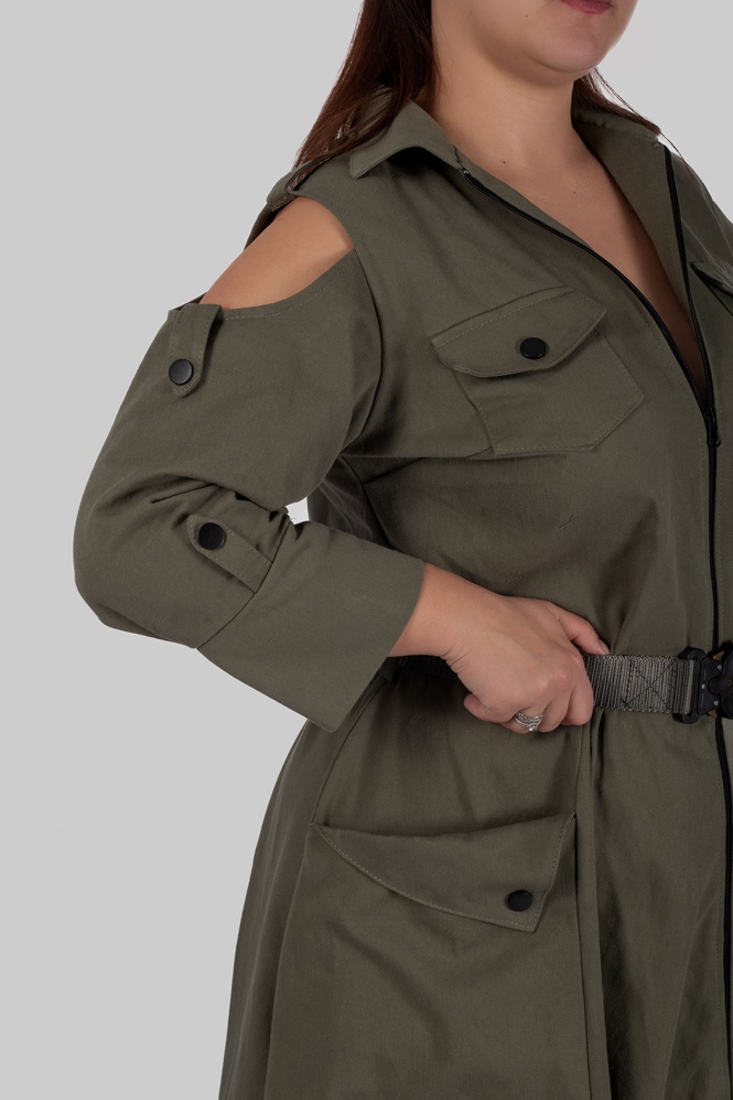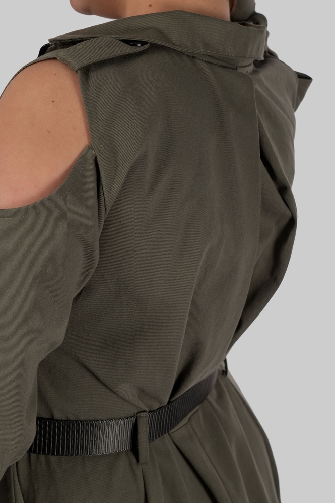 - Деталі: відкриті плечі, функціональні кишені