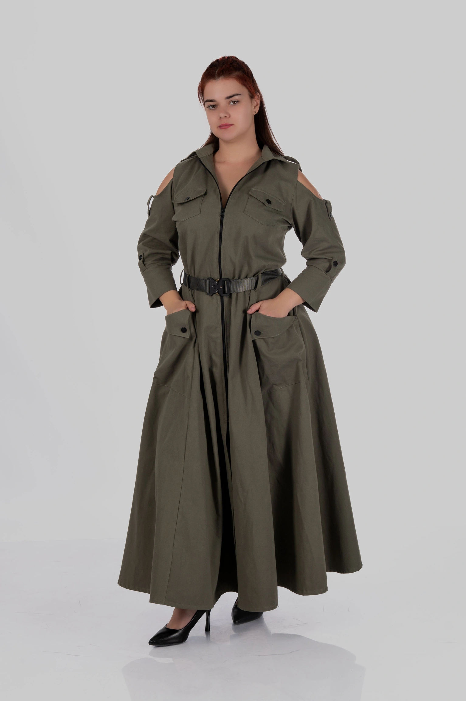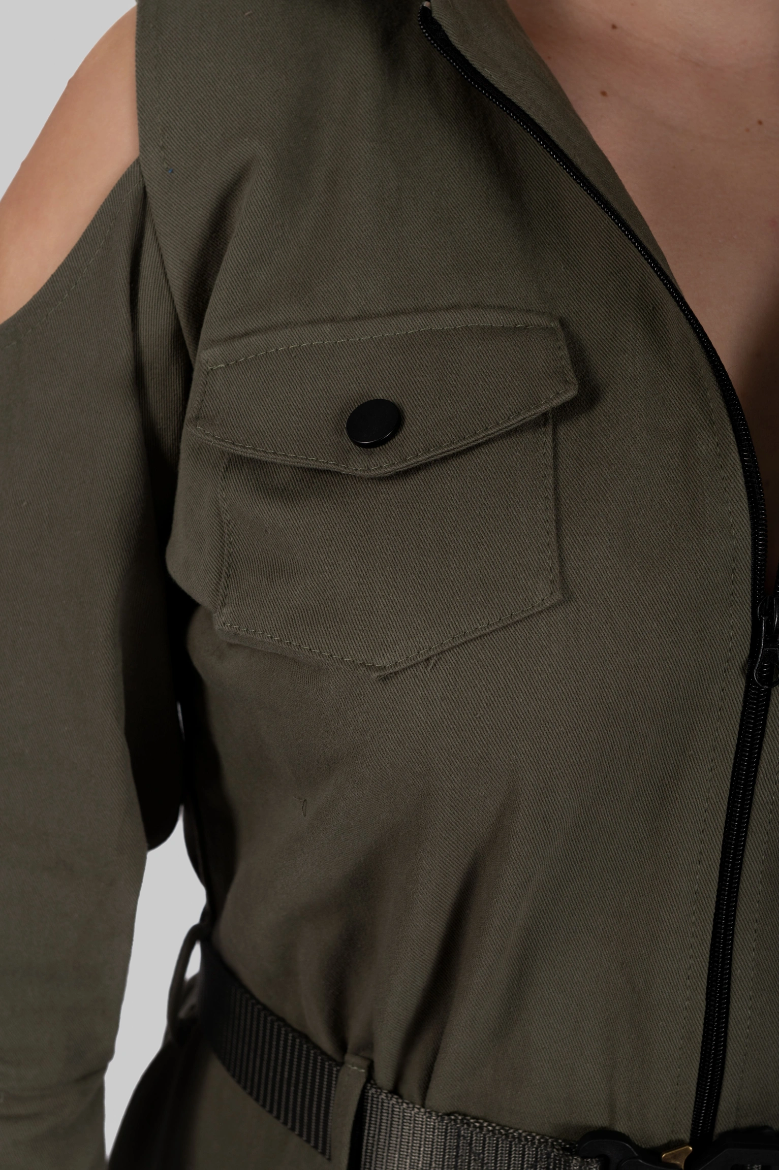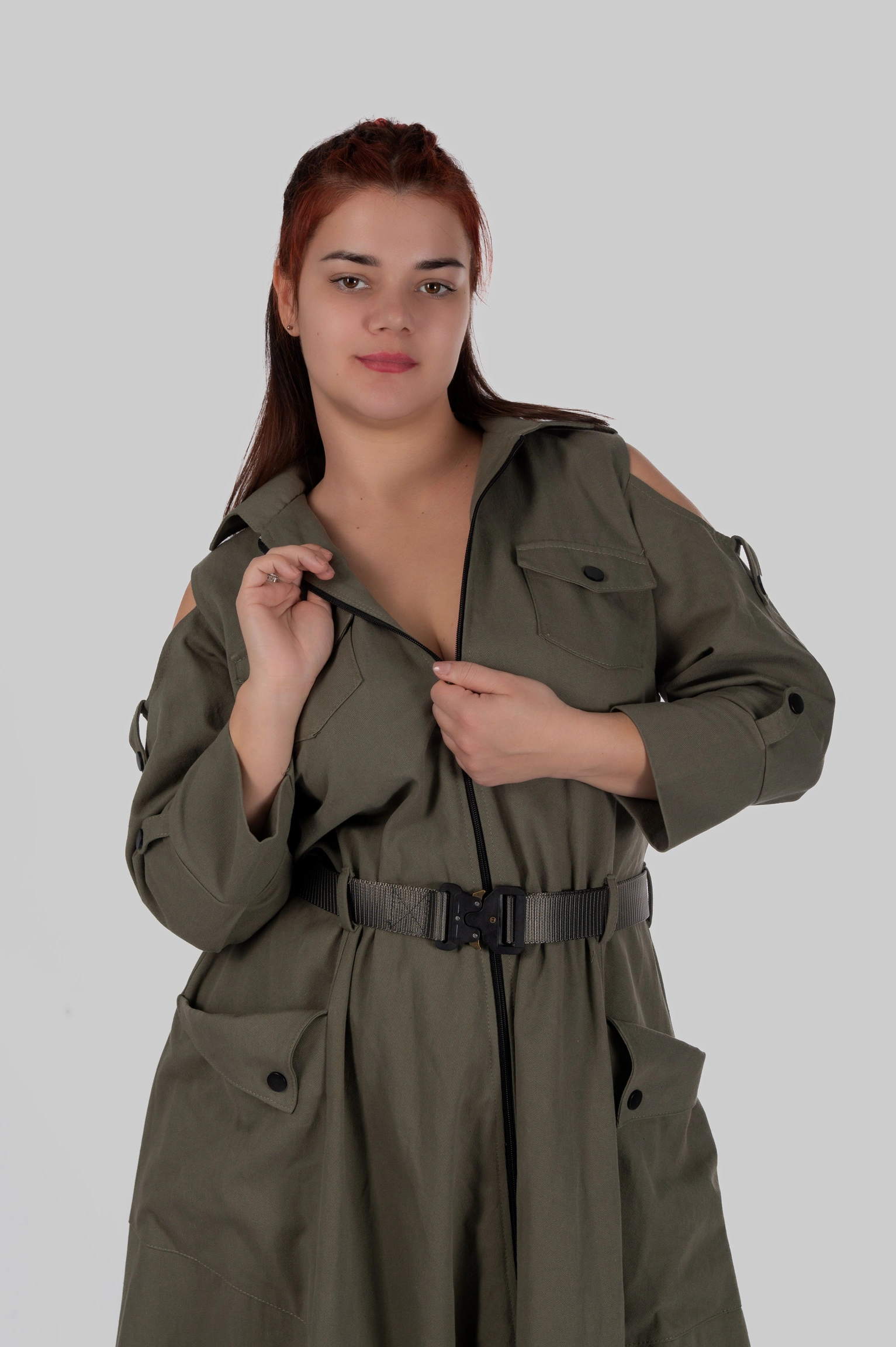 - Деталі: відкриті плечі, функціональні кишені