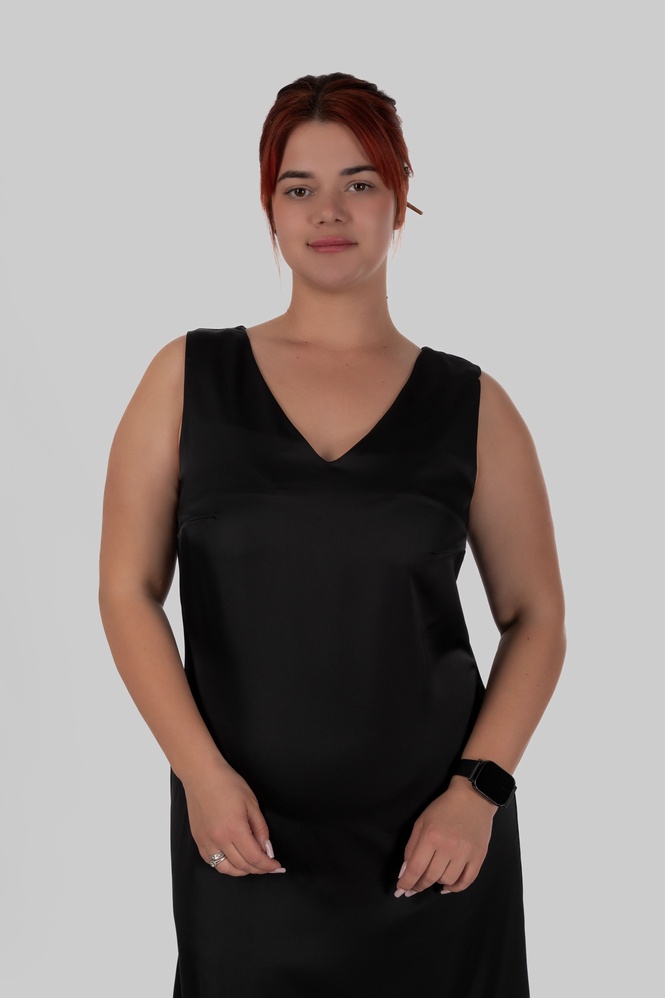 V-подібний виріз відкриває зону декольте рівно настільки, щоб виглядати жіночно, але стримано. Широкі бретелі дають комфорт і впевненість — нічого не сповзає, не перекручується і не потребує постійного контролю.