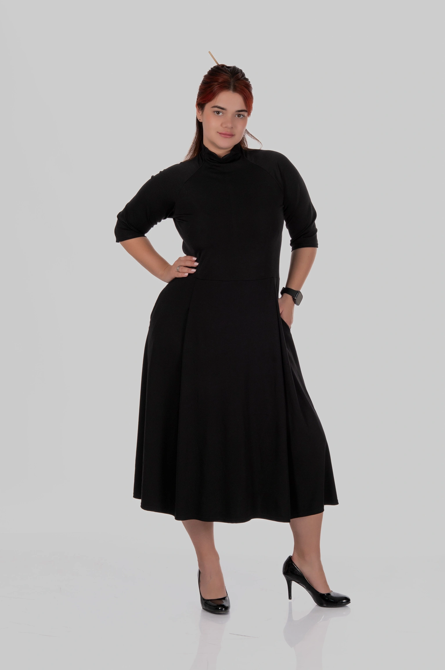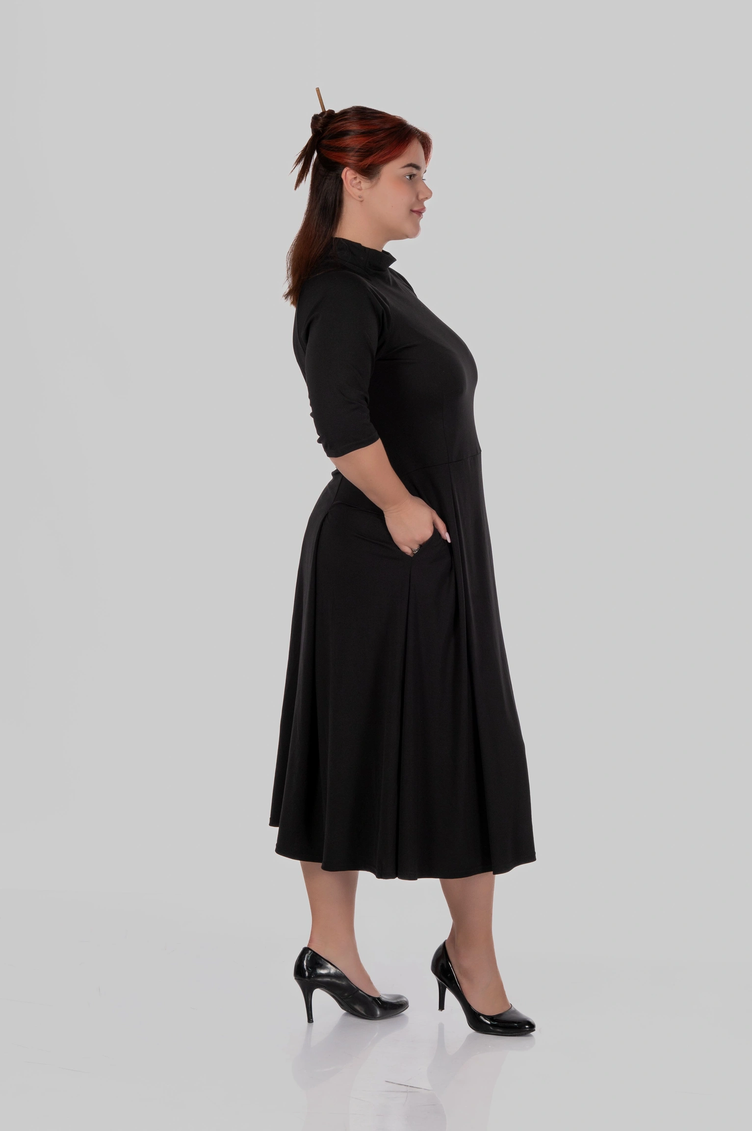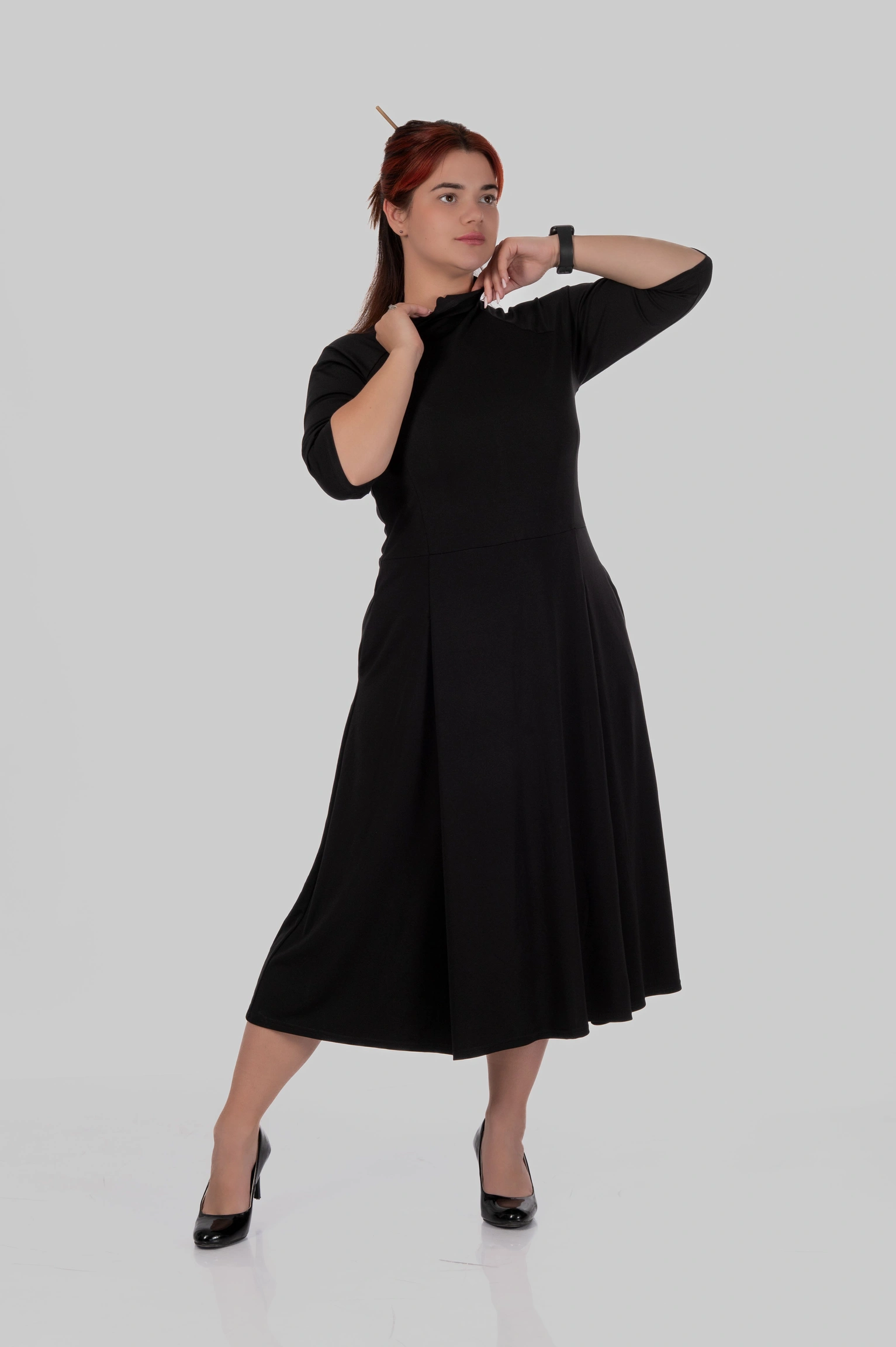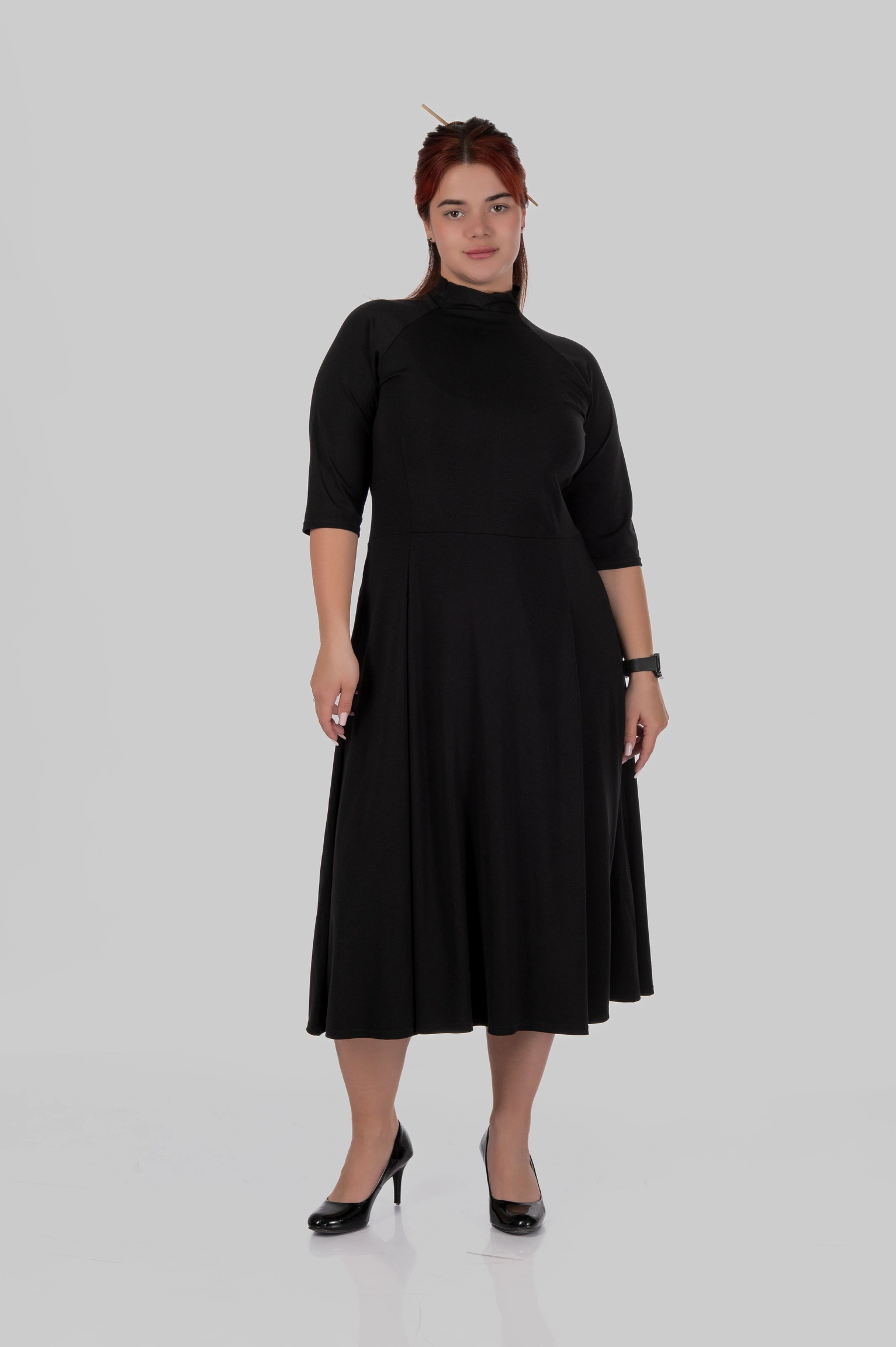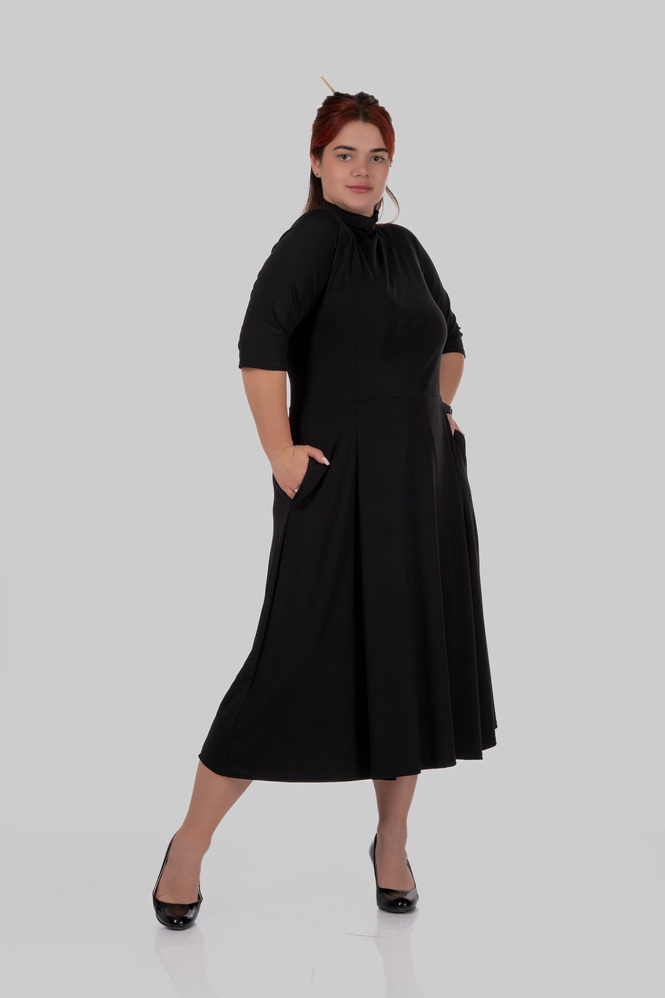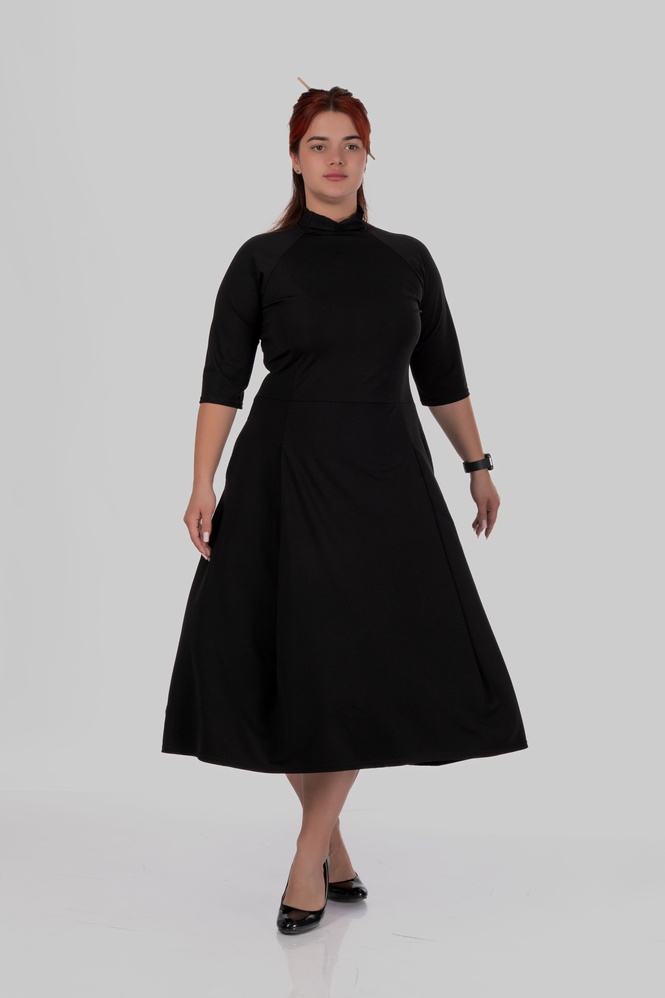 Сукня міді з коміром-стійкою та розкльошеною спідницею MILANA
