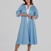 Округла горловина з декоративним вирізом створює витягнуту вертикаль у верхній частині силуету, а довжина міді робить модель універсальною для різних ситуацій — від повсякденних образів до більш елегантних стилізацій.