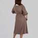 Силует моделі будується на м’якій лінії талії та плавному розширенні донизу. Пояс із основної тканини дозволяє регулювати посадку і формувати більш виразний або більш розслаблений силует залежно від стилізації.