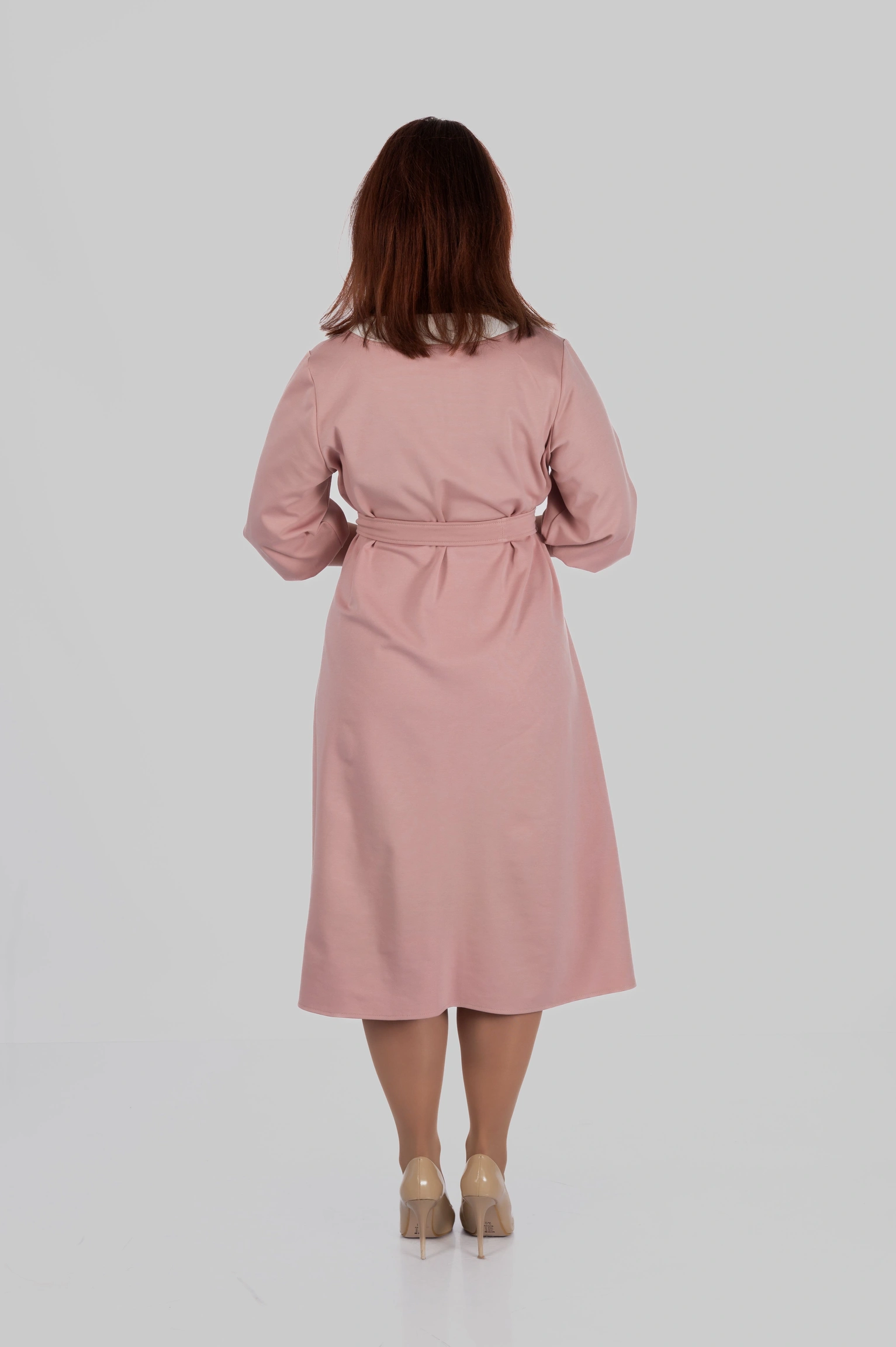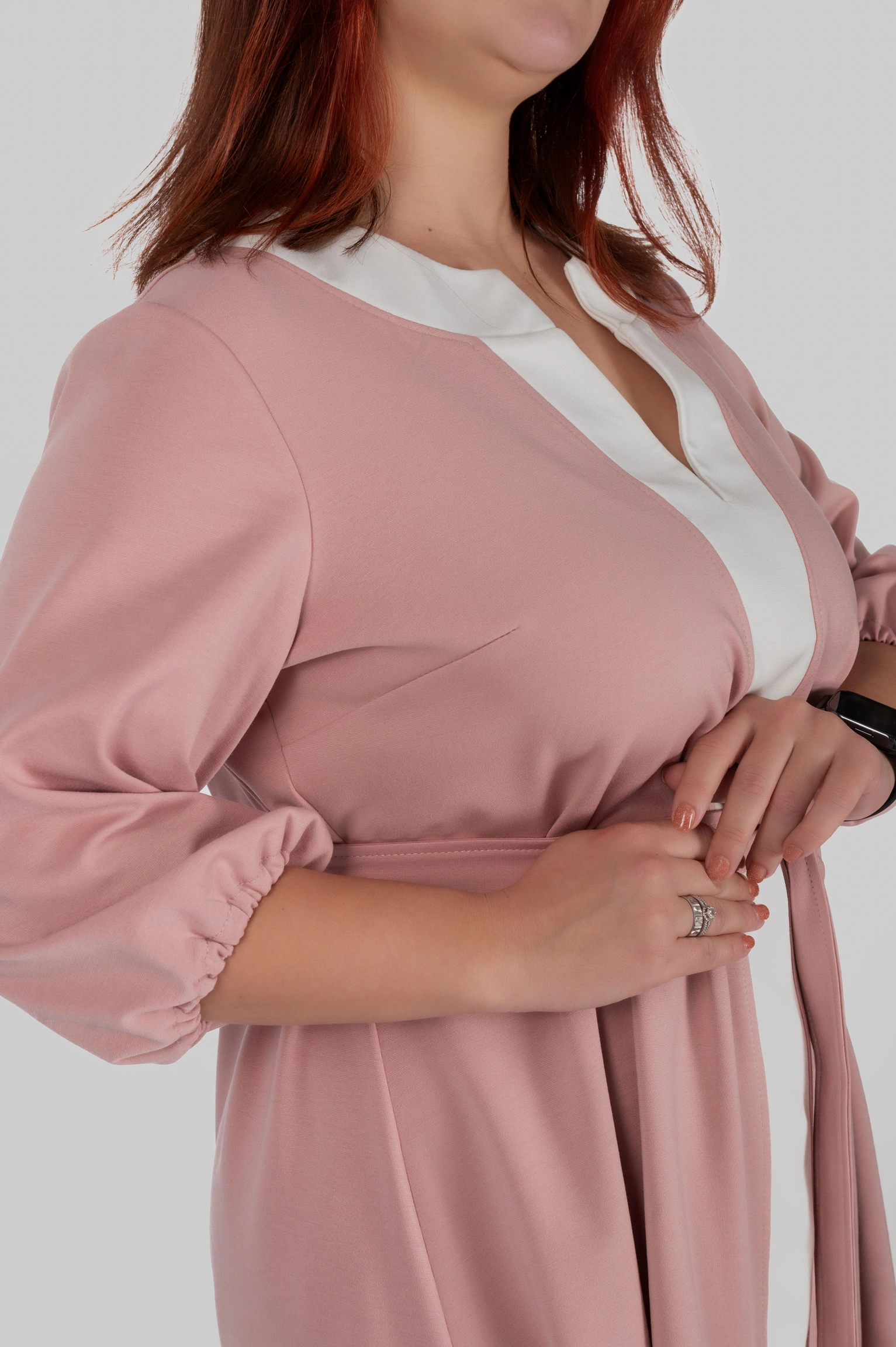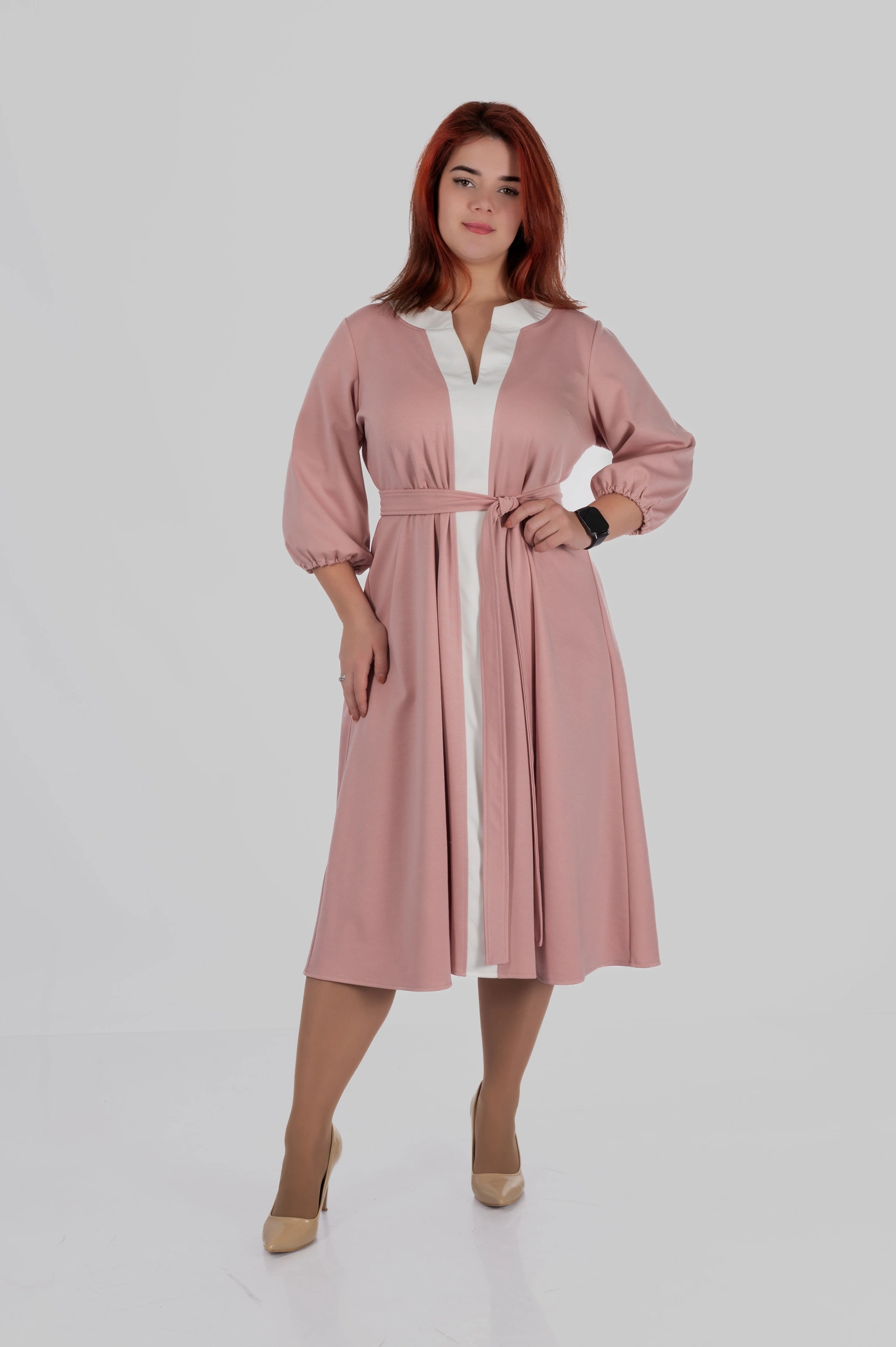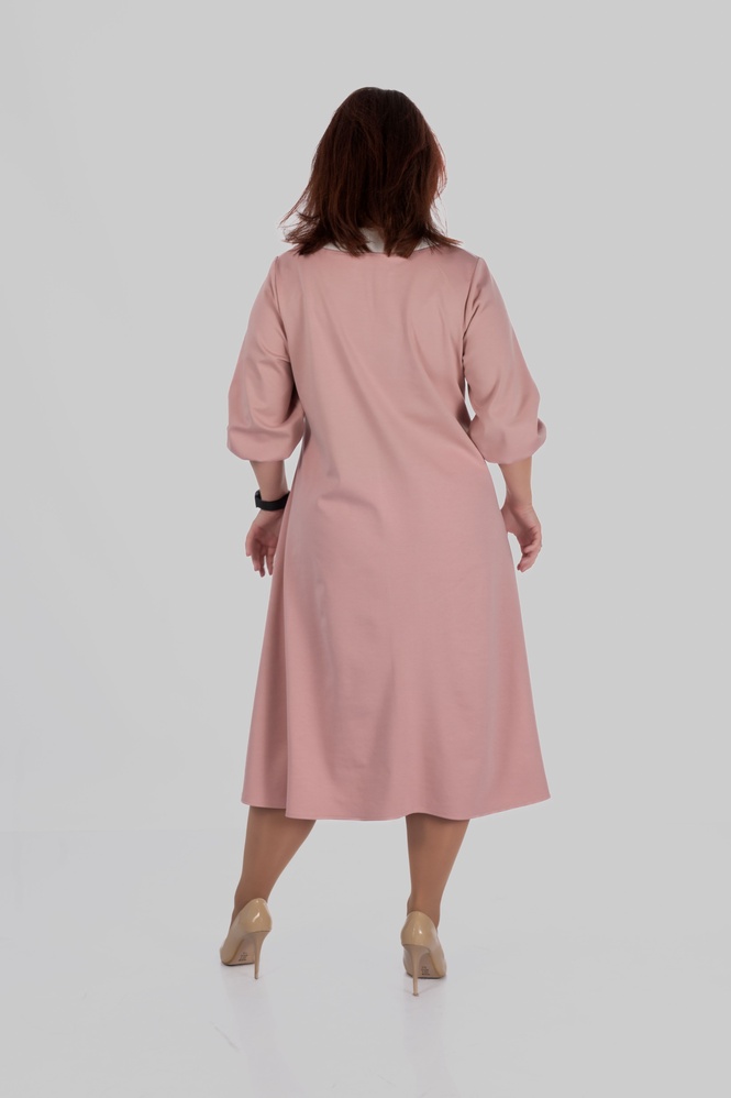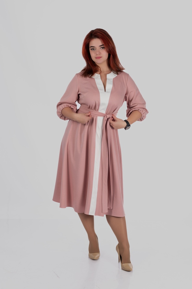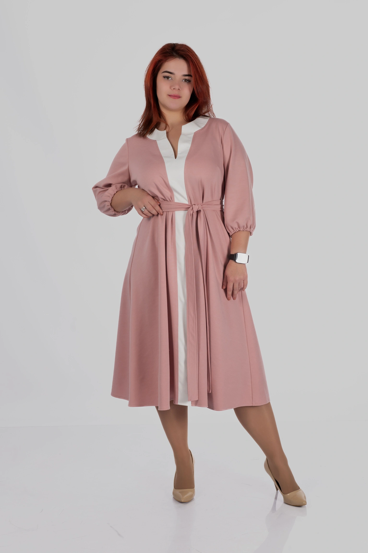 Продуманий крій моделі створений з урахуванням посадки для розмірів 50–64. Сукня формує витягнутий силует, виглядає легкою і елегантною та залишається комфортною протягом усього дня.