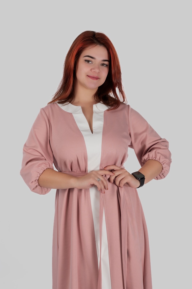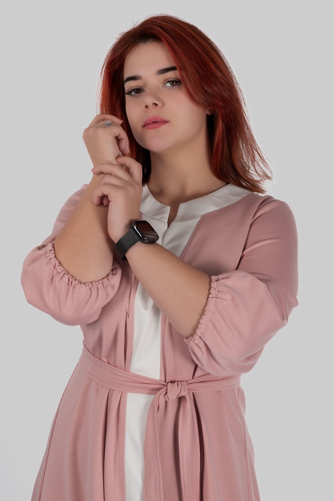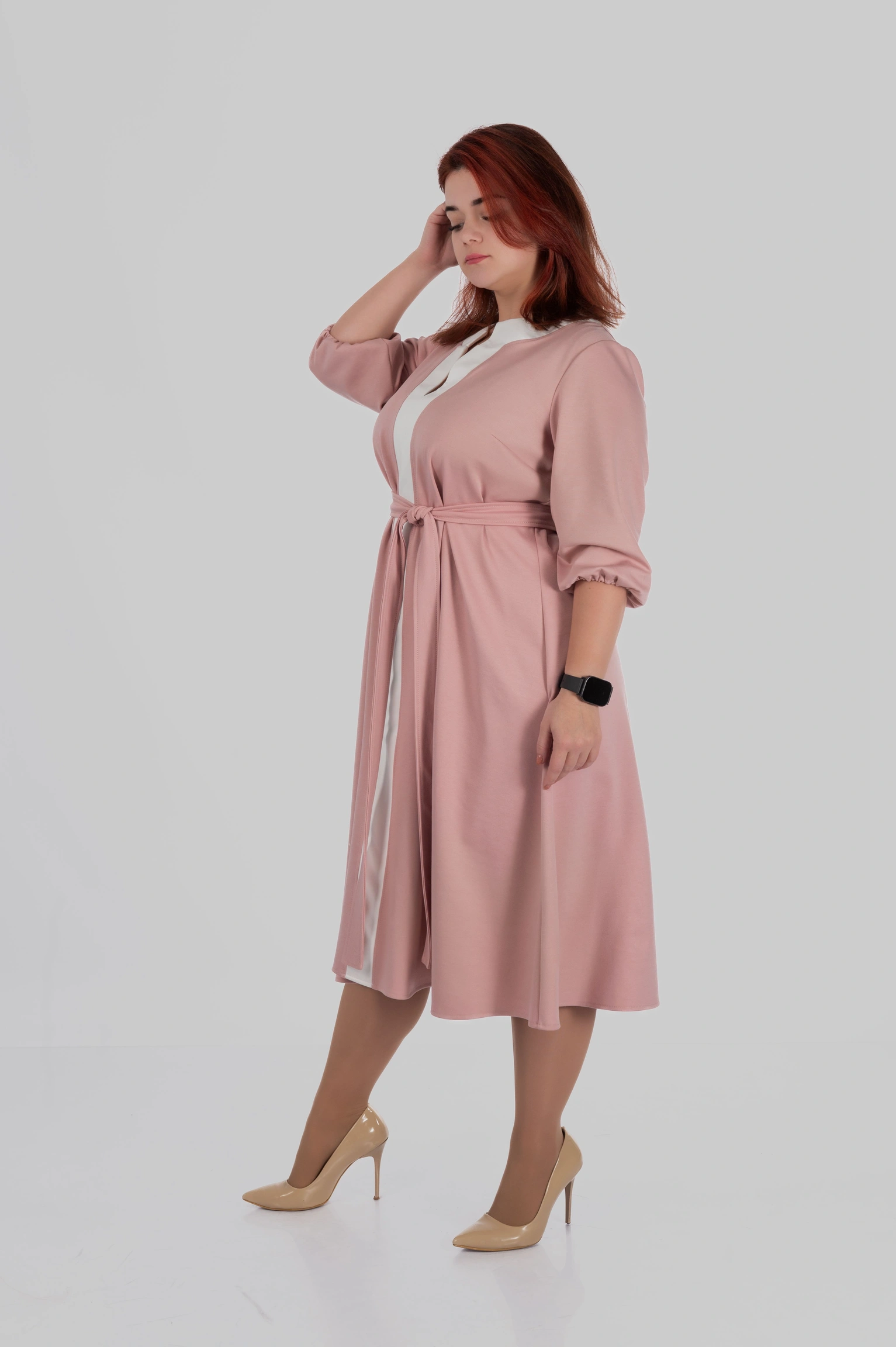 ENNY — це сукня міді, яка поєднує ніжність пастельних кольорів, комфорт м’якої тканини та універсальність сучасного капсульного гардероба.