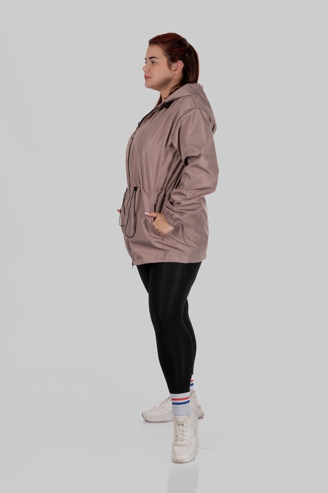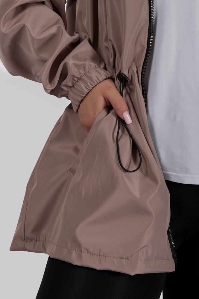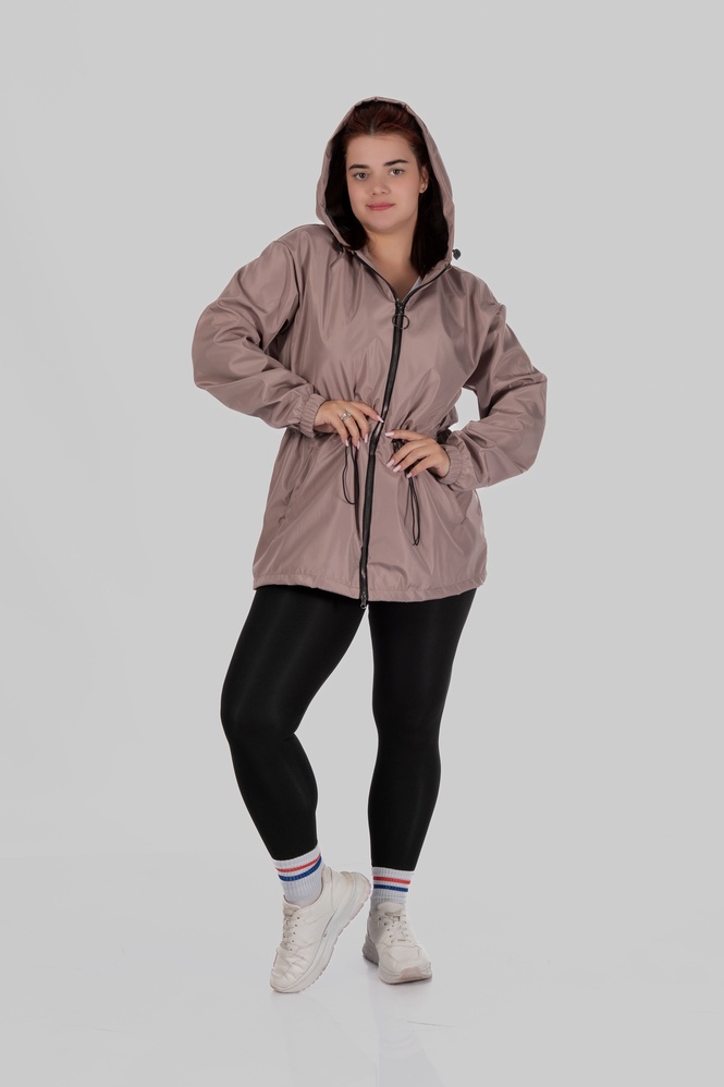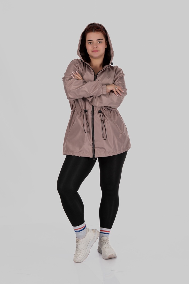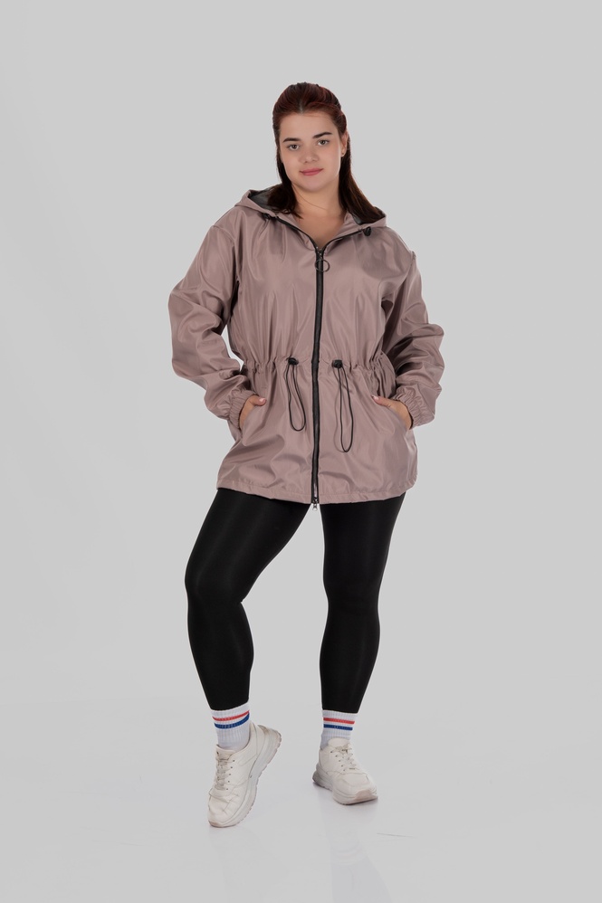 Плащівка з трикотажною основою поєднує щільність зовнішнього шару та еластичність внутрішньої структури. Матеріал не прилипає до тіла, не втрачає силует під дощем і не створює ефекту жорсткої оболонки.