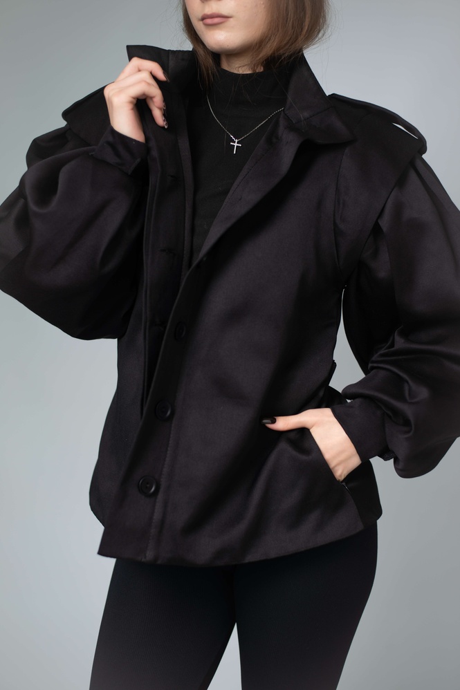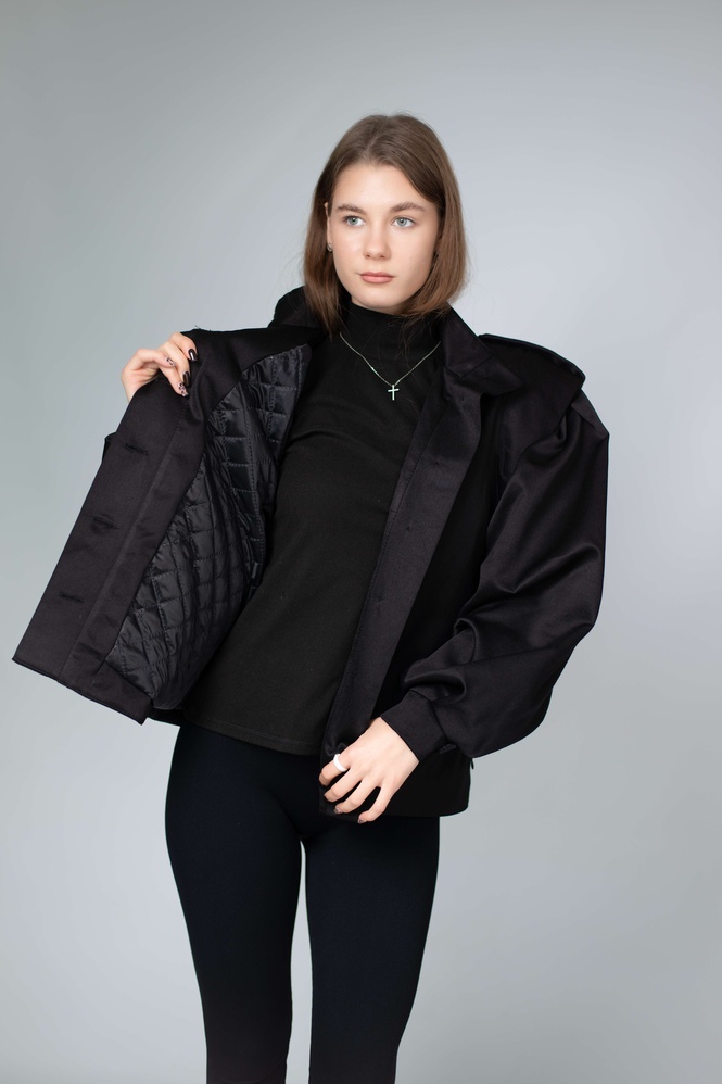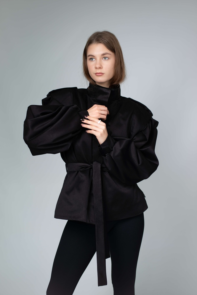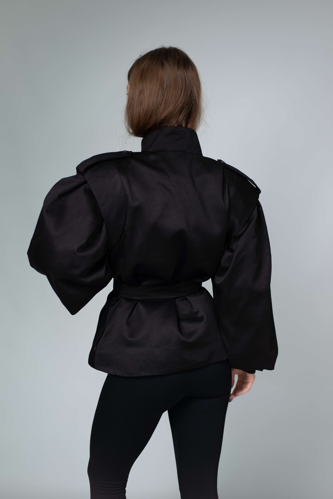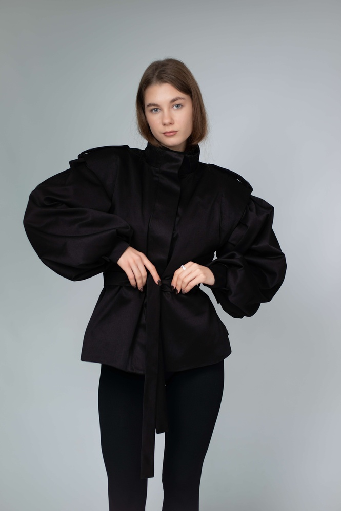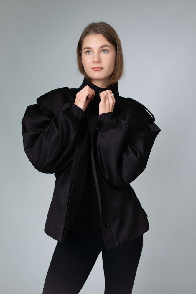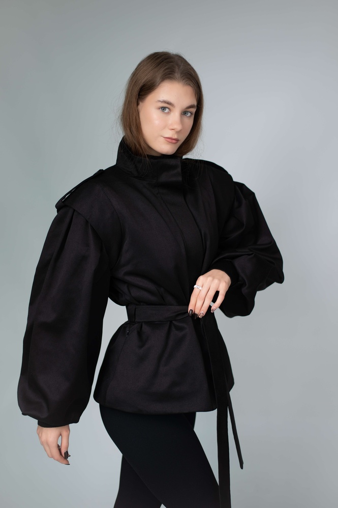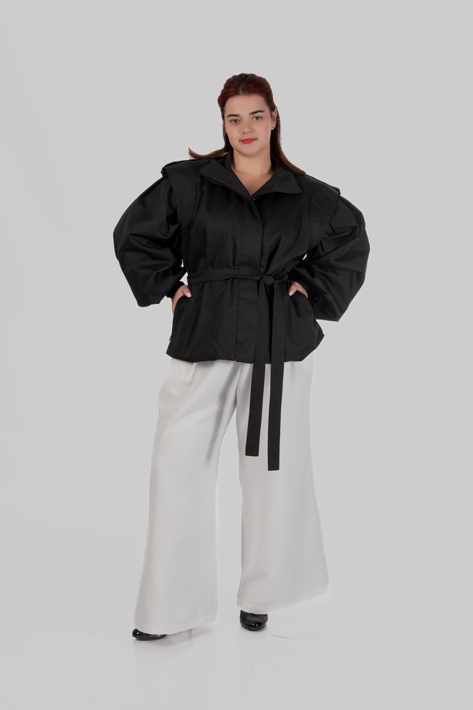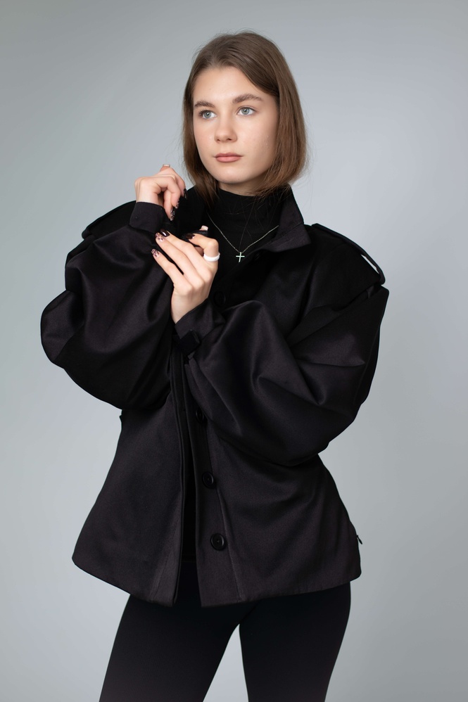 Не куртка. Не пальто. Це — тренч із характером.CityVolume — стильна альтернатива класичним моделям, яку ти точно не побачиш на кожному кроці.Силует побудований на контрасті: об’ємні рукави, акцентована баска та пояс, що підкреслює талію й формує ідеальний баланс пропорцій — незалежно від типу фігури.