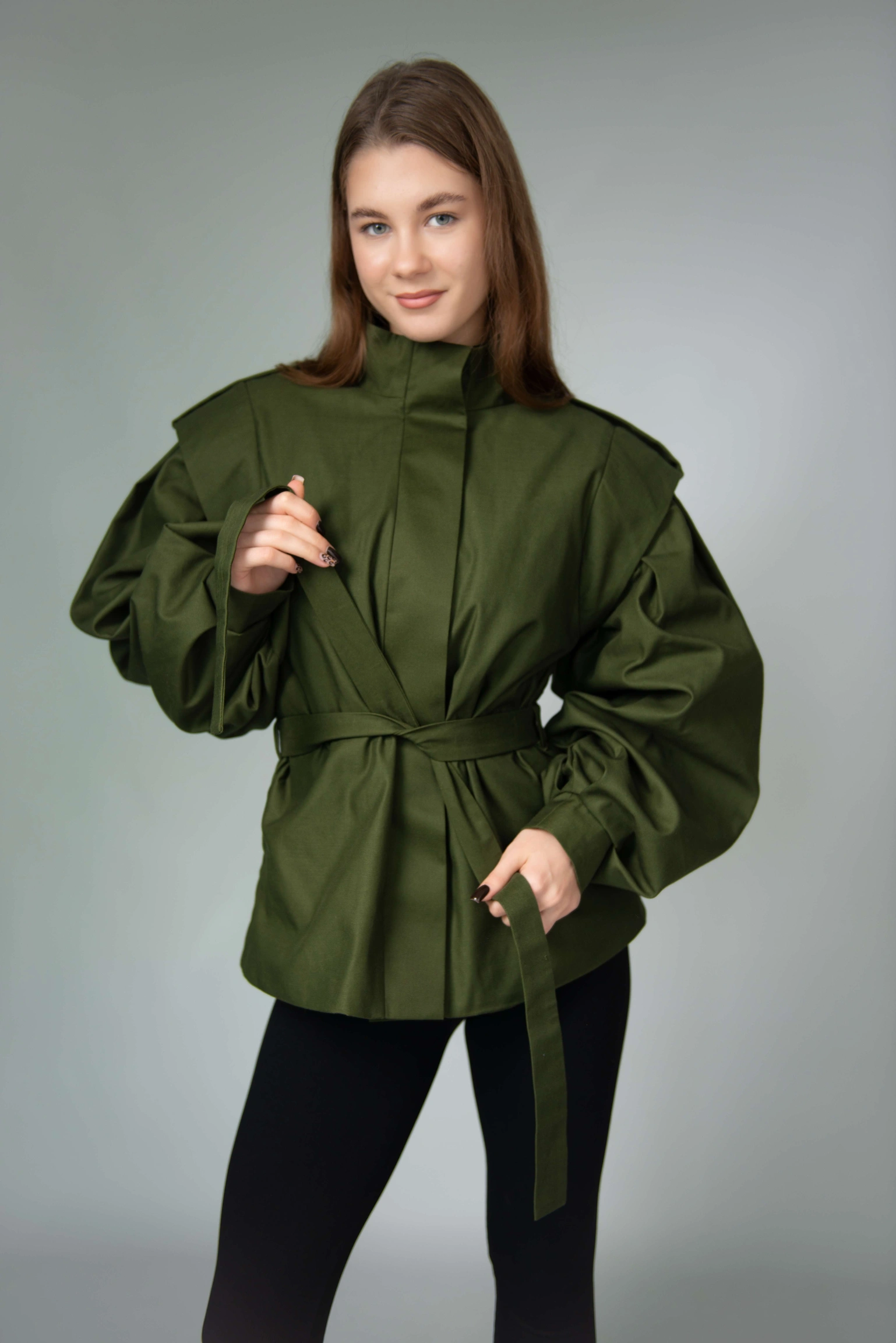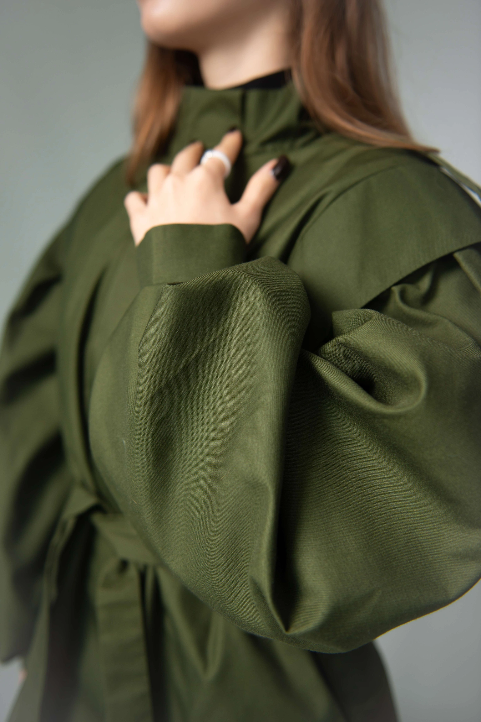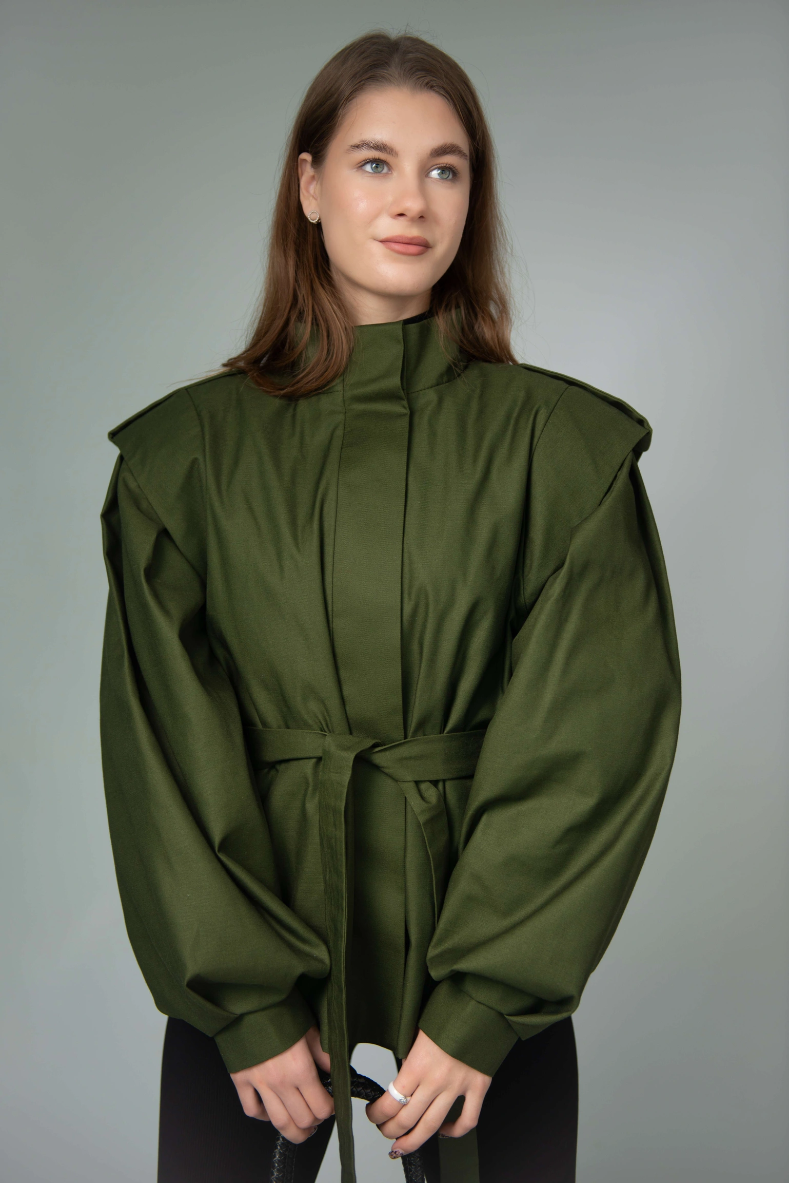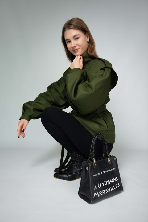 Не куртка. Не пальто. Це — тренч із характером.CityVolume — стильна альтернатива класичним моделям, яку ти точно не побачиш на кожному кроці.Силует побудований на контрасті: об’ємні рукави, акцентована баска та пояс, що підкреслює талію й формує ідеальний баланс пропорцій — незалежно від типу фігури.