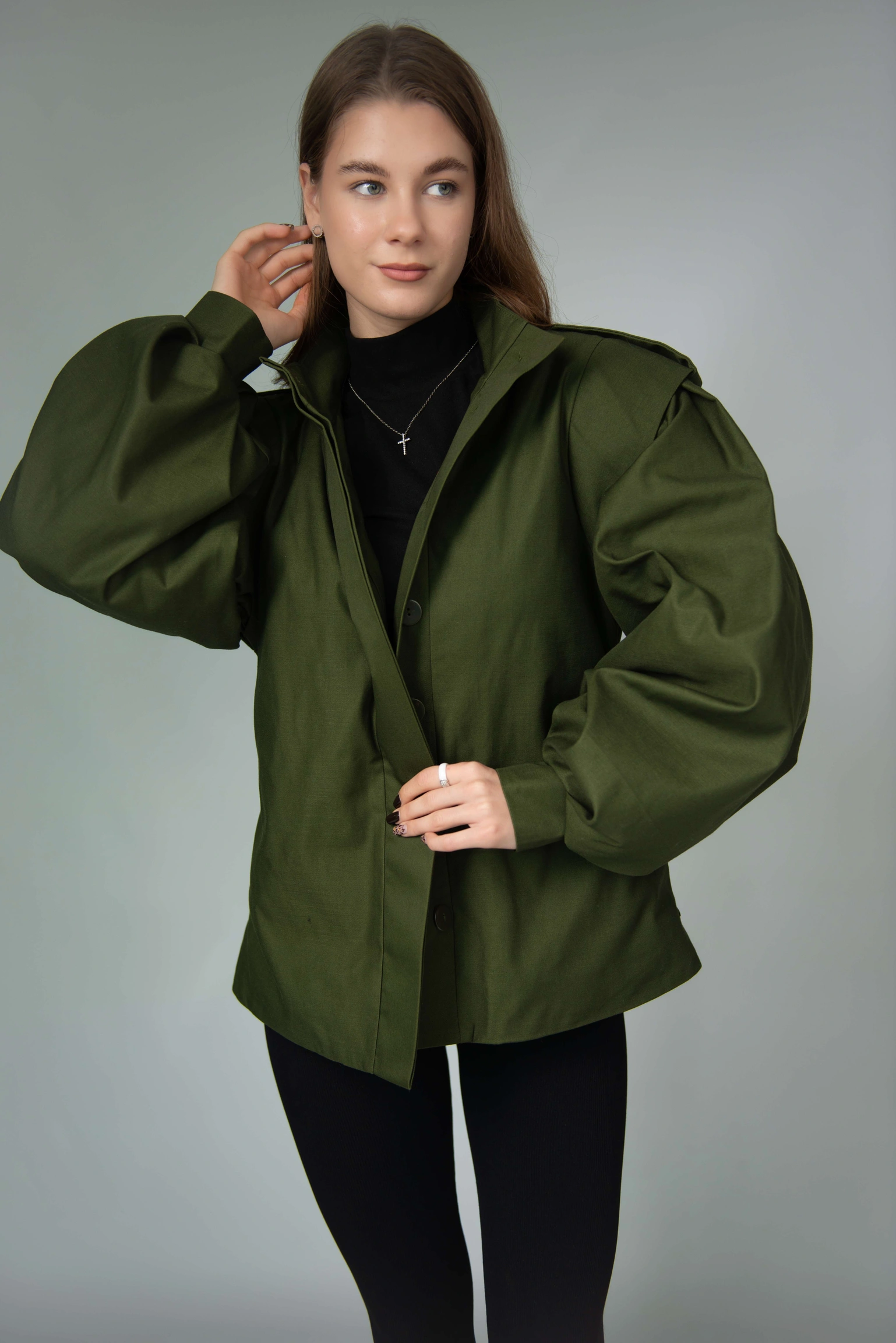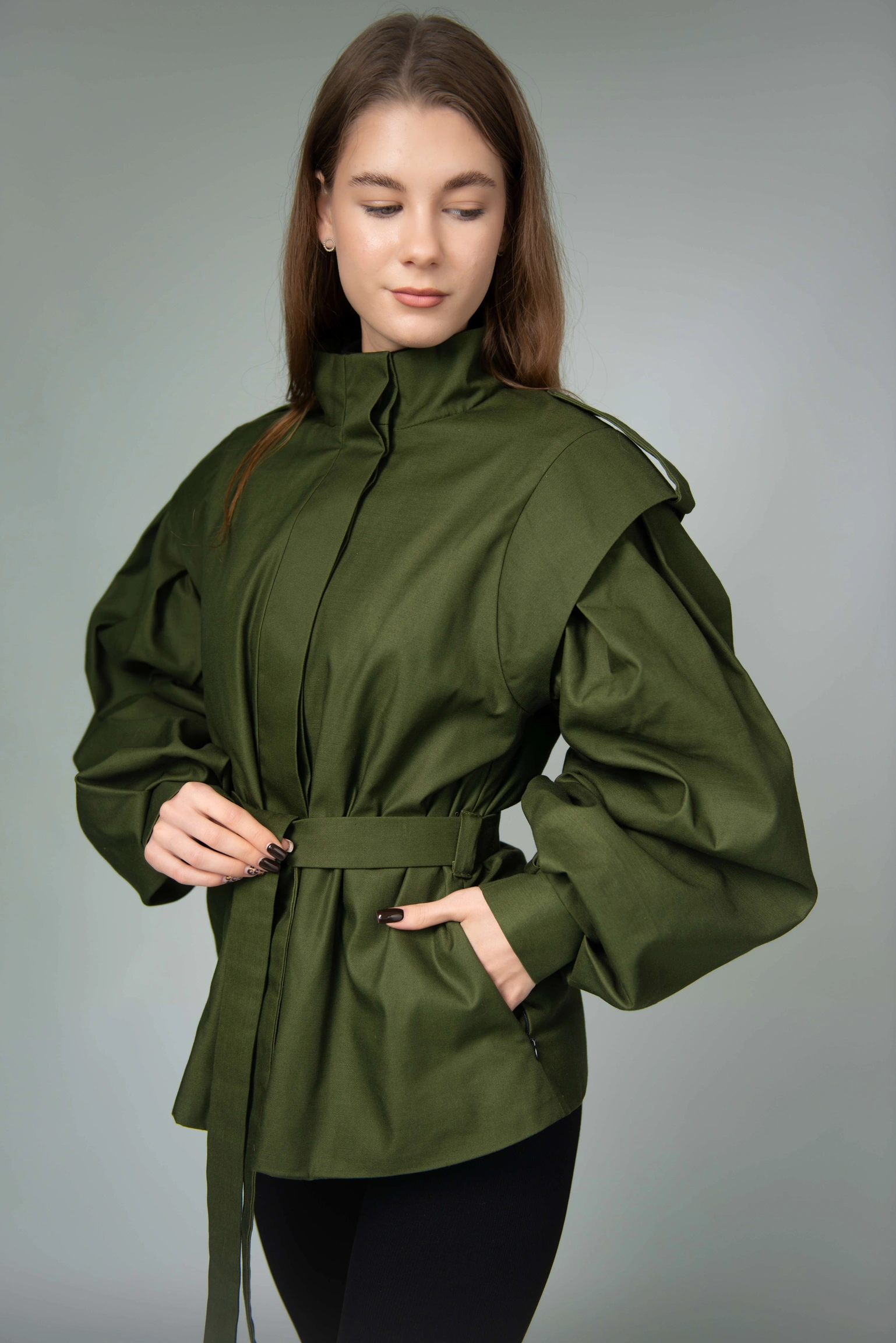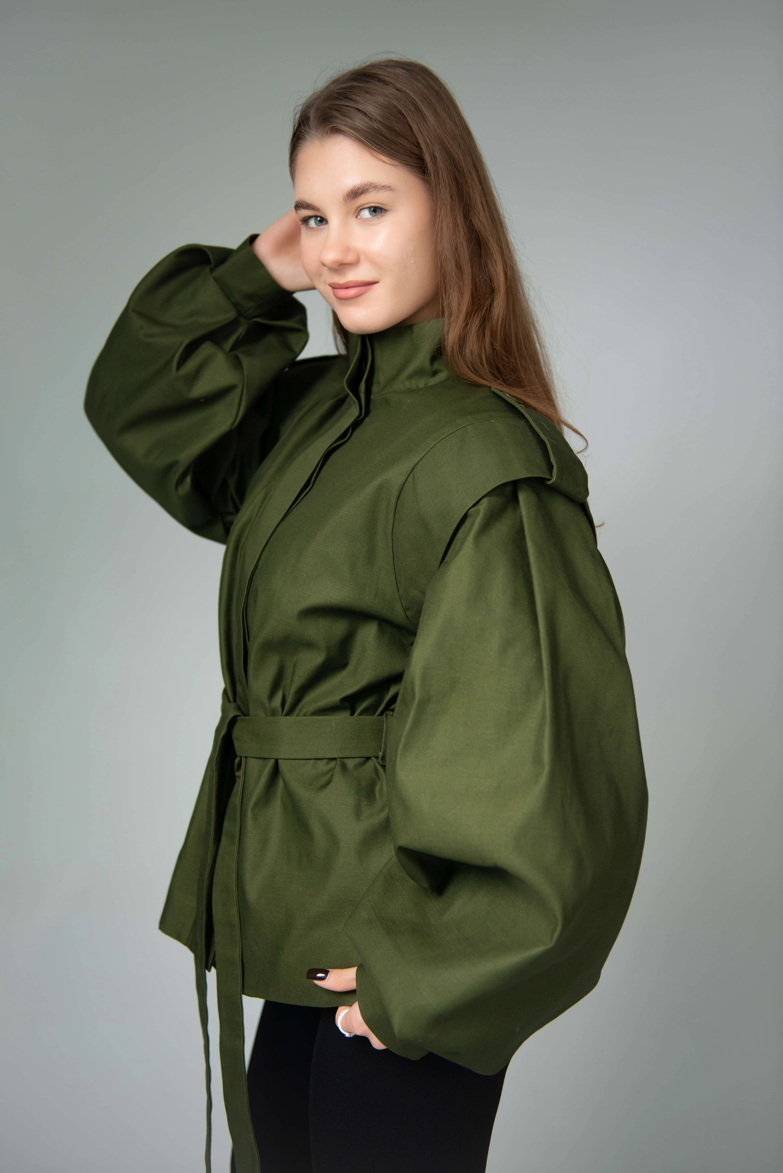 Не куртка. Не пальто. Це — тренч із характером.CityVolume — стильна альтернатива класичним моделям, яку ти точно не побачиш на кожному кроці.Силует побудований на контрасті: об’ємні рукави, акцентована баска та пояс, що підкреслює талію й формує ідеальний баланс пропорцій — незалежно від типу фігури.