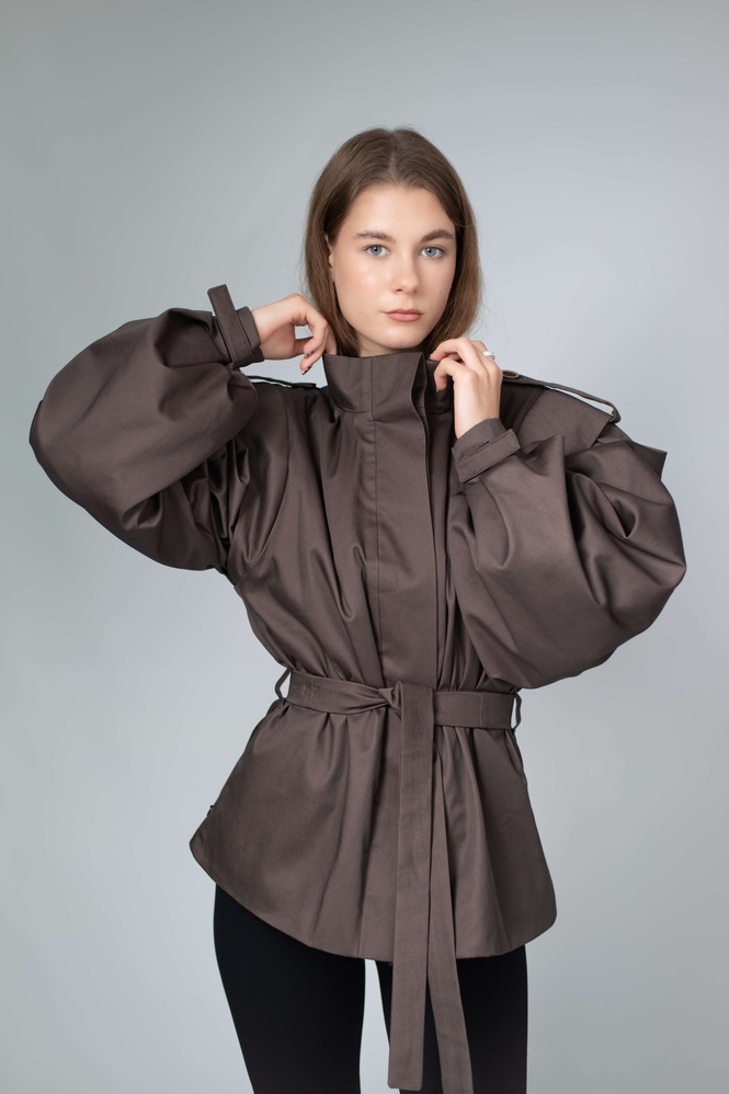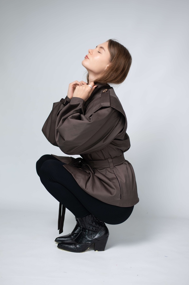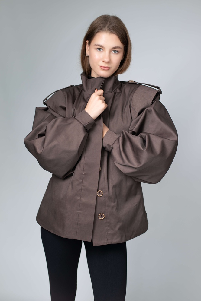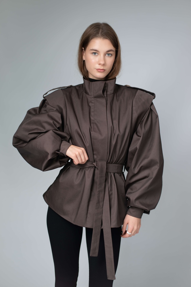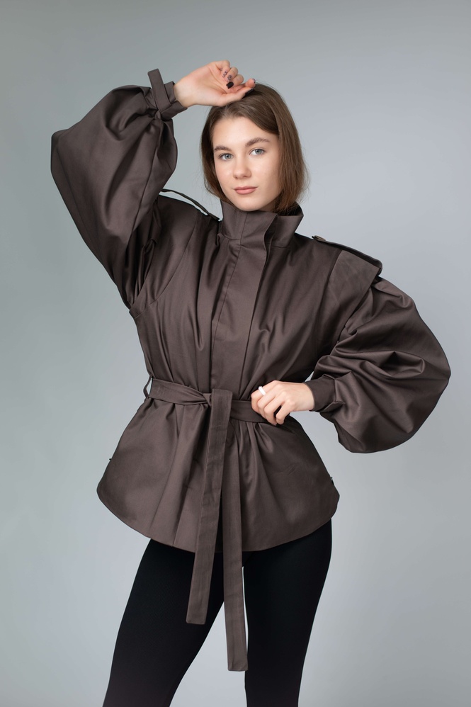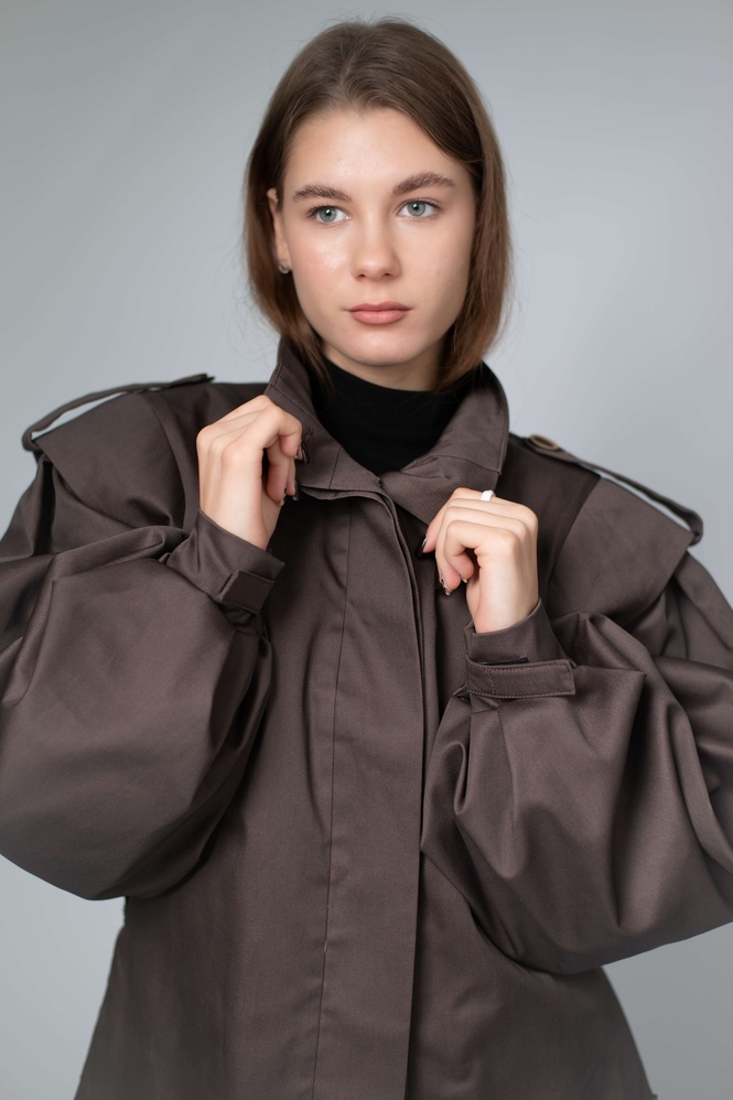 Не куртка. Не пальто. Це — тренч із характером.CityVolume — стильна альтернатива класичним моделям, яку ти точно не побачиш на кожному кроці.Силует побудований на контрасті: об’ємні рукави, акцентована баска та пояс, що підкреслює талію й формує ідеальний баланс пропорцій — незалежно від типу фігури.