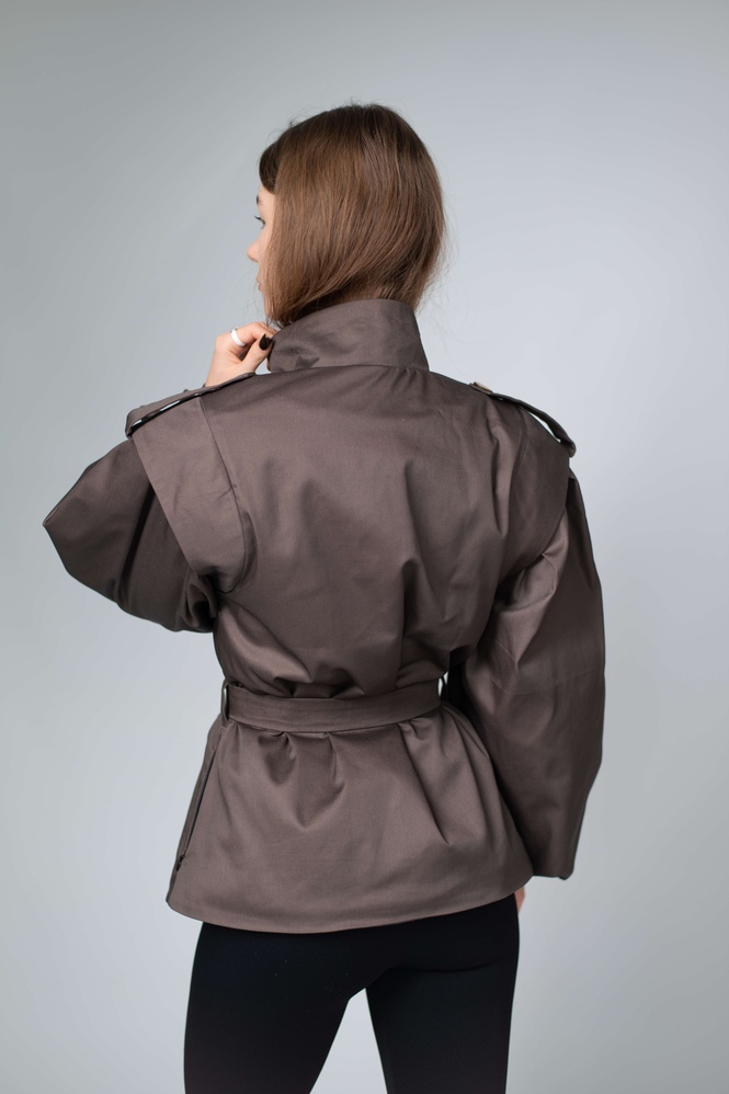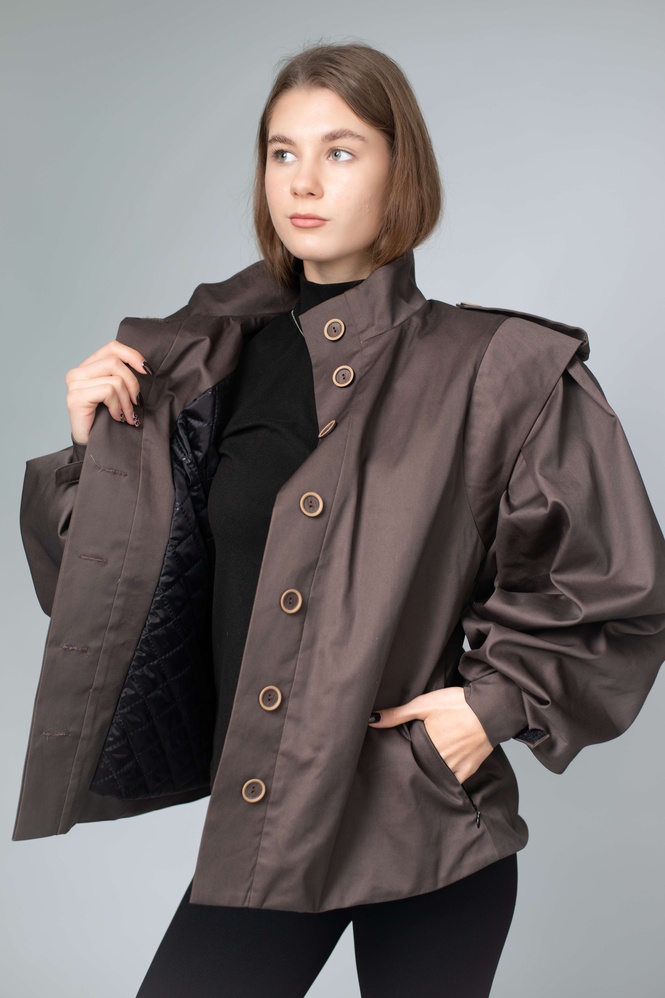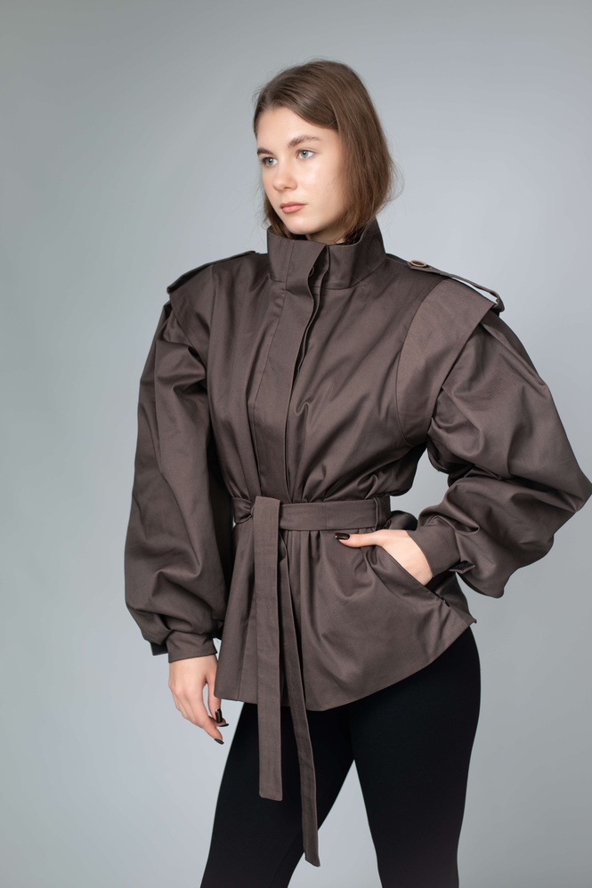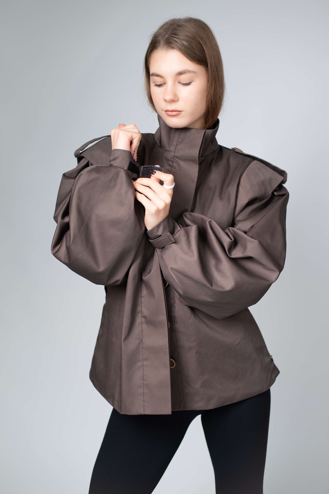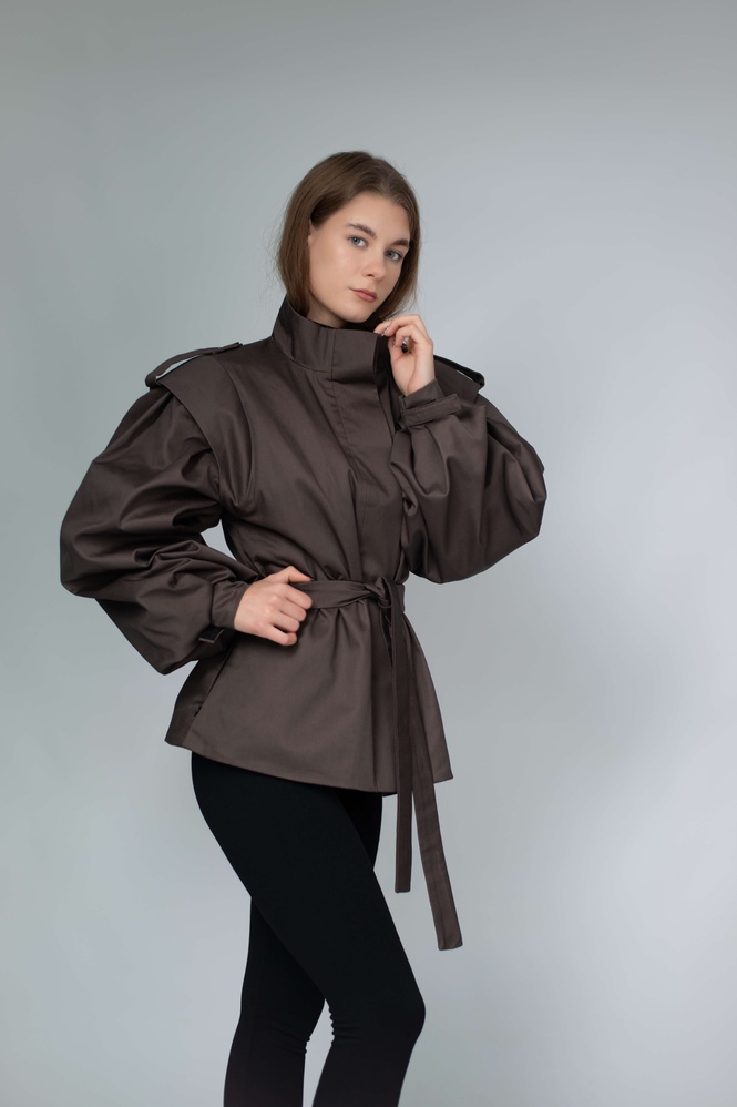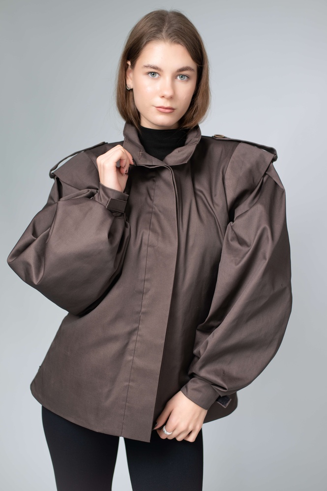 Не куртка. Не пальто. Це — тренч із характером.CityVolume — стильна альтернатива класичним моделям, яку ти точно не побачиш на кожному кроці.Силует побудований на контрасті: об’ємні рукави, акцентована баска та пояс, що підкреслює талію й формує ідеальний баланс пропорцій — незалежно від типу фігури.