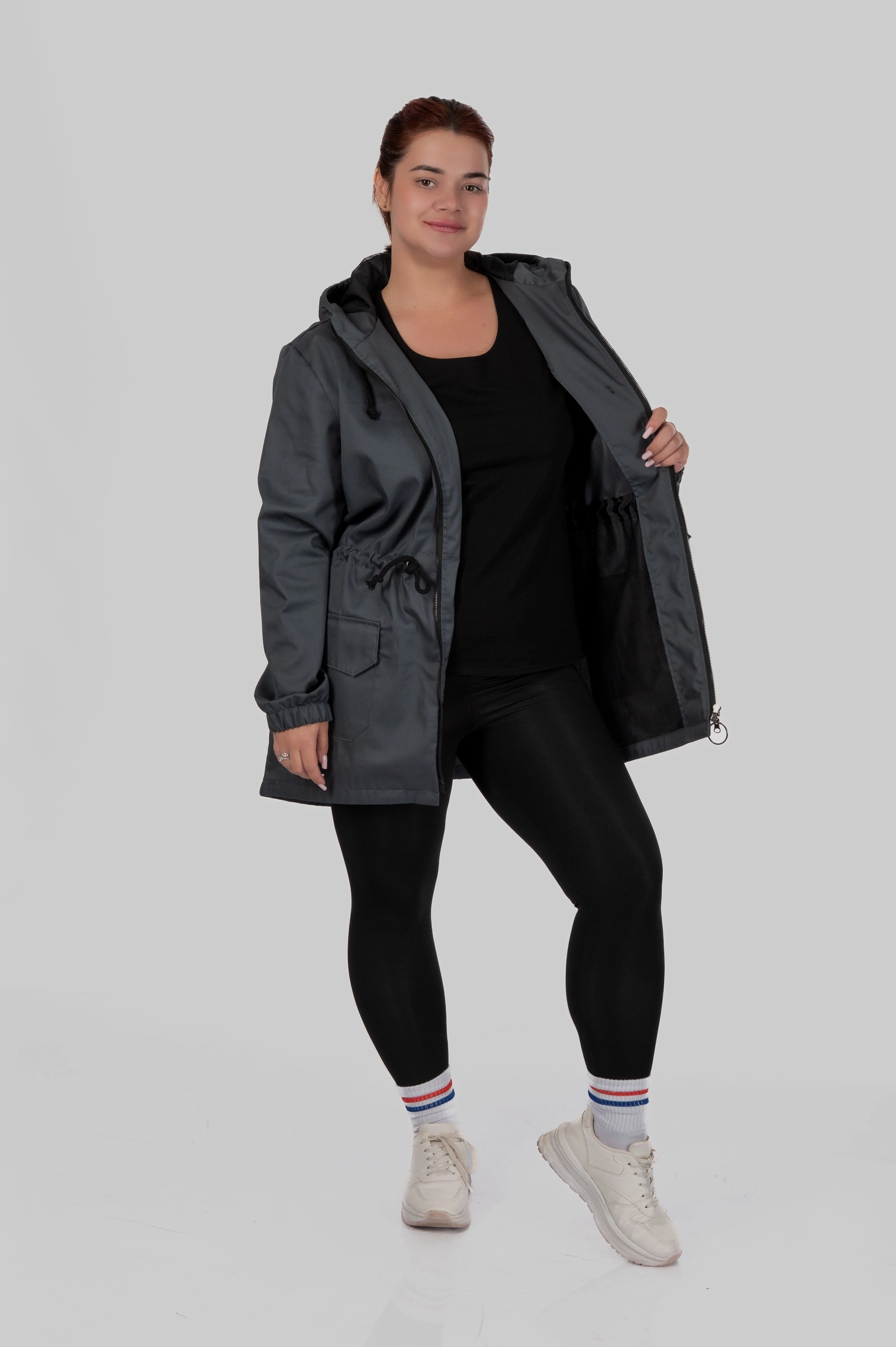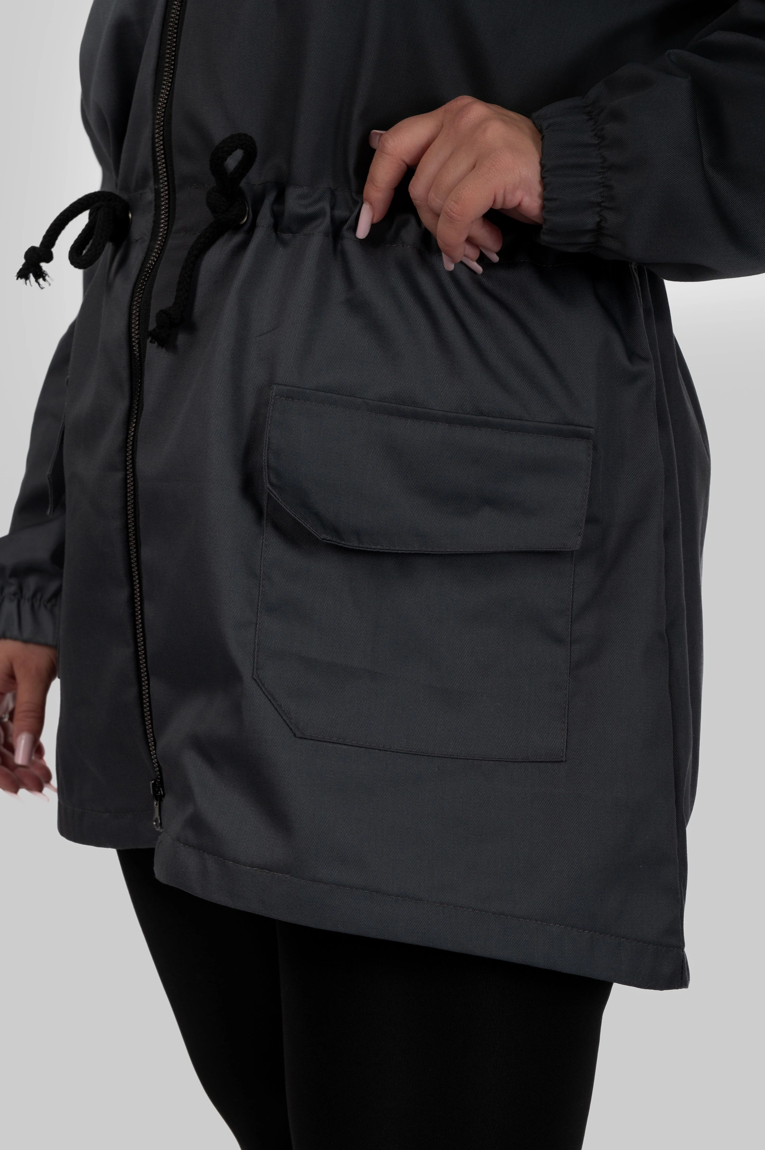 Щоб вітровка сіла ідеально, зверніть увагу на параметри та бажану посадку. Завдяки утяжці на талії модель можна адаптувати під різні типи фігури.