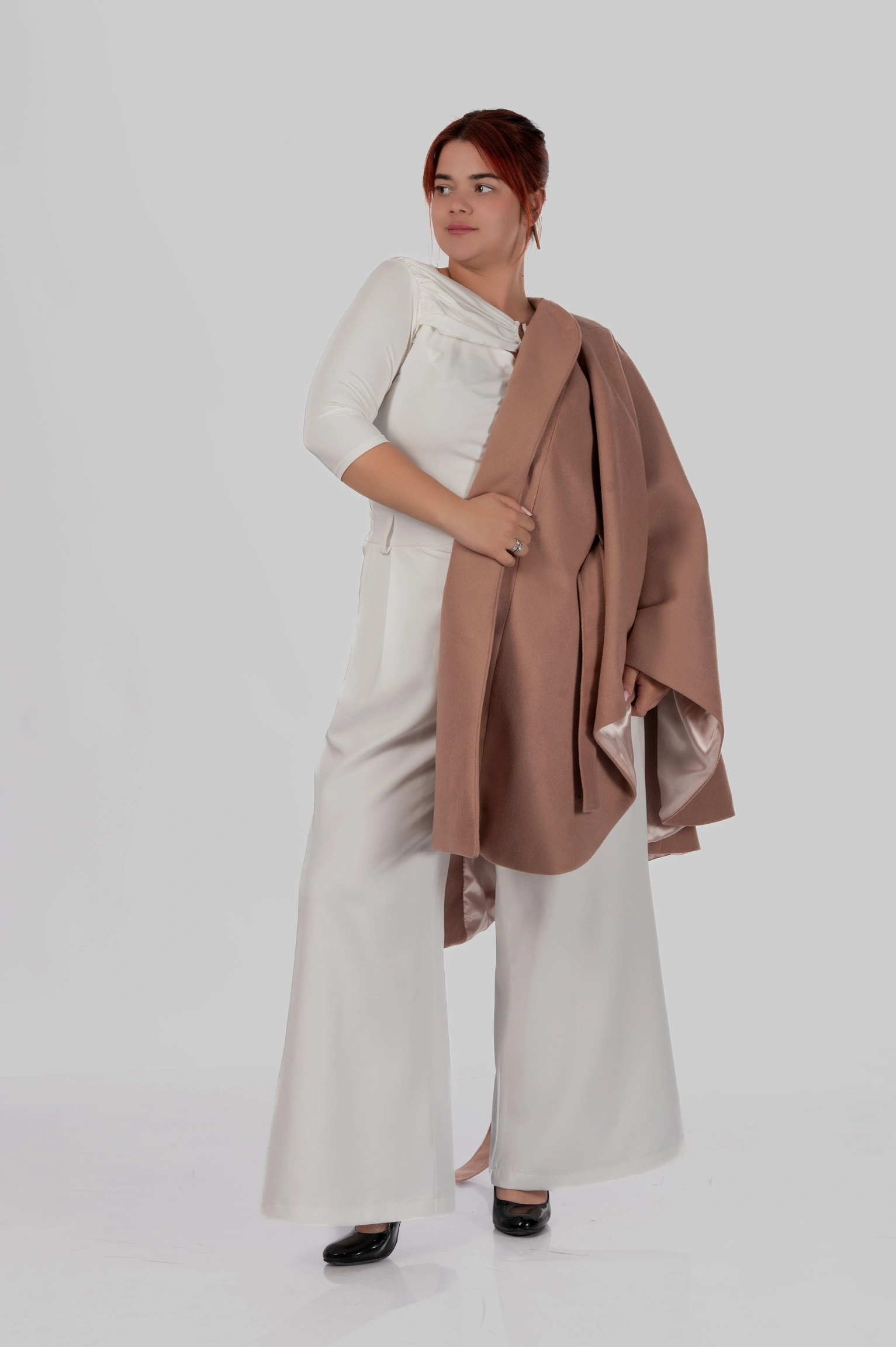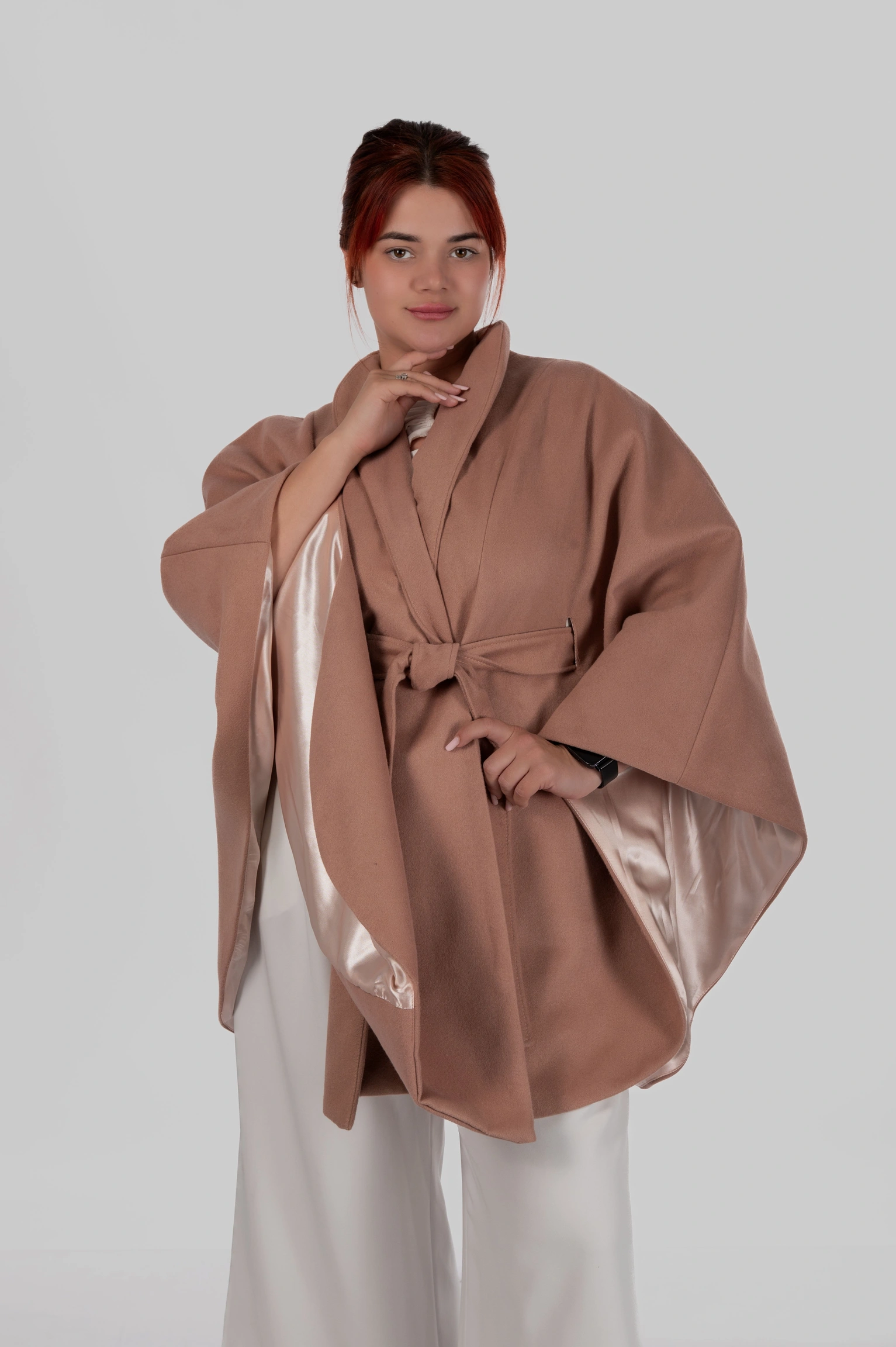 Кейп Diana — це про силу образу без зайвих зусиль. Річ, яка одразу збирає фігуру, додає статусу і виглядає дорого з першого погляду.