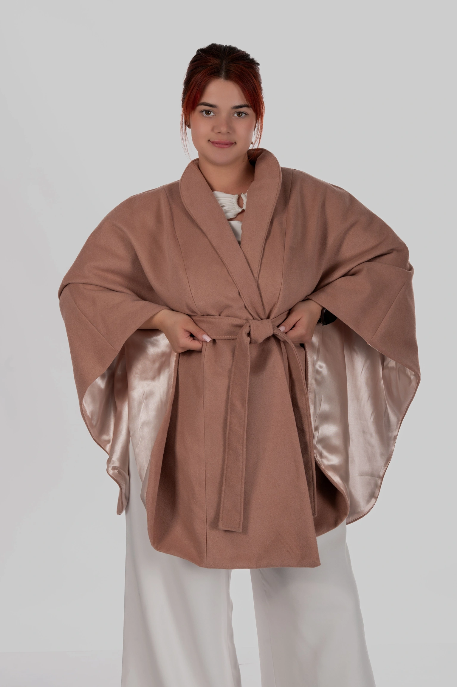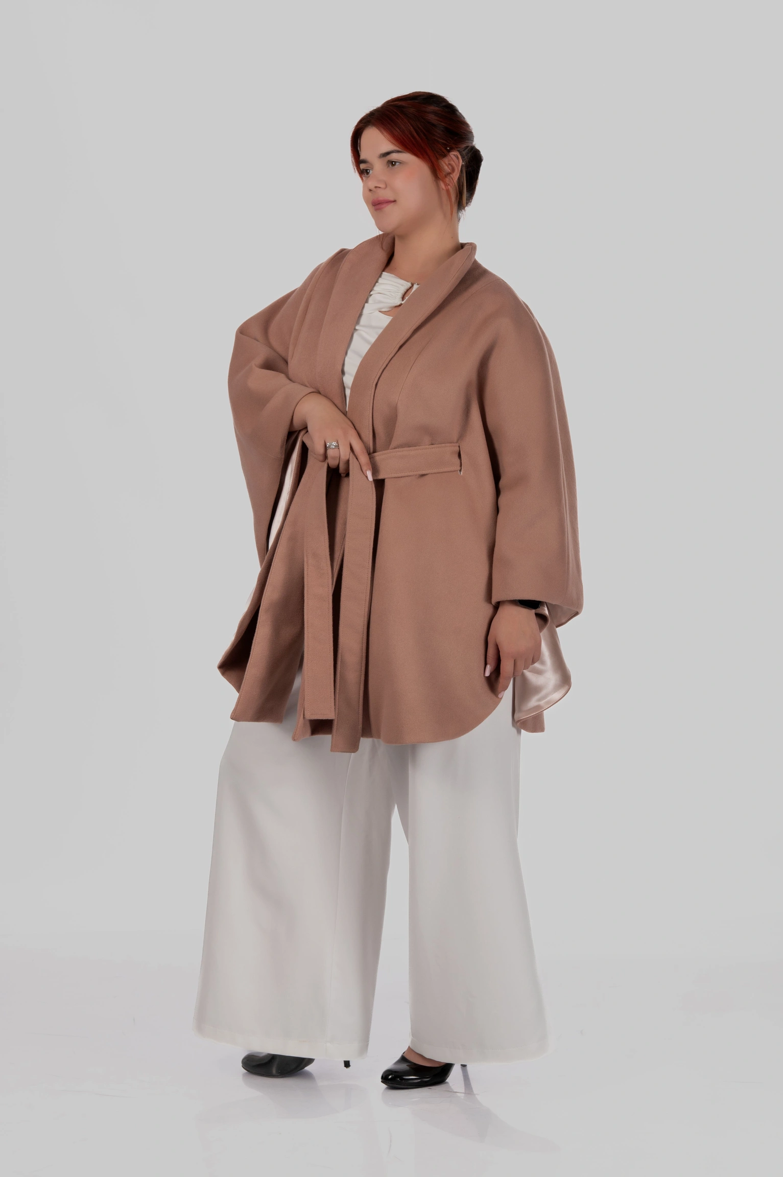 Жіночий кейп з поясом вовна кашемір плюс сайз Diana