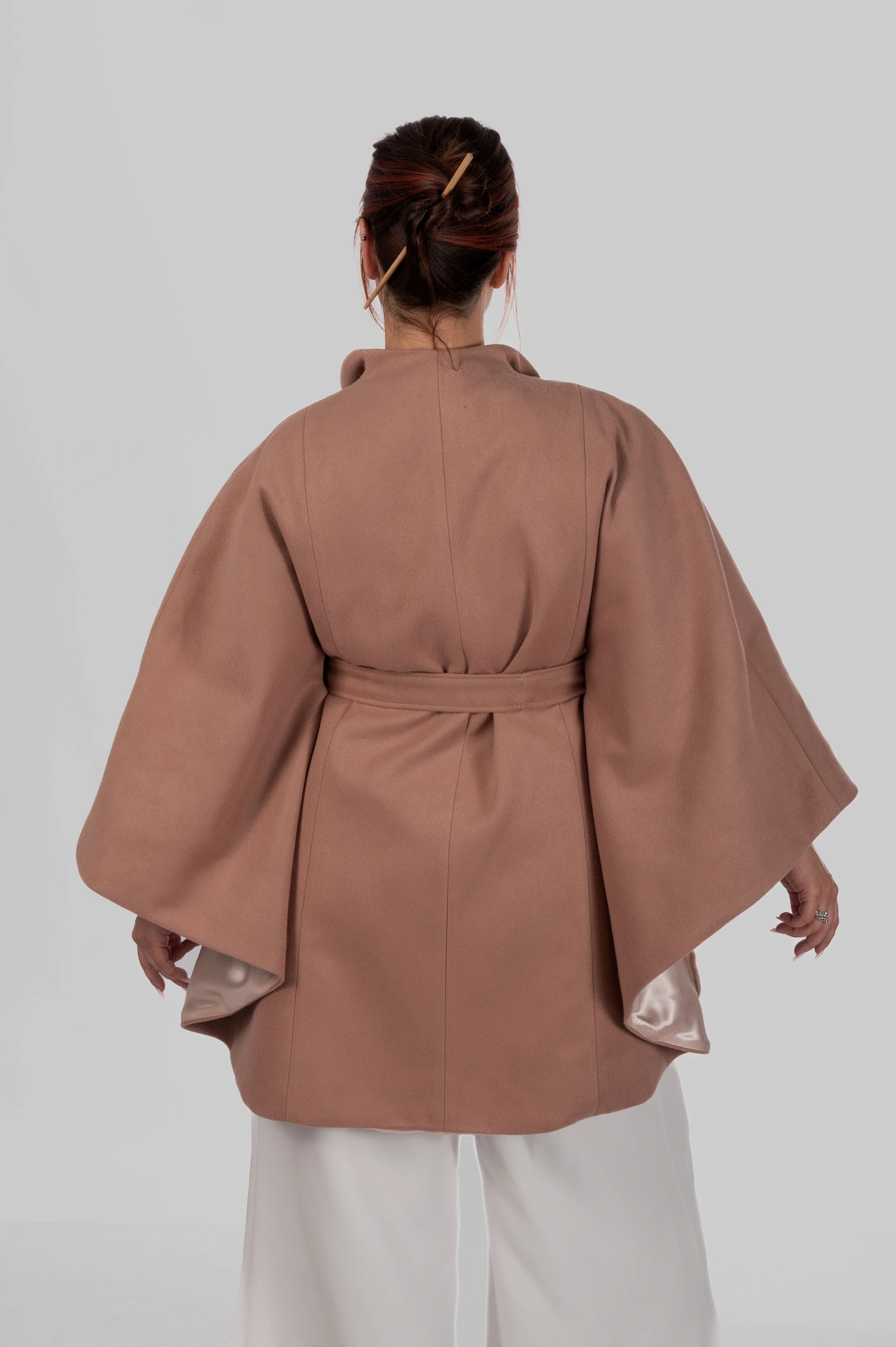Широкі рукави додають характеру. Це не базове пальто — це акцентна річ, яка формує образ повністю.