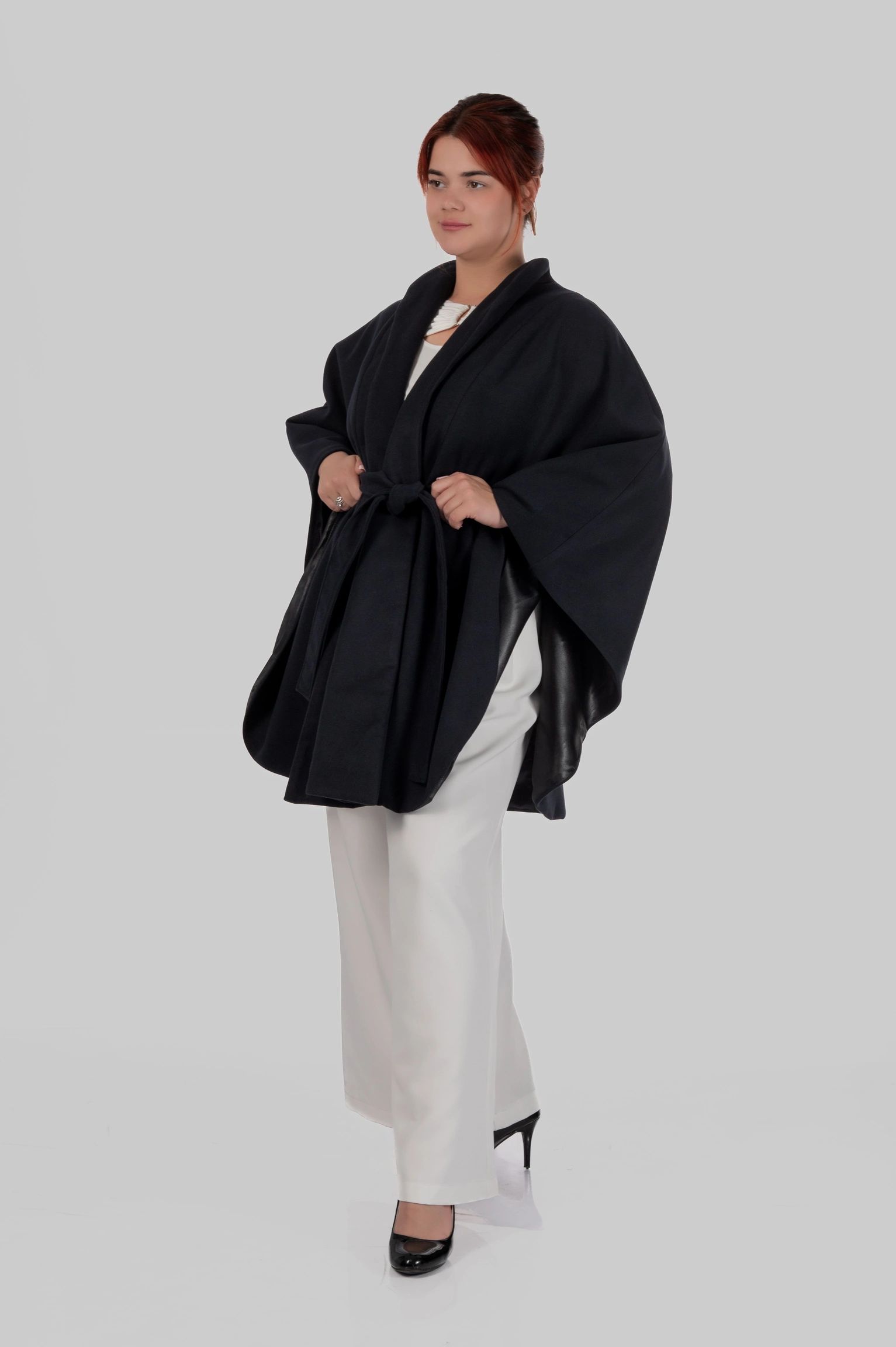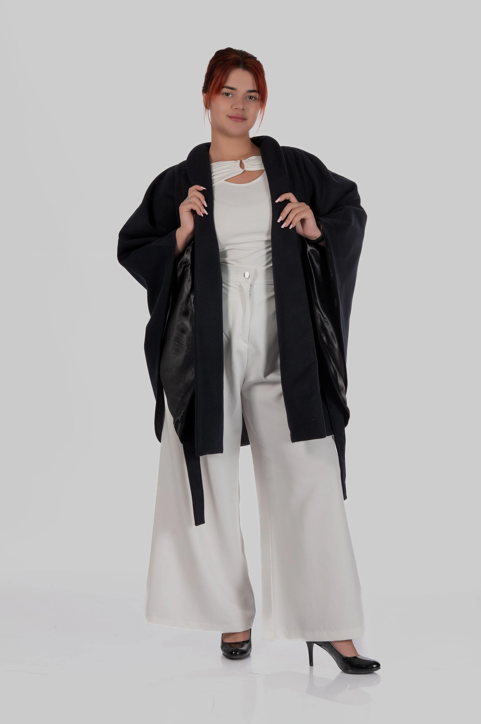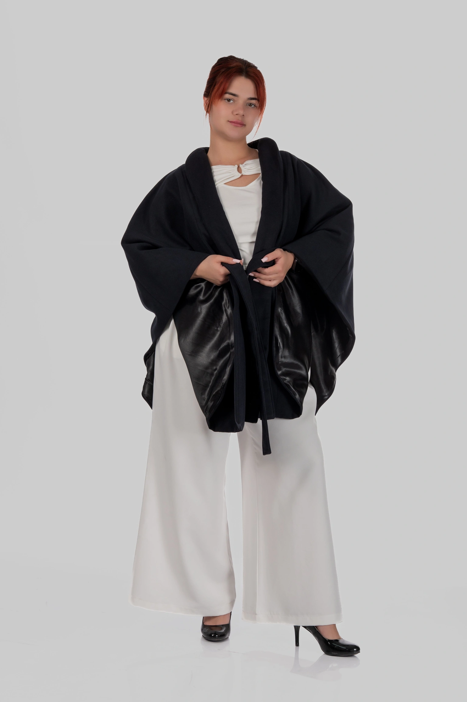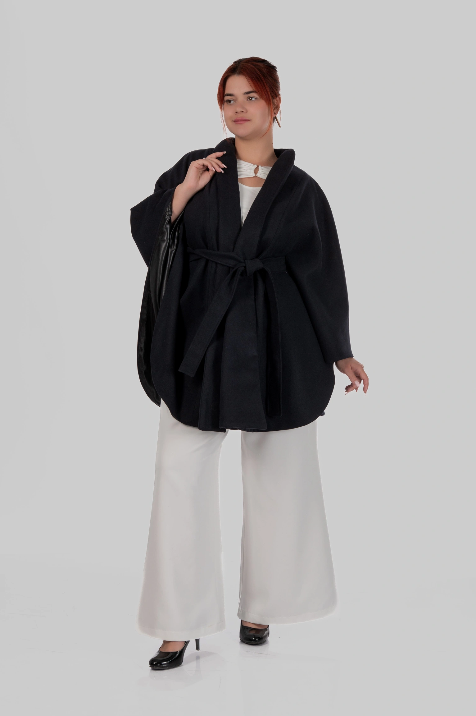 Кейп Diana — це про силу образу без зайвих зусиль. Річ, яка одразу збирає фігуру, додає статусу і виглядає дорого з першого погляду.