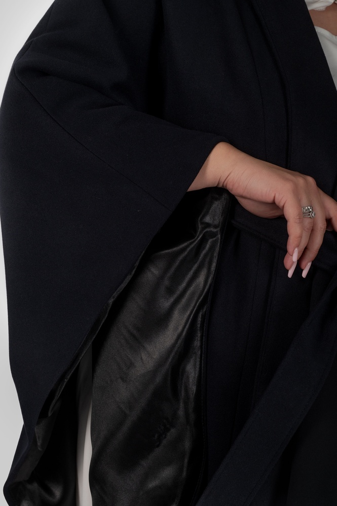 Широкі рукави додають характеру. Це не базове пальто — це акцентна річ, яка формує образ повністю.