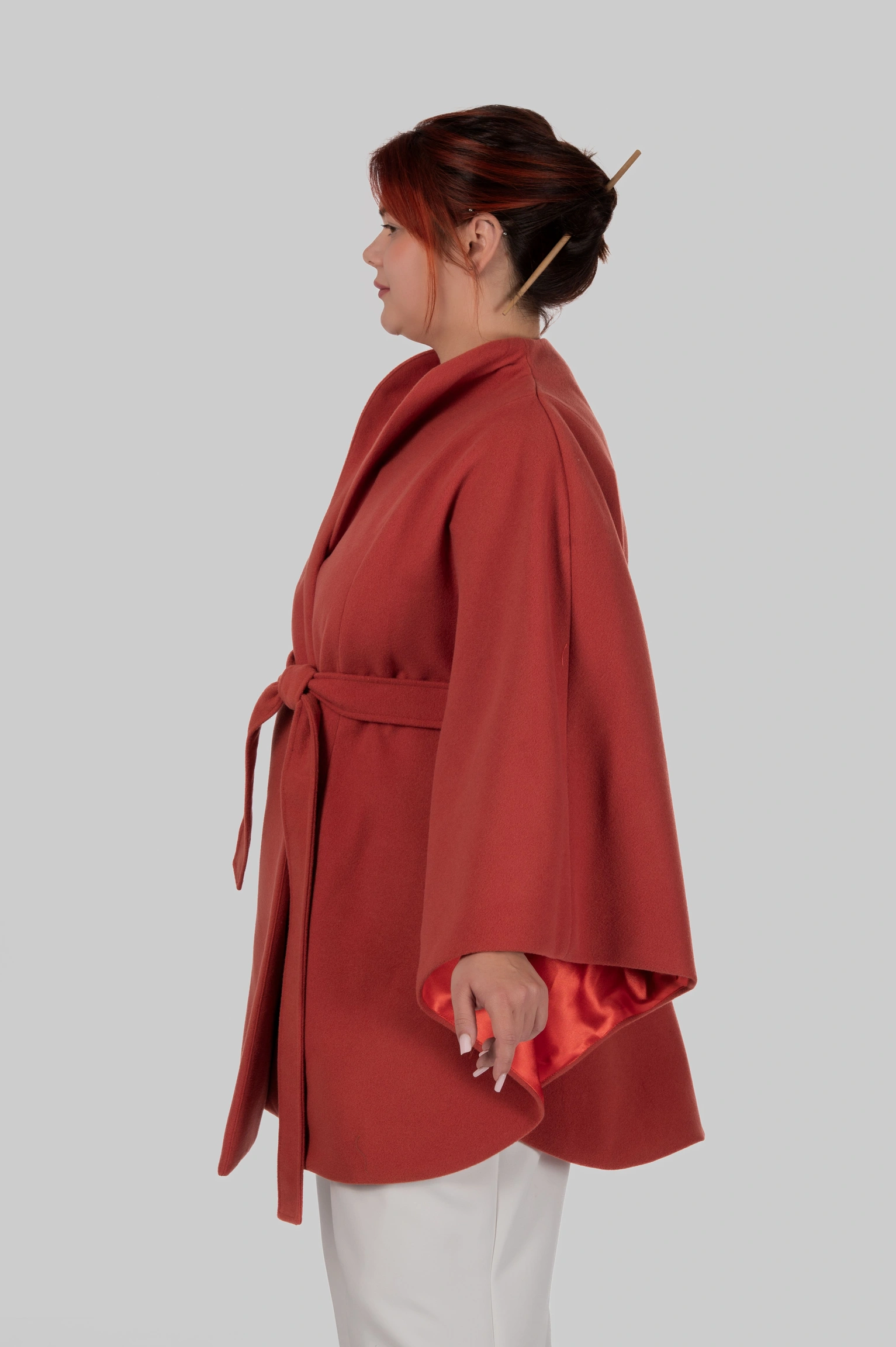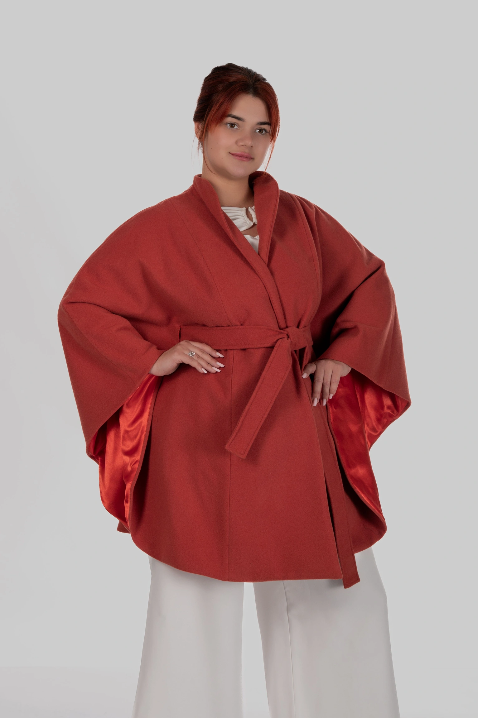 Жіночий кейп з поясом вовна кашемір плюс сайз Diana